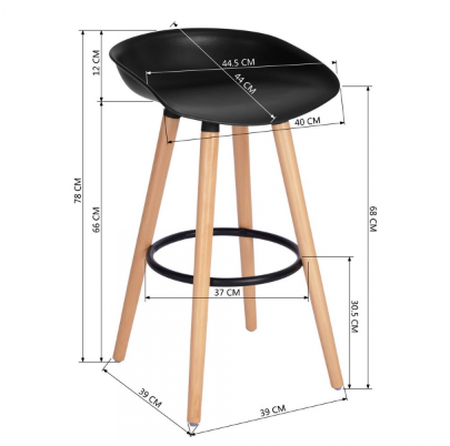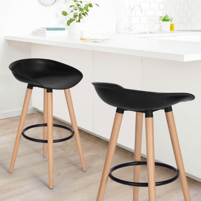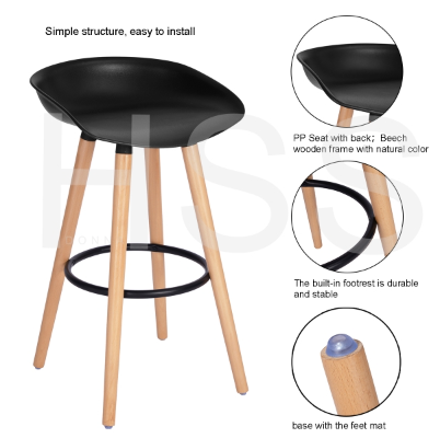 Barstool,PP Seat, Beech Wood Legs With Black Coating Footrest, 2PCS/CTN