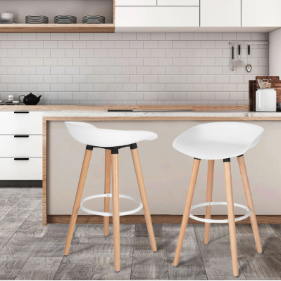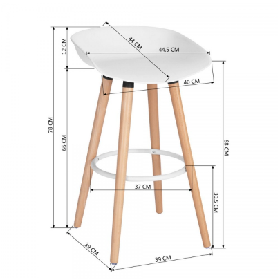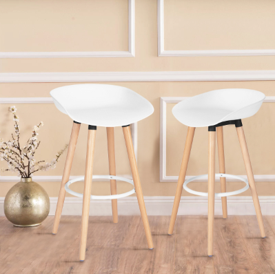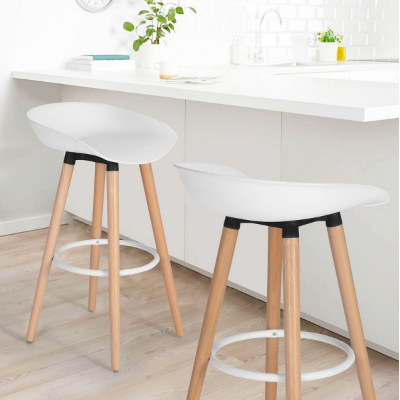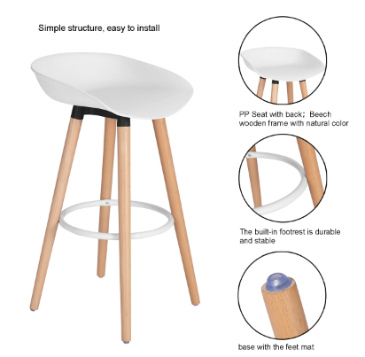 Barstool, PP Seat, Beech Wood Legs With White Coating Footrest, 2PCS/CTN