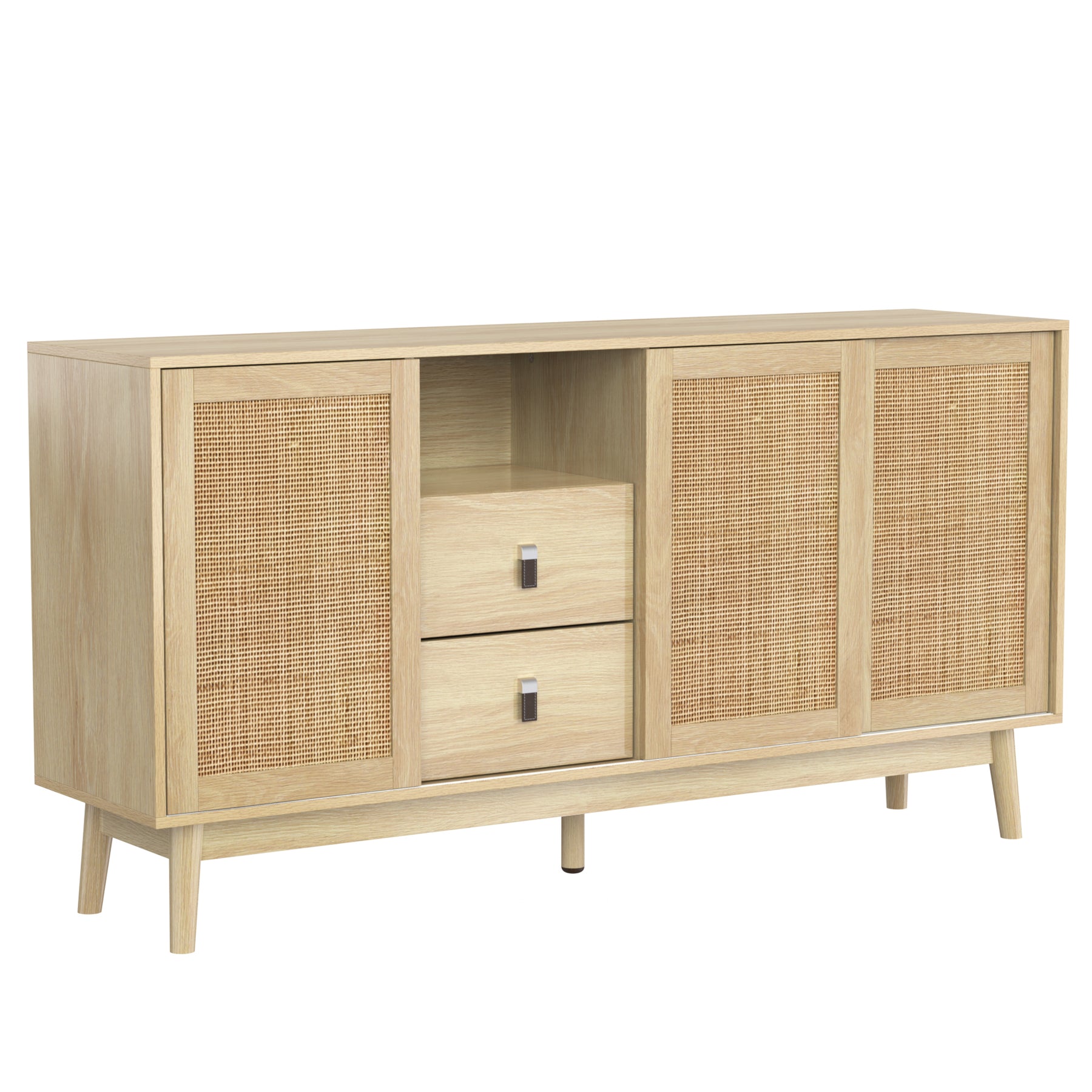 Buffet Contemporain en Bois avec Rotin Véritable, Tiroirs et Portes Coulissantes USOH WOOD