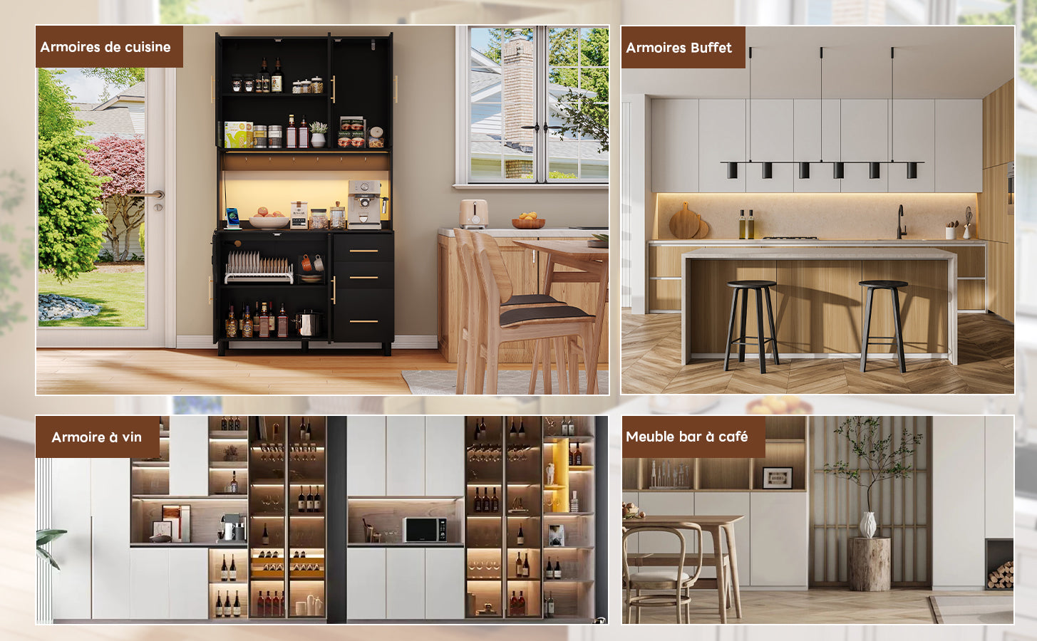 • Fonctionnalité Multifonctionnelle : Au-delà de son rôle de buffet de cuisine, ce meuble peut être utilisé comme buffet de salle à manger, bibliothèque de bureau ou bar à café dans le salon, aidant à désencombrer et organiser divers espaces de votre maison.