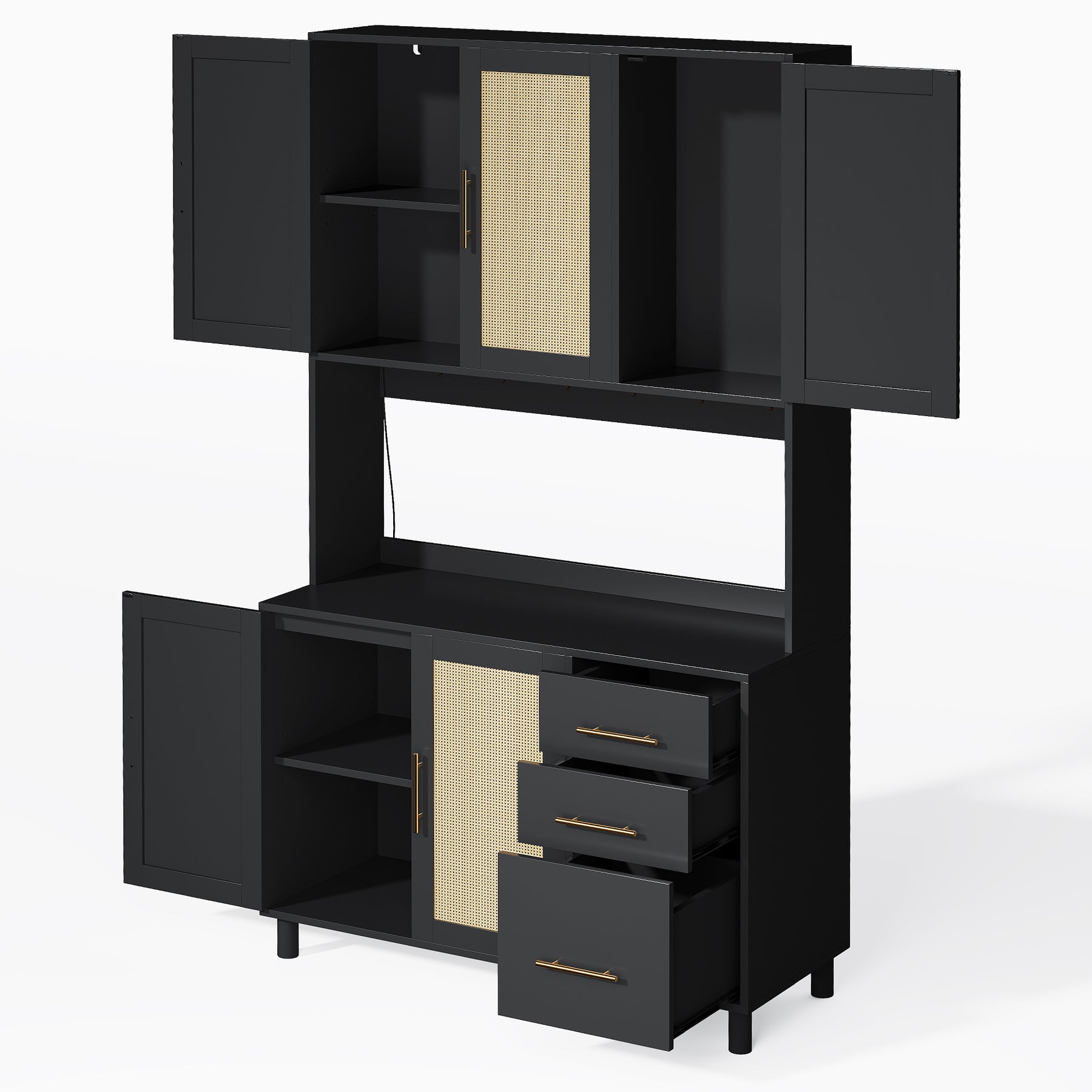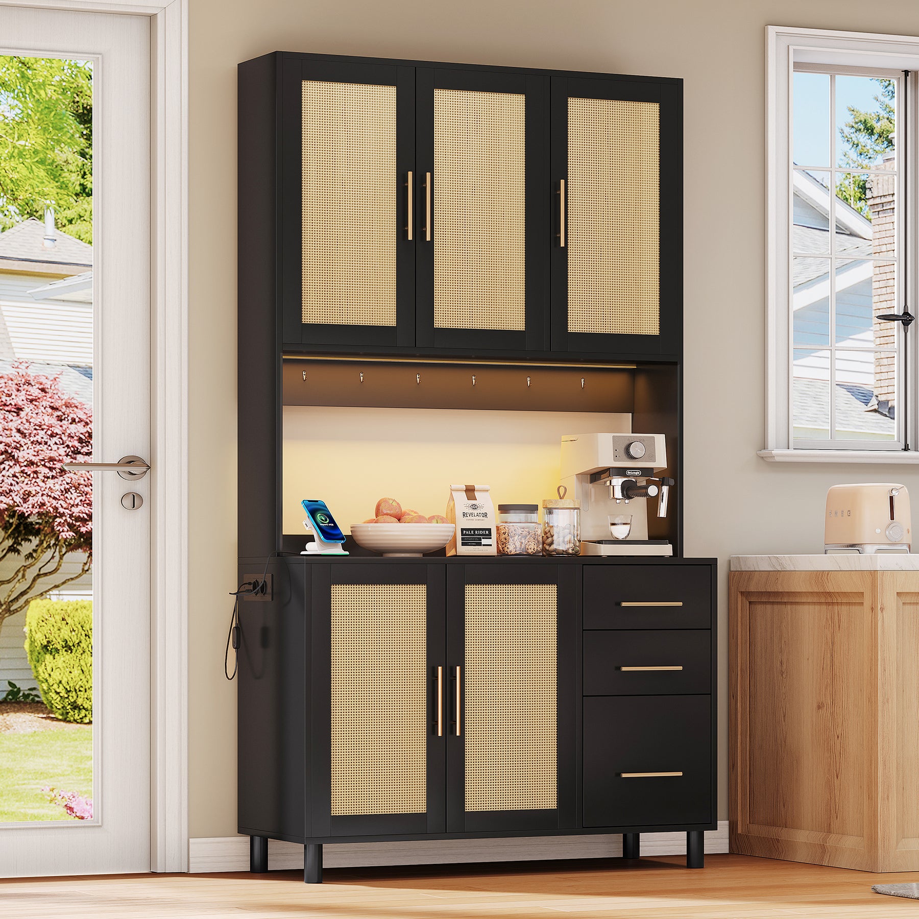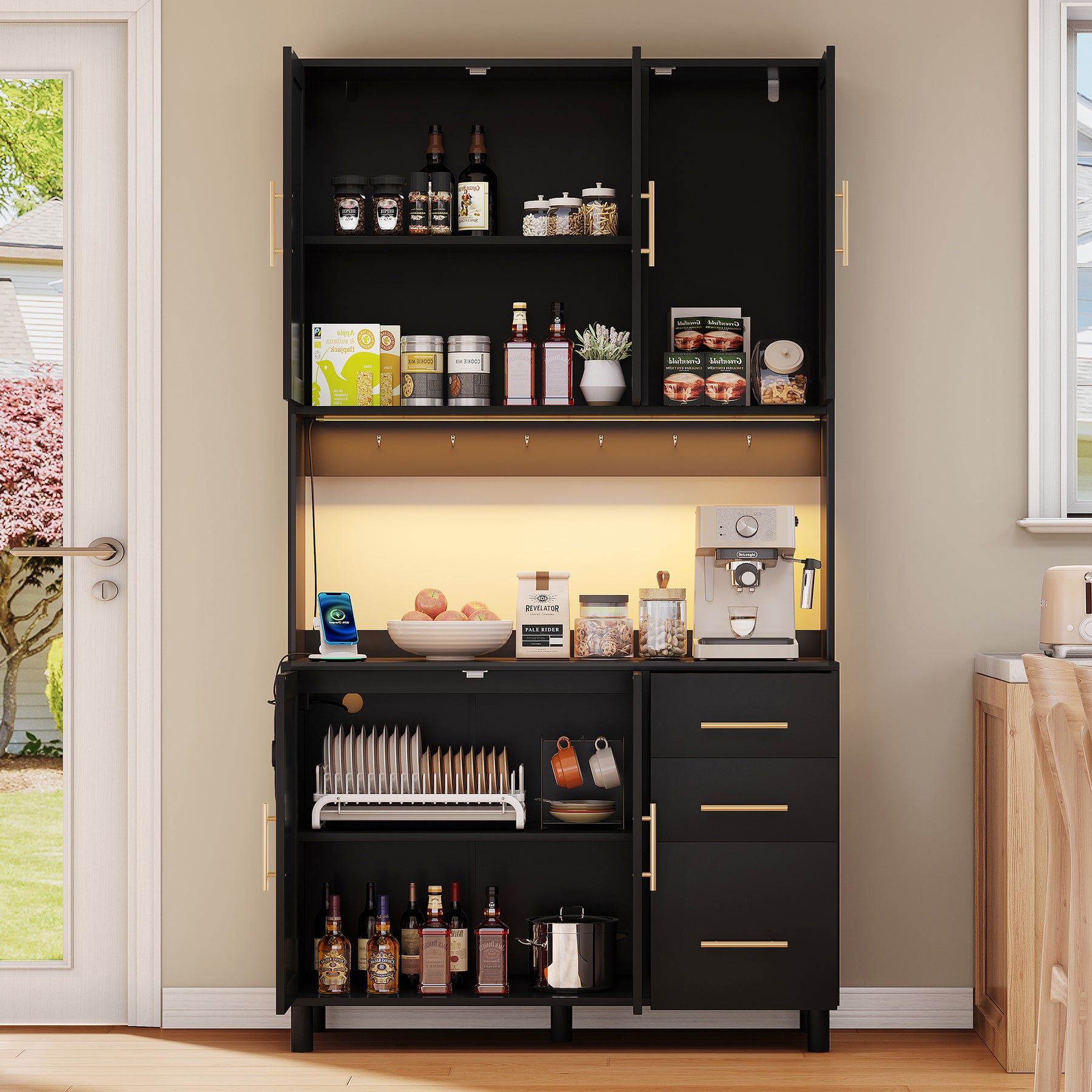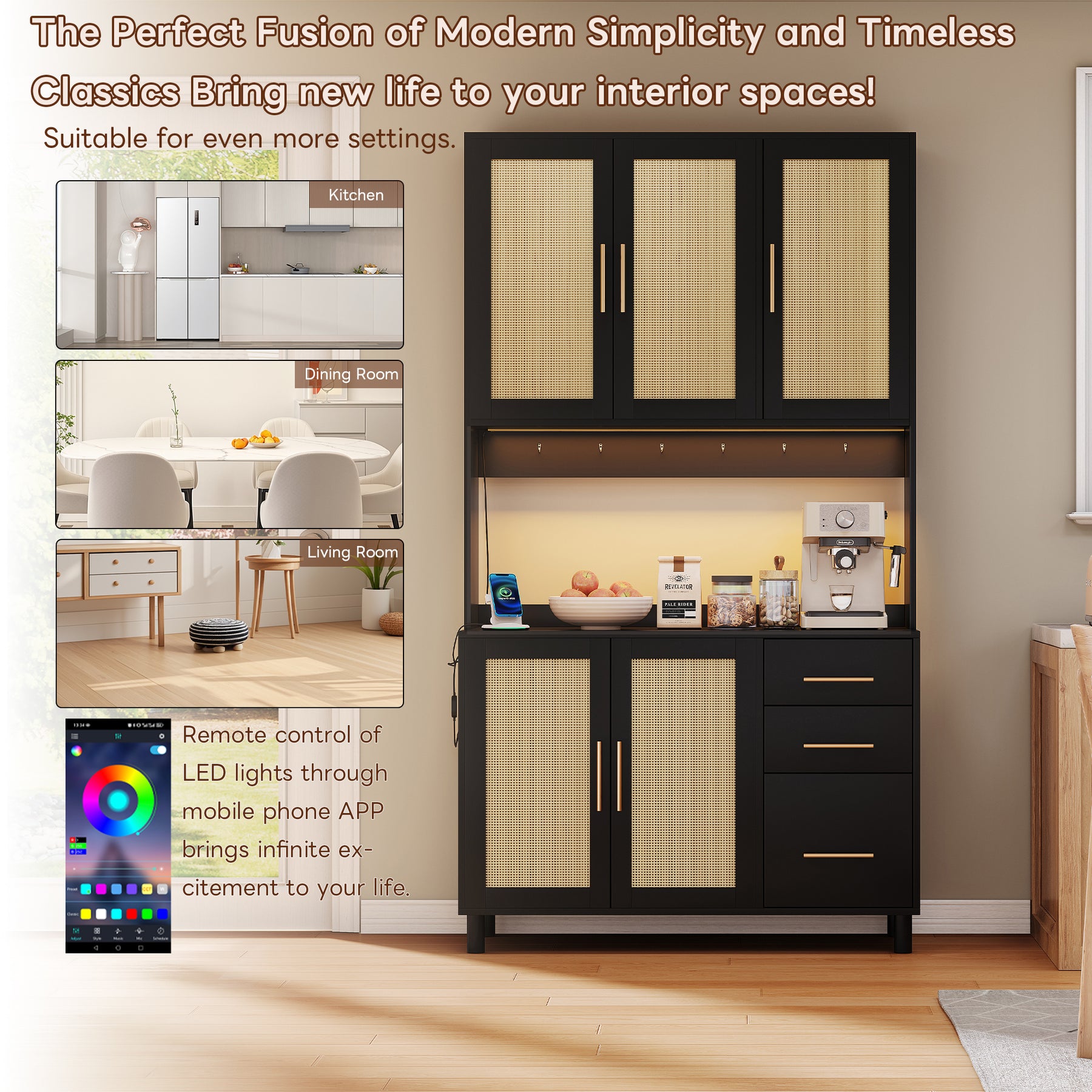 Buffet de Cuisine 183cm Noir avec Éclairage LED Contrôlé par App, Prises USB/Secteur, Tiroirs et Rangement Ajustable BRUQEIDS BLACK