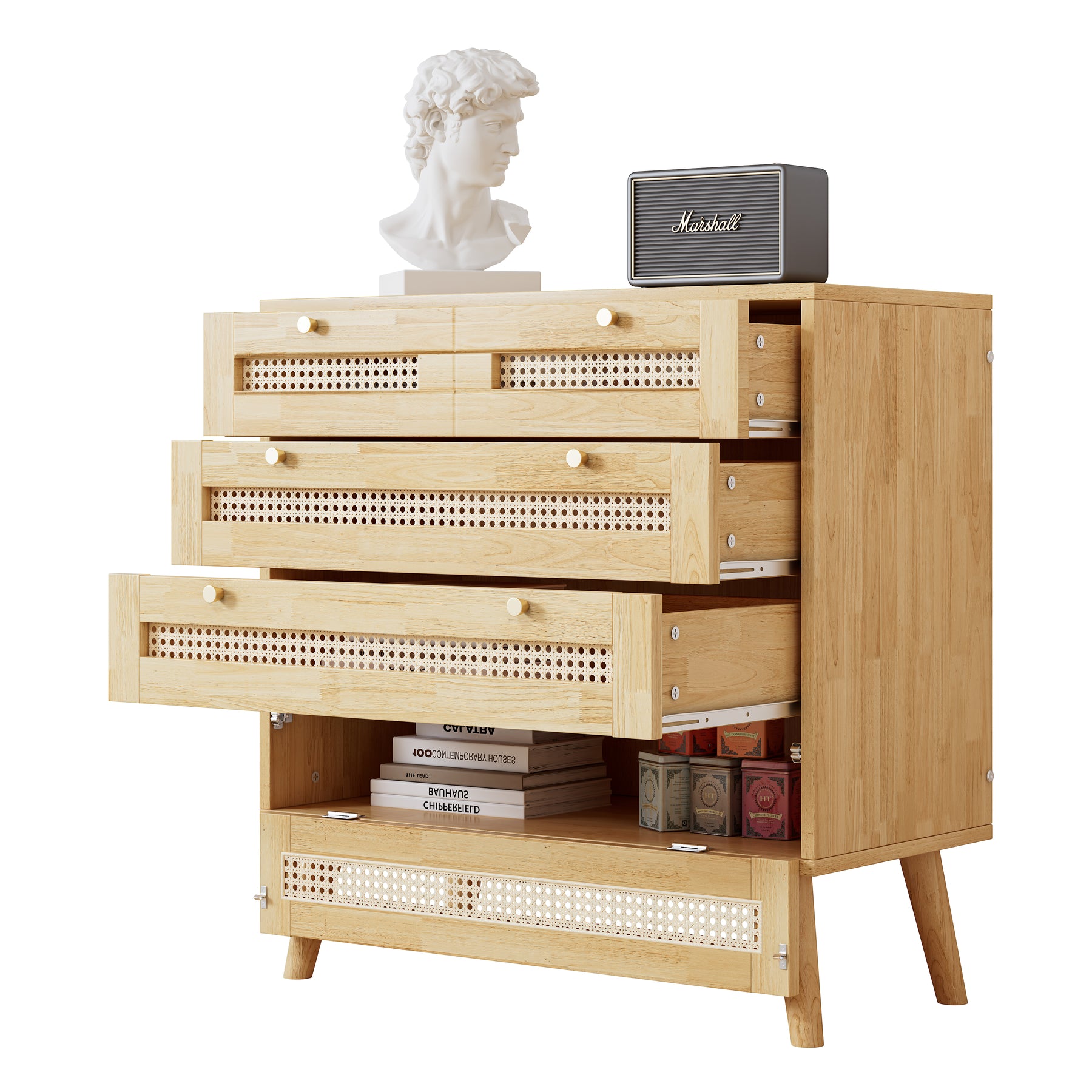 Matériaux de Haute Qualité et Durables : Fabriquée à partir de panneaux de particules robustes et de rotin PE, cette commode allie durabilité à un aspect naturel attrayant qui s'intègre harmonieusement dans divers styles d'intérieur.
