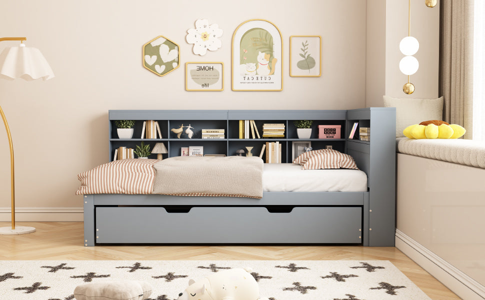 Nombreux Espaces de Rangement : Ce lit canapé en bois massif dispose de plusieurs compartiments de rangement intégrés, offrant un espace généreux pour organiser vos affaires, des livres aux jouets, et maintenir votre pièce ordonnée.