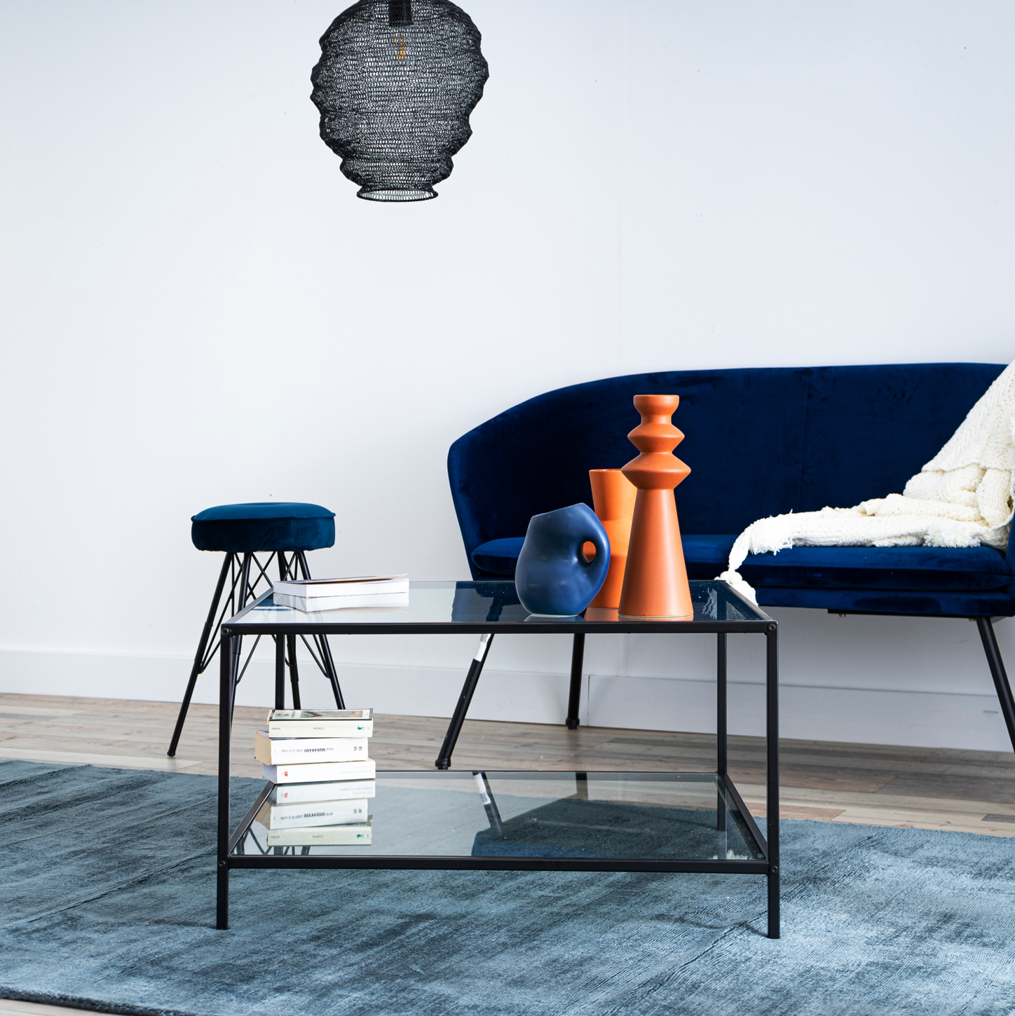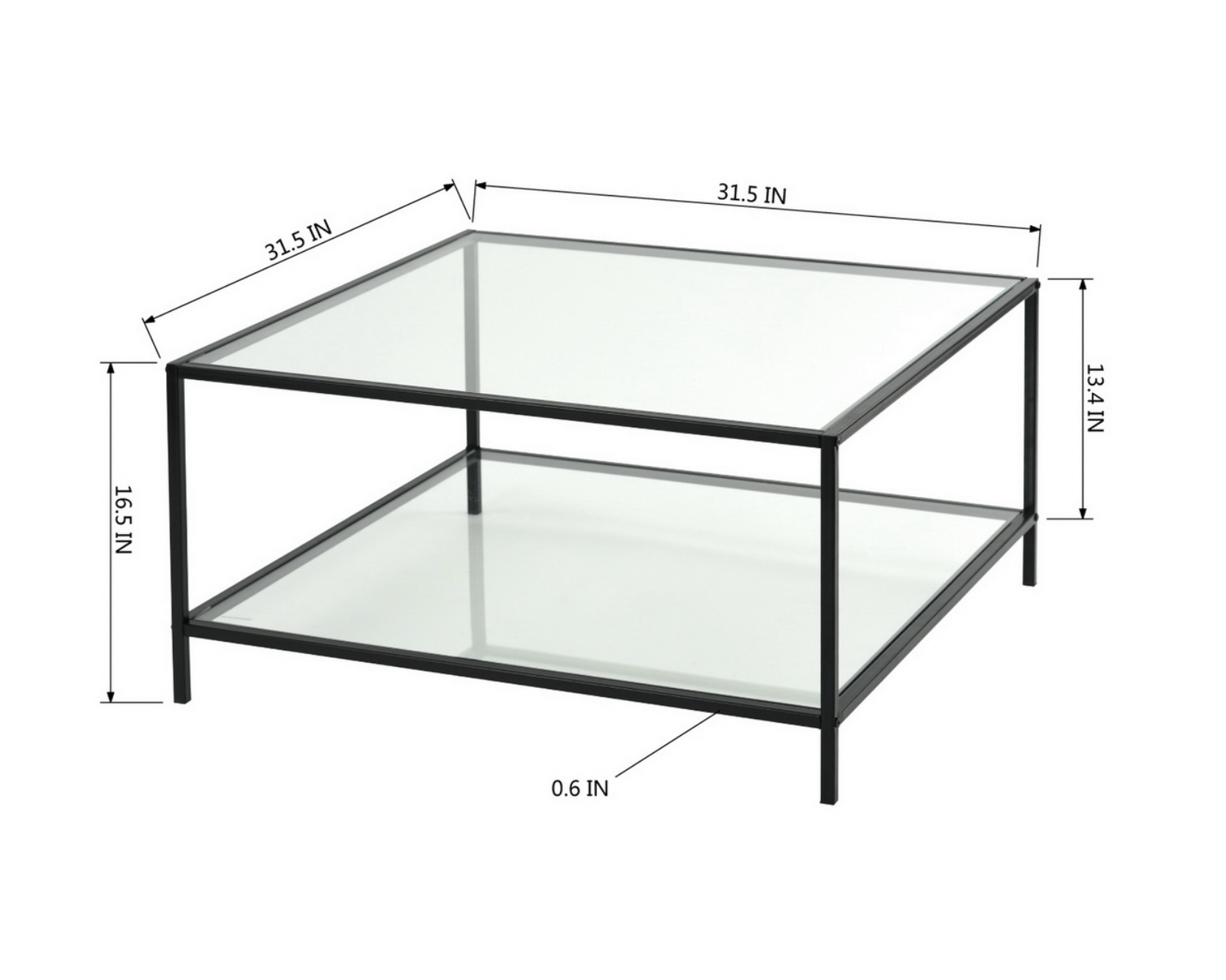 A beautiful combination of clean design and contemporary style, this coffee table benefits from the clarity of glass and the simple chic of black metal. The two layers of clear tempered glass are supported by powder-coated metal legs, providing double the surface area so you can make the most of your living space, and rubber stoppers on the legs protect your carpet or floor.