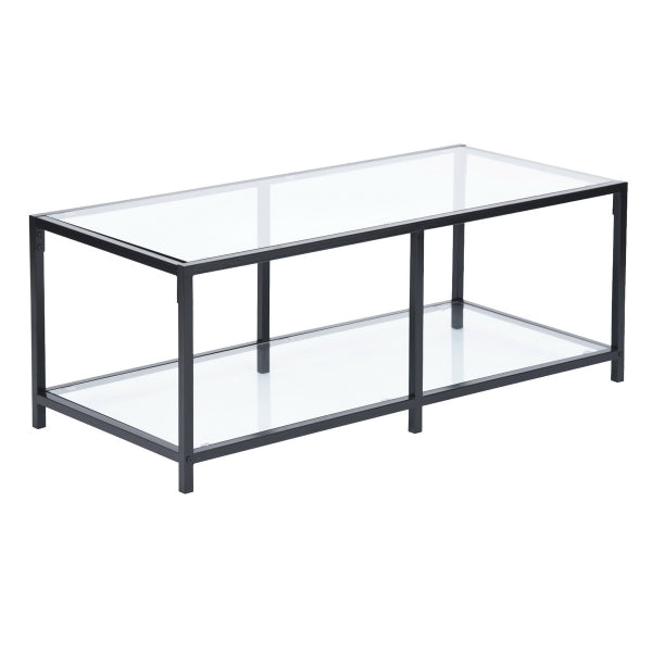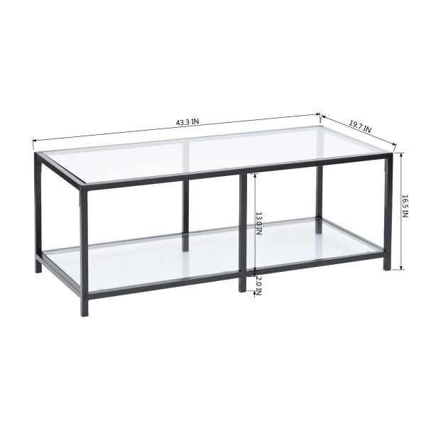 coffee table,product size:W110*D50*H42CM 8mm transparent glass,20mm square tube in matte black powder coating.