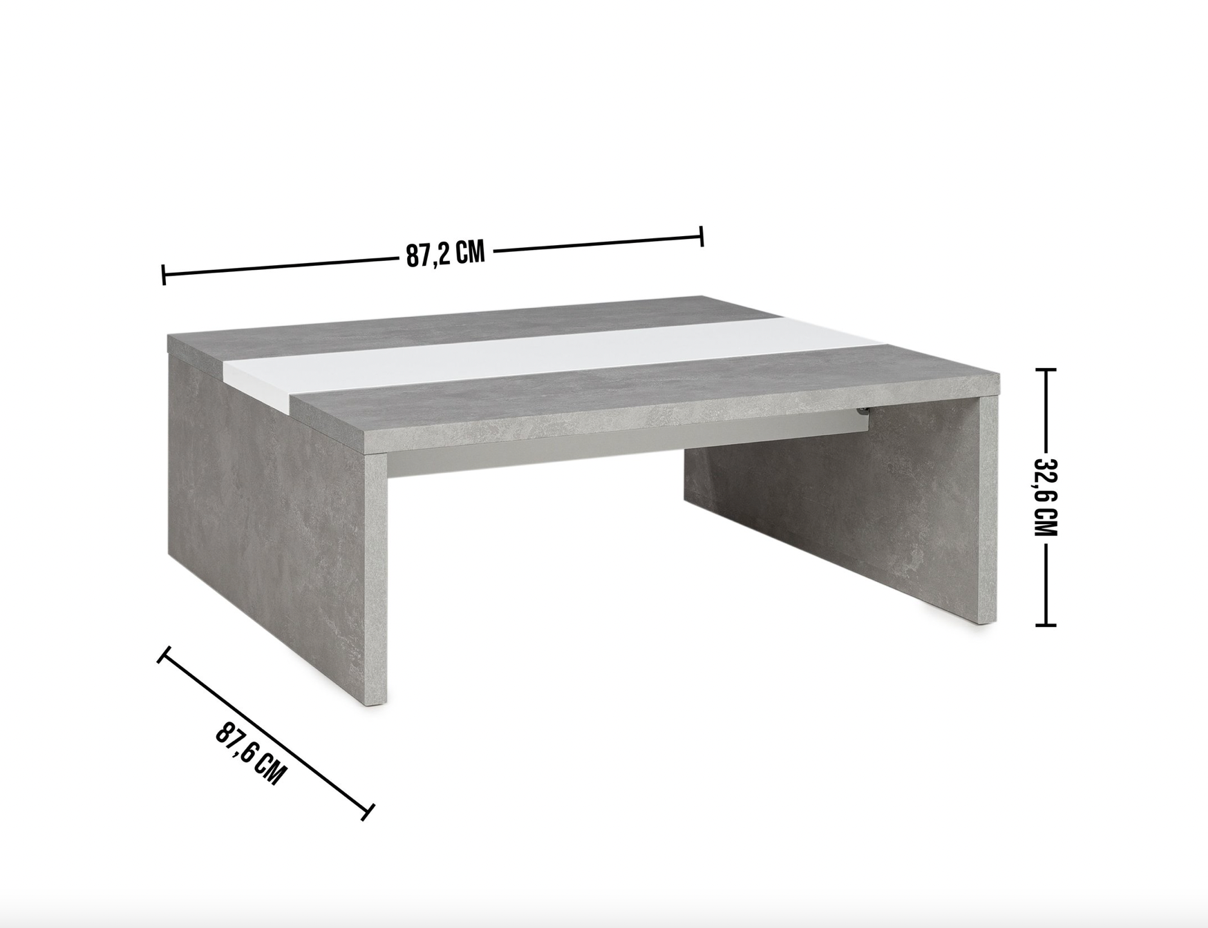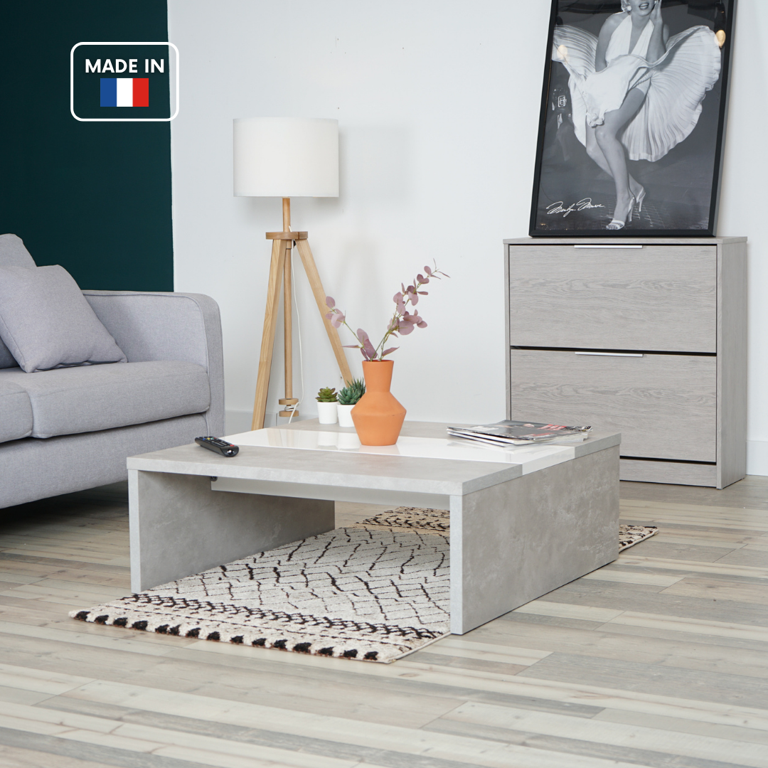 Our beautiful MUFFIN coffee table will add a touch of modernity to your home with its unique, sleek and elegant design. Its square shape and its design mixing a white glossy tray and a concrete structure will bring singularity to your interior. In addition, this shape allows you to have a wider tray to accommodate your remote controls, your magazines or magazines, for a pleasant relaxation corner.