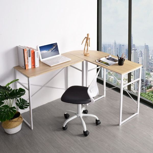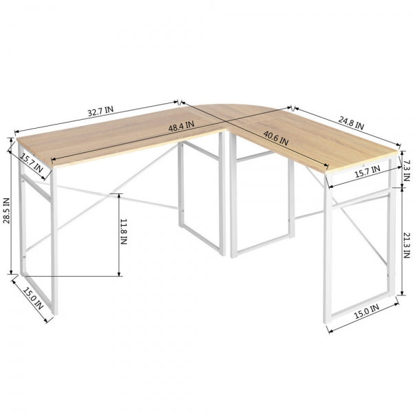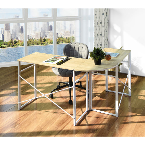 Computer Table, product size: 123*103*72CM. 15mm PB board with single side #21269-04 oak PVC. Steel tube in white powder coating