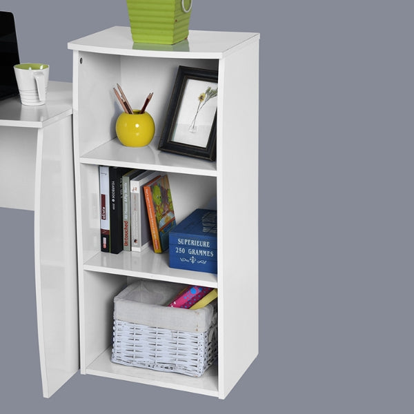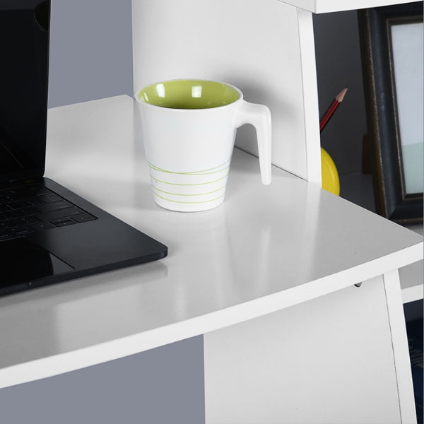 Computer Desk Set. Desk Size: W60*D47-50*H73cm.Melamine E2 PB 15MM . Curved edge for front of top board and side boards. Depth of top board range between 47-50cm. Support board Size: L55*W24*H1.5cm. Shelf size: W40*D30-33*H89cm, melamine E2 PB 15MM . 3 layers, the distance between each bottom of one board and top of the lower board is 27.5cm. Curved edge for top board and side boards. Depth of top board range between 30-33cm. 1 set/ctn, mailbox.