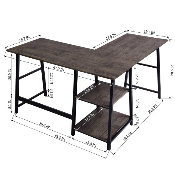 Corner computer desk, 80-120*50*75cm, product size: , E1 15mm MDF with 246T PVC, BLACK metal tube20*20*0.8mm/25*25*0.8mm with powder coated finished.1pcs/ctn, mailbox.