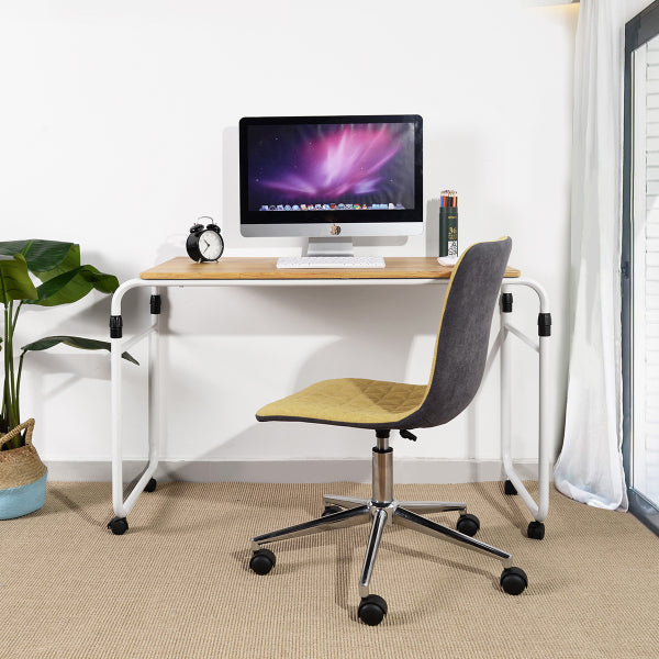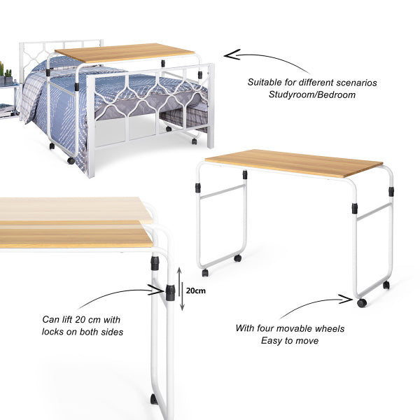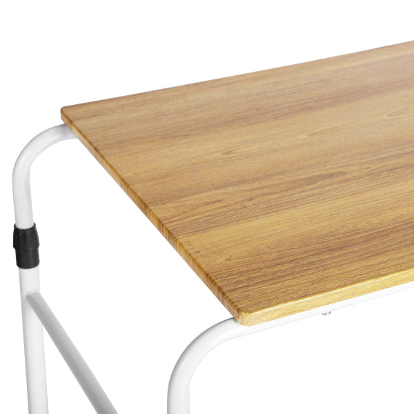 Computer table on retractable bed.Product size: 1100x550x700/900mm.Steel tube size: appearance: 25x1.0mm.Inner tube: 22x1.0mm.Both sides of the rack support pipe 19x0.8mm.Both are bare tubes.White paint.15mm E1 MDF PVC with gold oak grain.With four wheels (non-industrial wheels) of 5cm strength, two with locks and two without locks.B: one case at a time.Cloud inventory 3A box drop and cloud inventory delivery standard.
