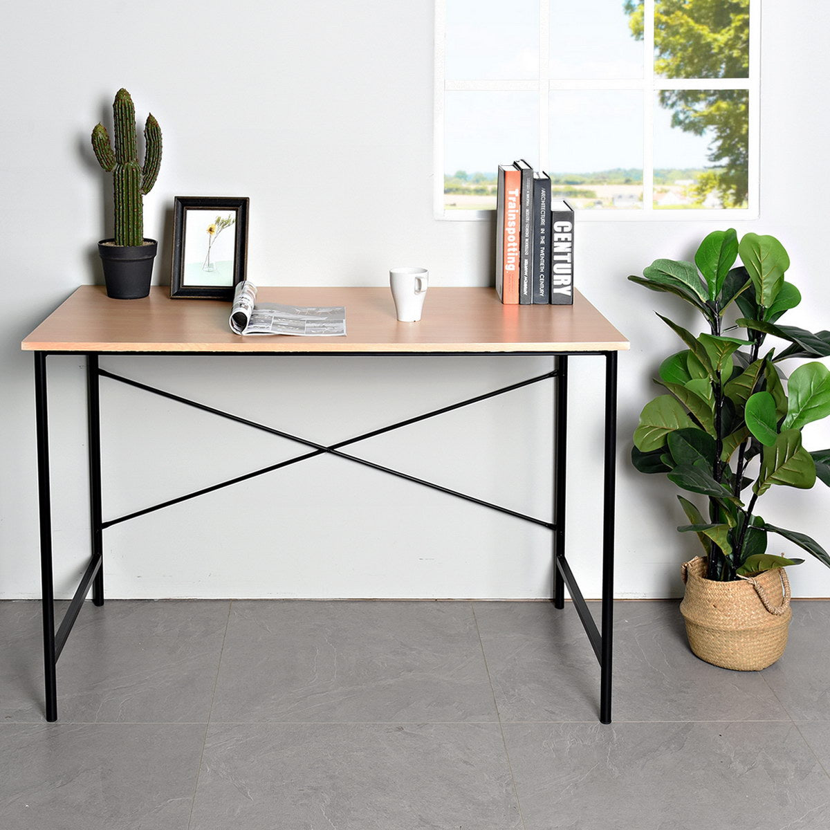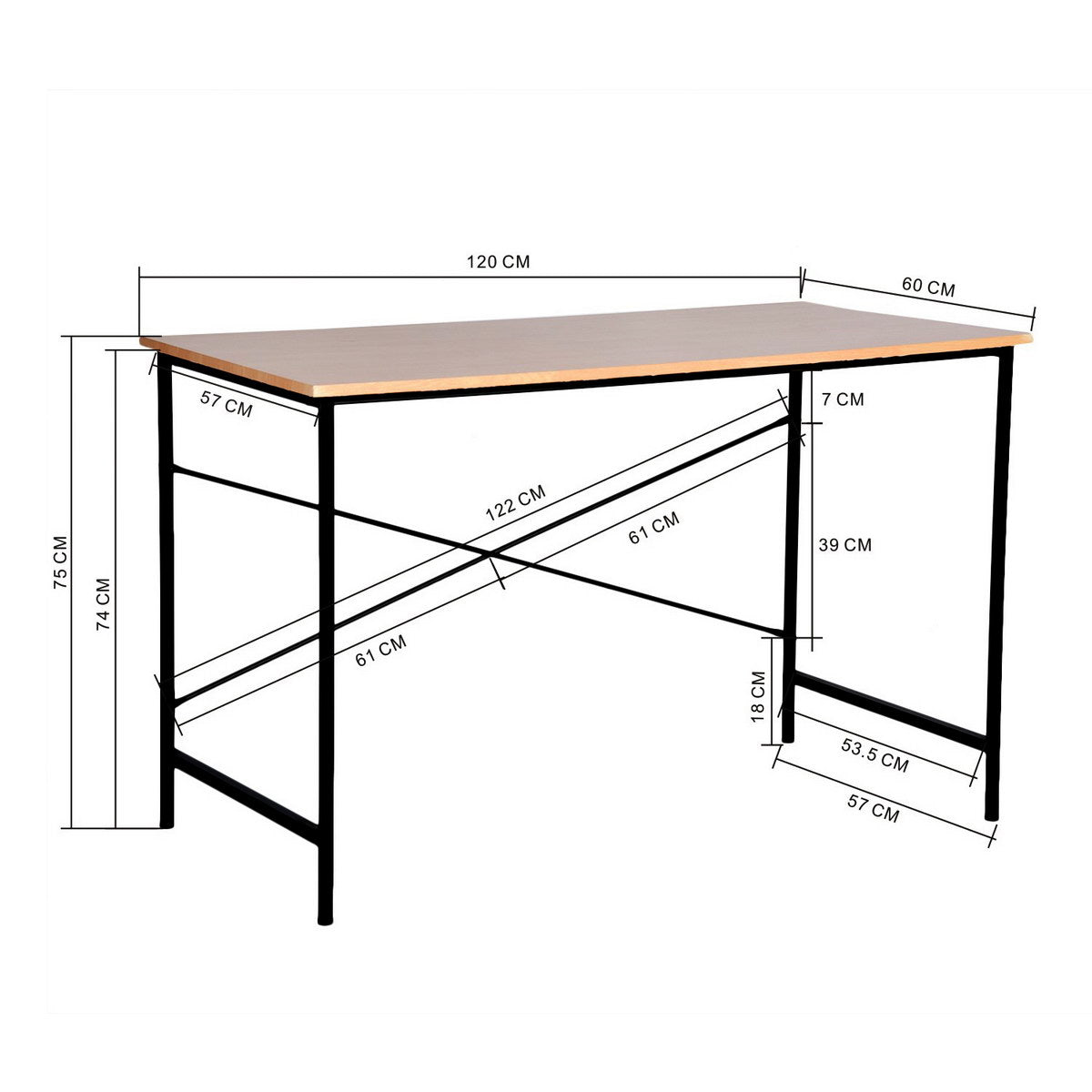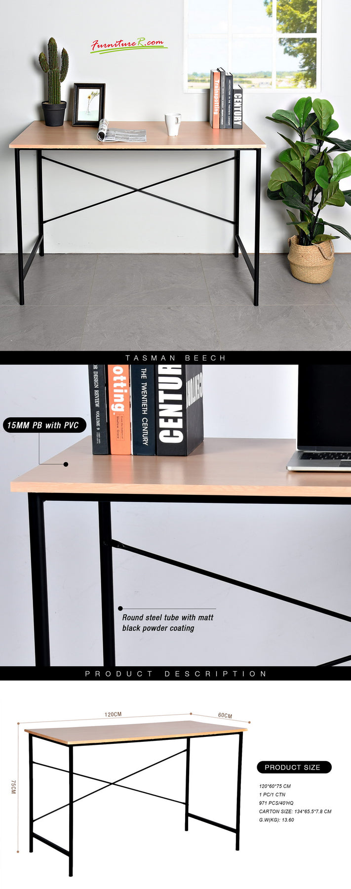 Computer desk, product size: 120 * 60 * 75.5CM, 22 * 0.6mm (before spraying) round tube matte black spraying, connecting pipes on both sides 20 * 20MM square tube, pull rod small round tube 9.5mm, 15MM PB stick wood grain PVC. 1 piece per box