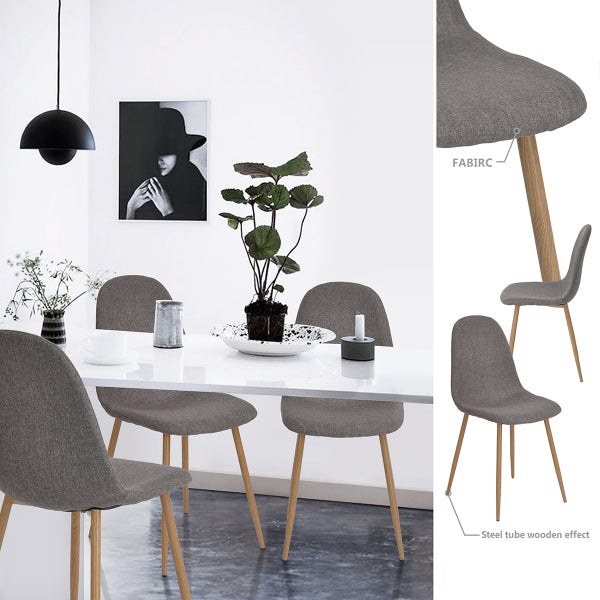 Fabric seat, metal tube in wooden print. 4pcs/ctn