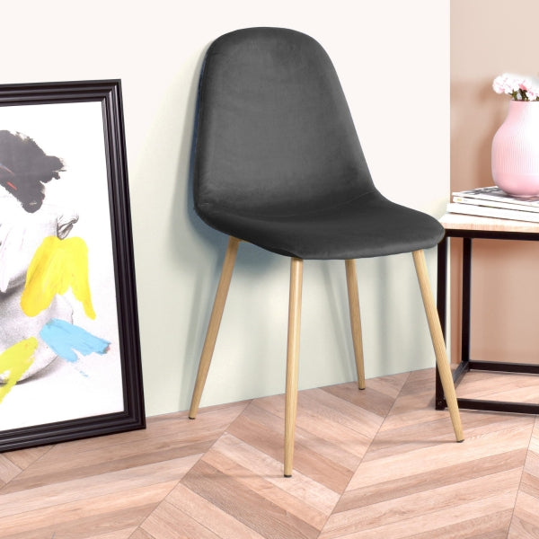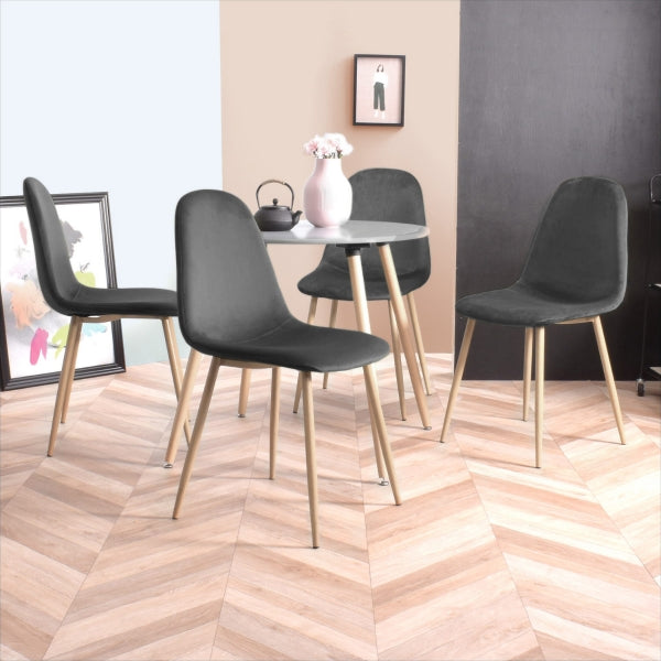 EUIPO Patent & CHINA Patent; Dining Chair, Steel tube in Wooden printing, Grey Velvet Fabric Cover Seat and Back.4PCS/1CTN, 200PSI Brown Carton Box With Black Printing.Mail order packing.Pass EN12520.