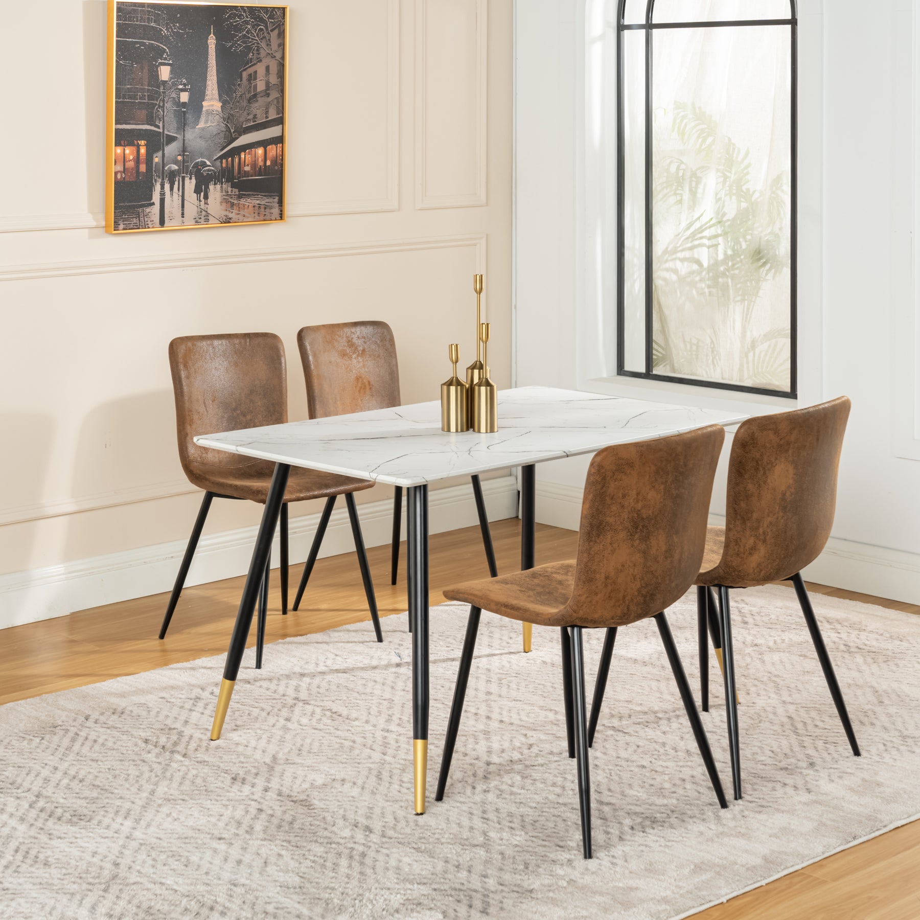 STURDY and DURABLE: The metal frame makes the dining chair sturdy and durable and can support up to 120 kg. The black metal legs have 4 black plastic pads under the seams for stability, which are silent and non-slip, ensuring they won't damage wooden floors or floors.