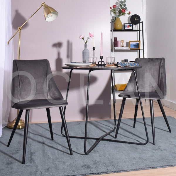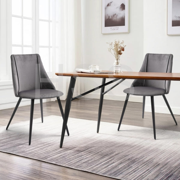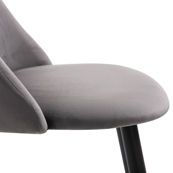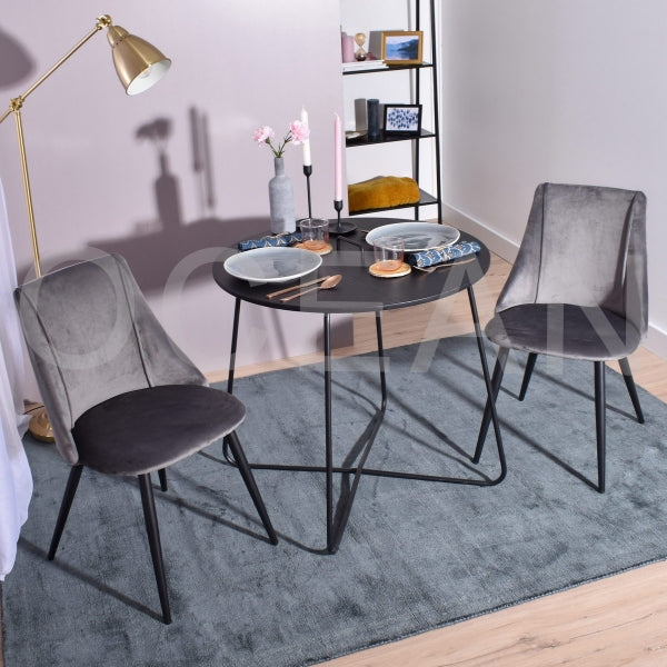 Dining chair, product size 52.5*49.5*83cm, British standard fireproof cloud velvet grey + black sprayed feet + British standard fireproof sponge, 18mm thick flat seat plate. 32 round tube shrink tube 19, 1.2 wall thickness. |