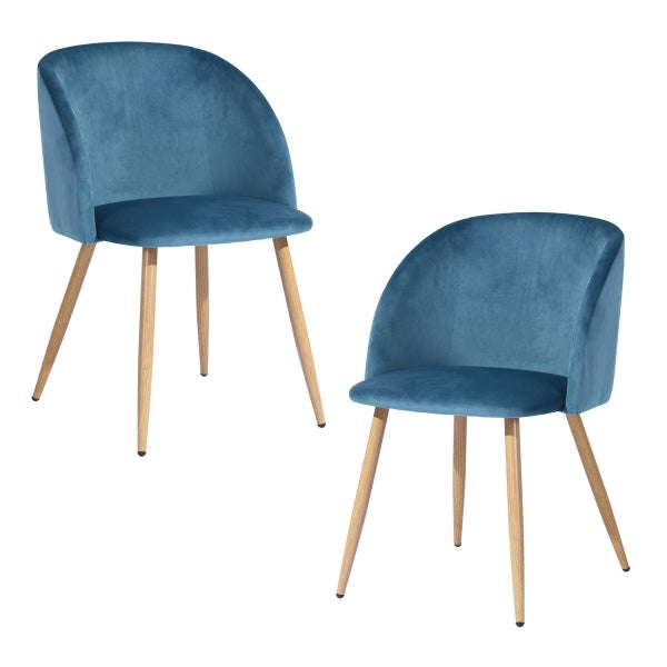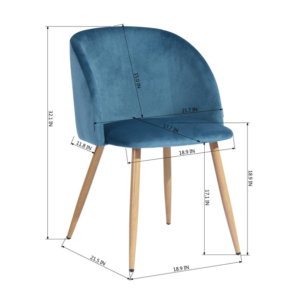 LEISURE CHAIR; Product size: W53.5*D59*H82CM; Seat and back in Blue#48 velvet.Metal Leg in wooden color of Transfer printing.Seat width: 48CM; Seat depth: 46CM; BACK Height: 38CM; 1PC/CTN; Velvet material fullfill Reach test requirement; Brown mailbox in line draw. |