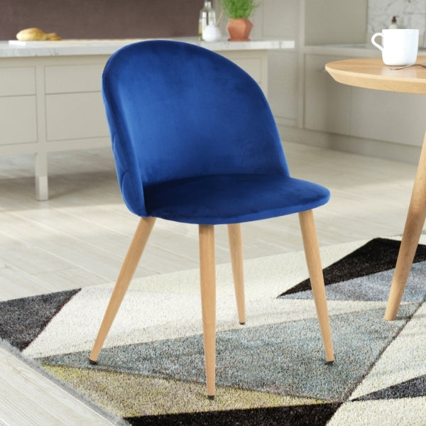 Dining chair, product size: 56*50*79cm, iron frame back + flat seat, oak fine wood grain transfer legs, fabric dark blue #69 velvet, brand new sponge, backrest diamond stitching, different shapes of front and rear legs iron leg. 38 round tube shrink tube, 1.2 wall thickness. |