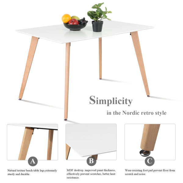 Product size: 110*70*72HCM, Material: 15MM MDF top with UV painting and bottom with Melamine, steel tube frame 30*15*1.2MM and solid square beech wood legs
