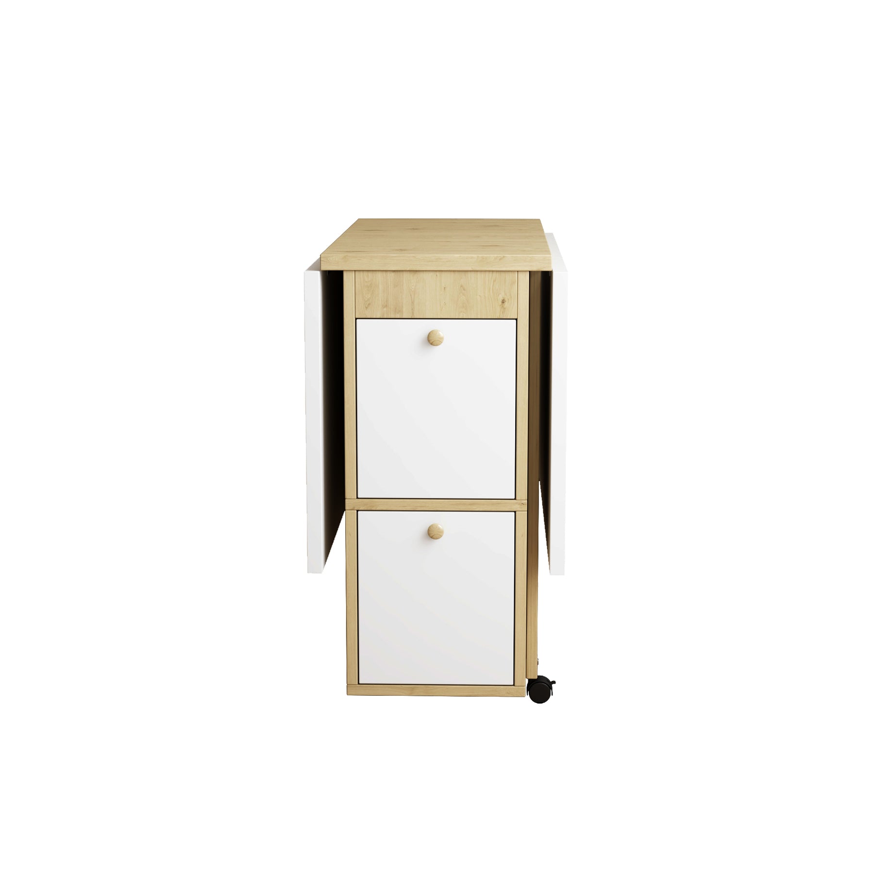 Optimisez l'espace de votre intérieur avec cet ensemble table de salle à manger innovant, conçu pour allier flexibilité et style. Dotée d'un design pliable et rétractable, cette table s'adapte facilement à vos besoins, que ce soit pour les repas quotidiens en petit comité ou pour accueillir plus d'invités lors d'occasions spéciales. Sa combinaison de couleurs blanc et chêne offre un style simple et moderne qui s'intègre harmonieusement dans divers décors, du contemporain au rétro. Fabriquée en panneaux de particules, elle garantit légèreté, stabilité, durabilité et facilité d'entretien. L'ensemble inclut également quatre chaises, qui se rangent astucieusement à l'intérieur de la table lorsqu'elle est pliée, maximisant ainsi l'espace au sol. Plus qu'une simple table à manger, elle peut également servir de surface de travail temporaire, de bureau d'étude ou de lieu pour de petits événements, augmentant ainsi la praticité et la flexibilité de votre foyer.