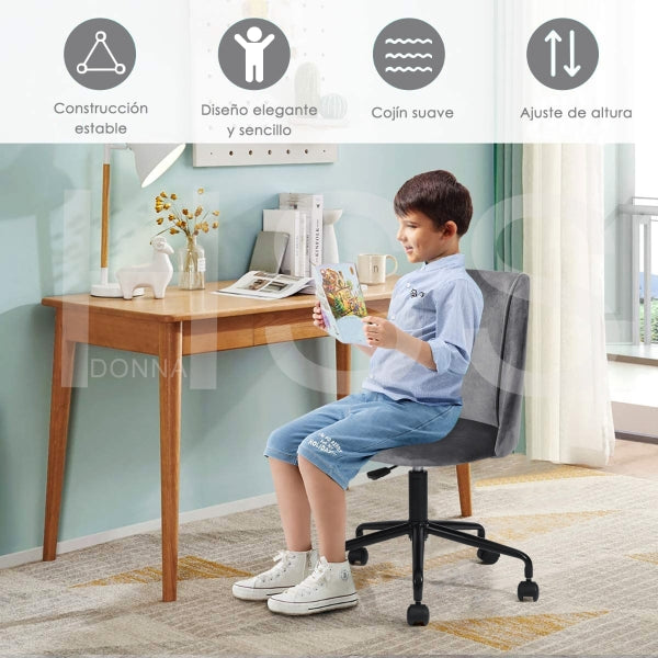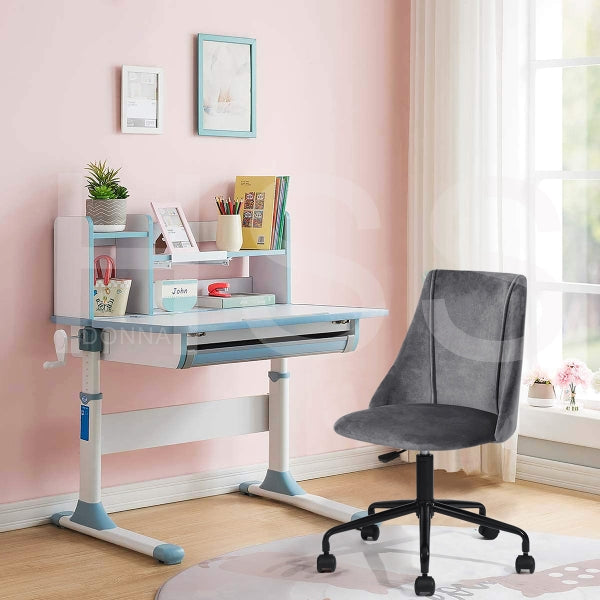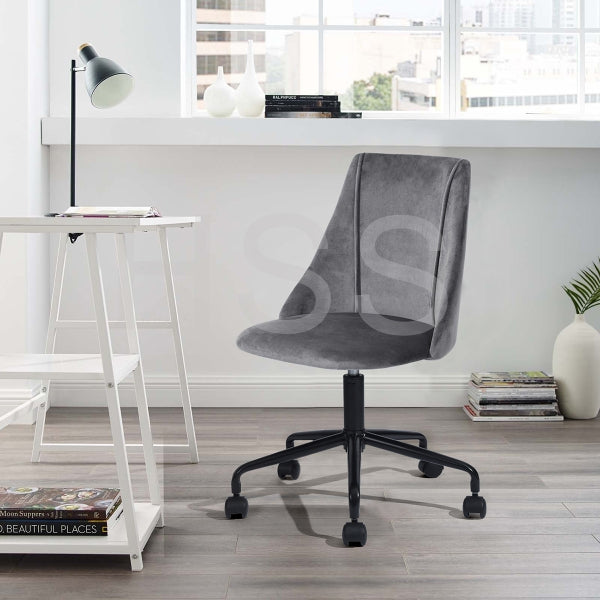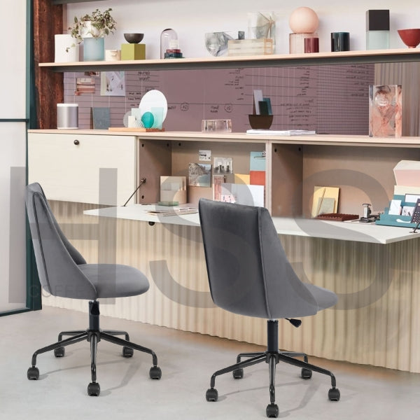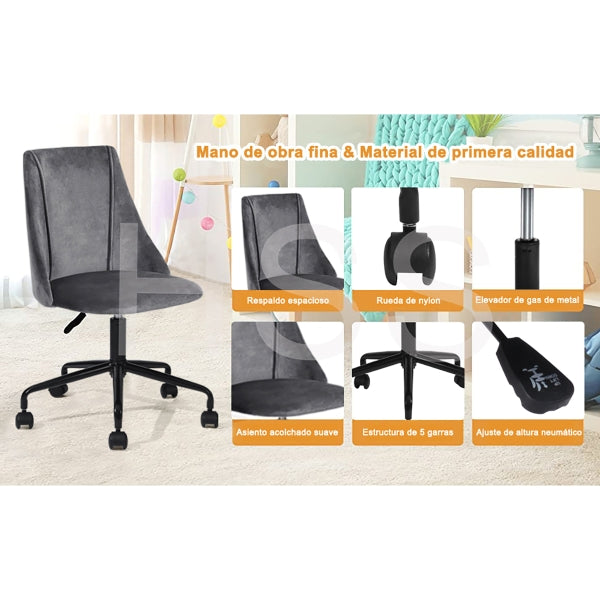 Size: W52*D51*H84.5cm; Grey velvet FABRIC COVER , STEEL FRAME , 100MM black powder coating GAS LIFT, 300MM black powder coating.