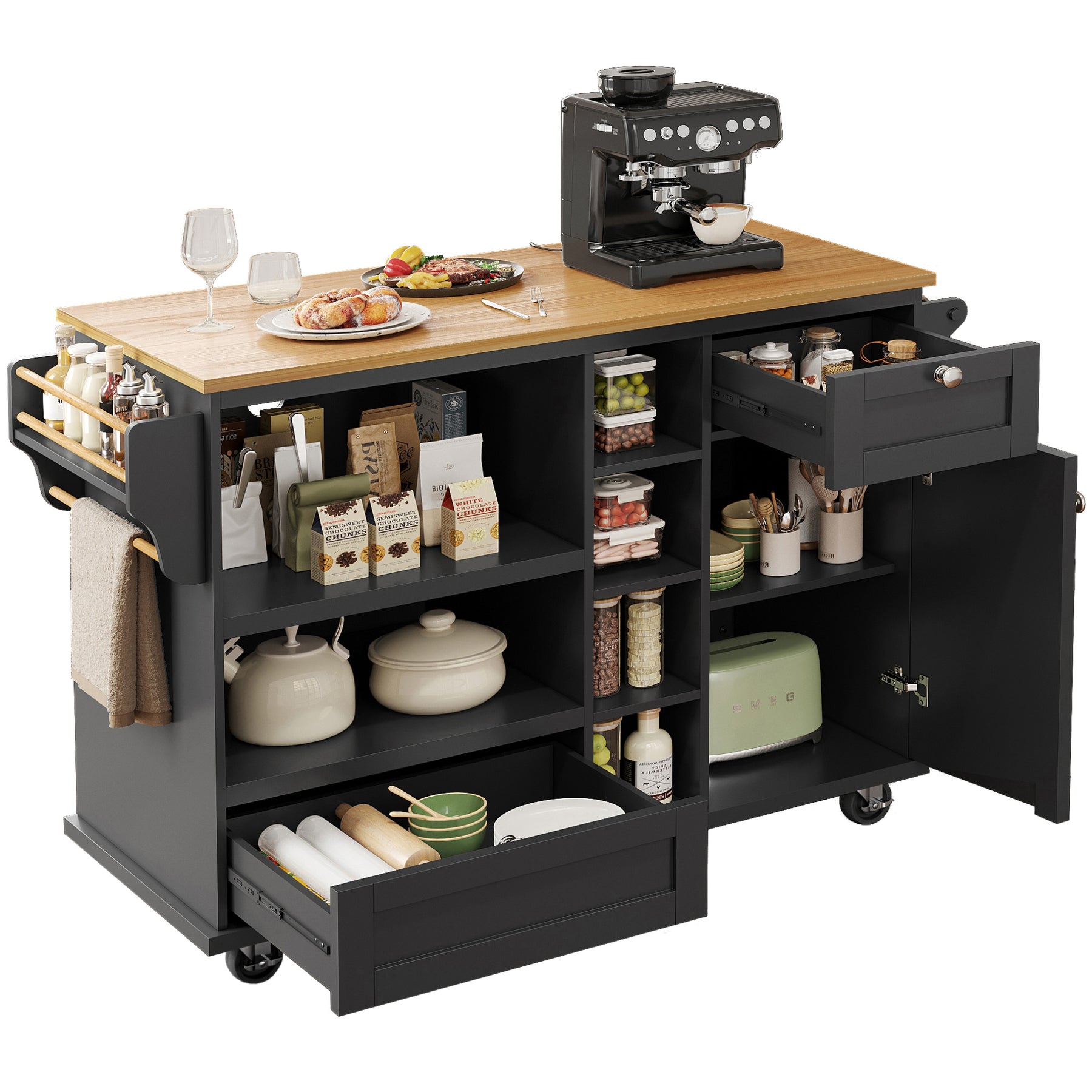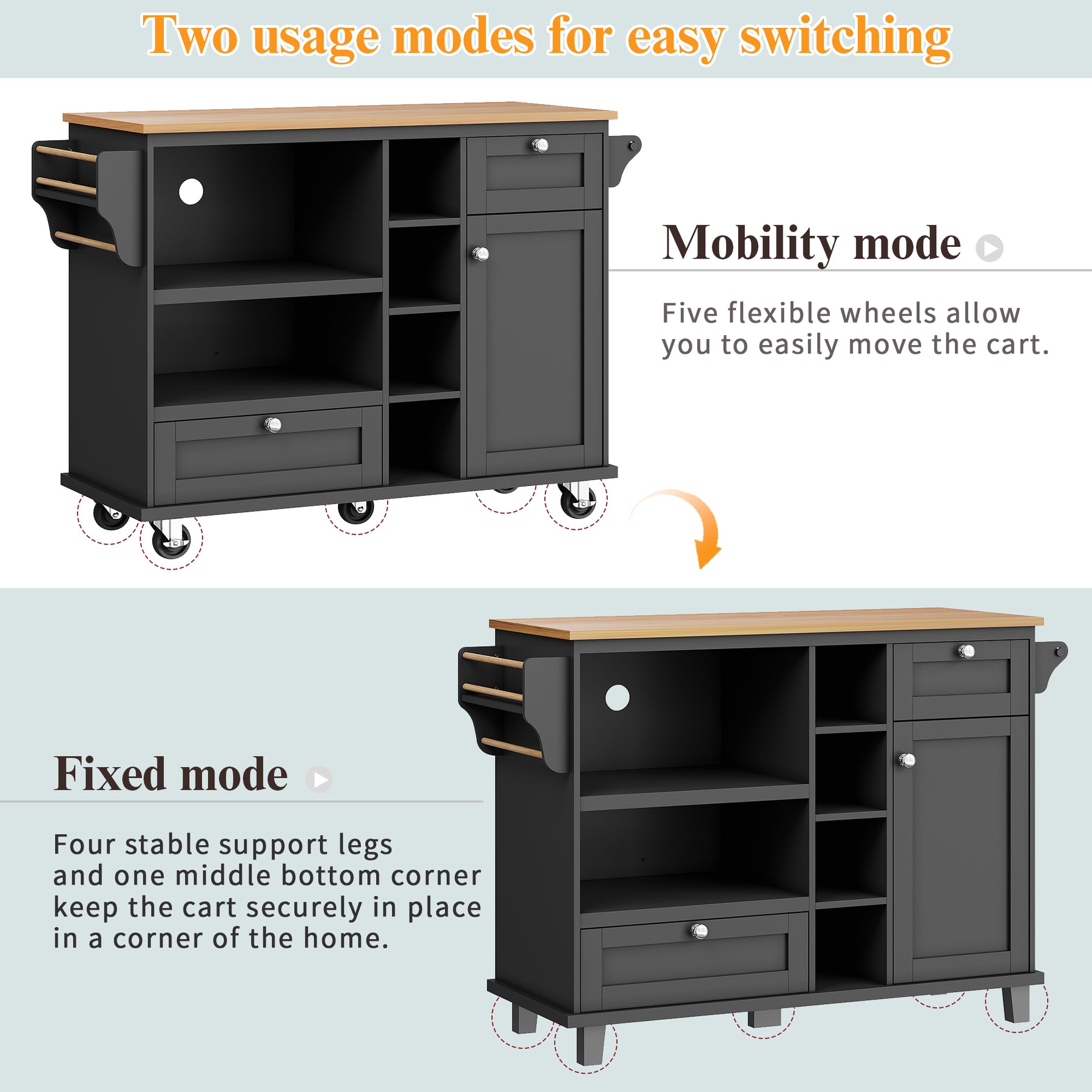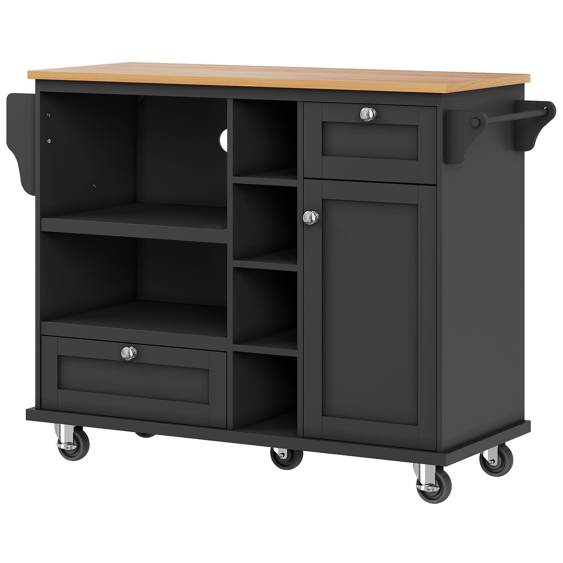 Desserte de Cuisine Mobile Noire avec Plateau Effet Bois, Rangement Multifonctionnel et Double Mode d&