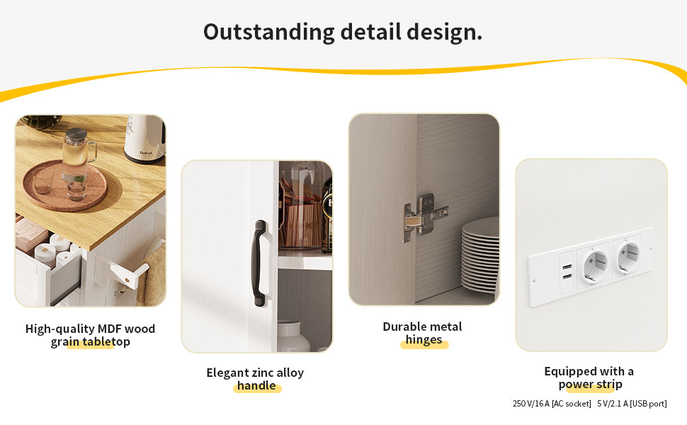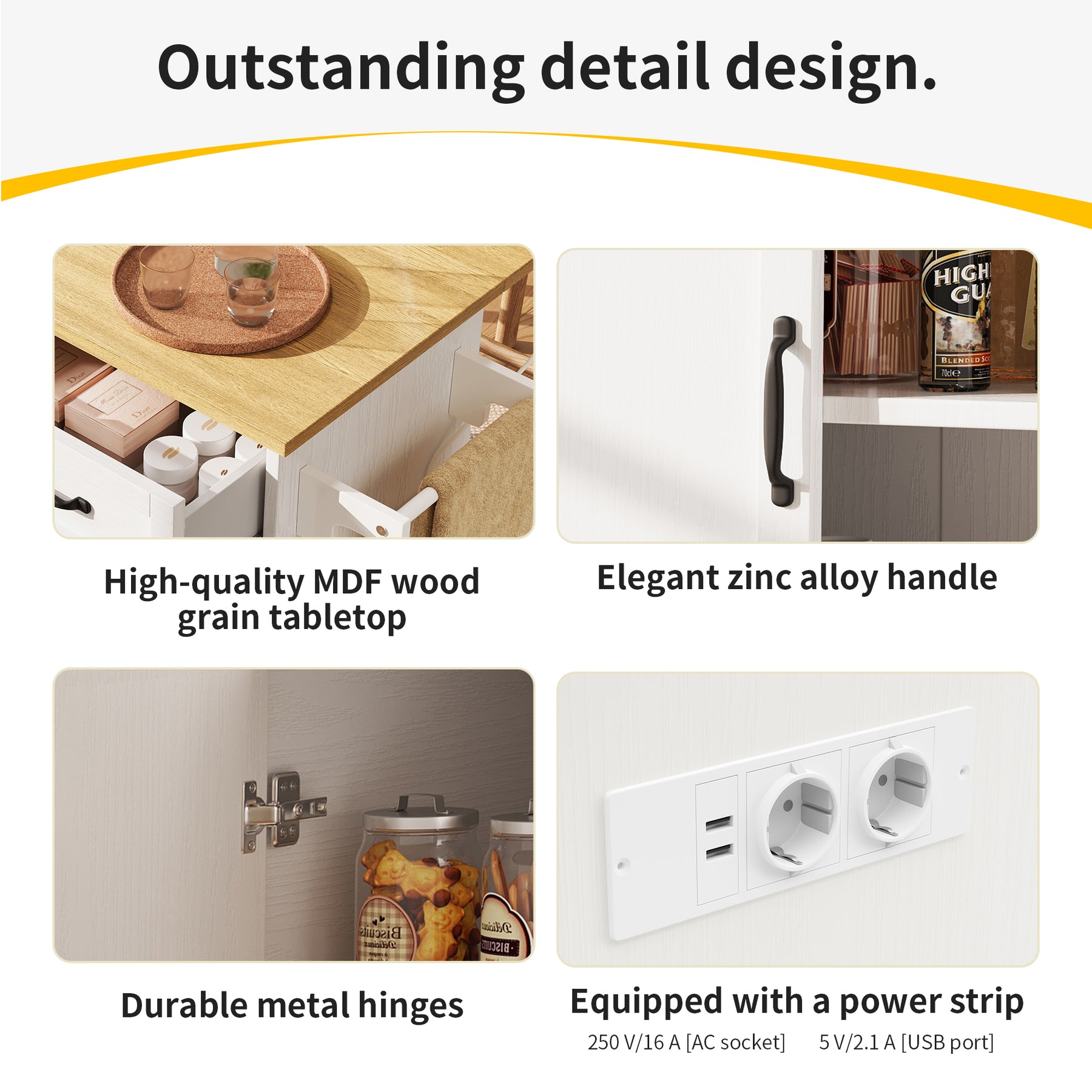 • Équipé de Prises Électriques Intégrées : Les prises électriques situées sur le côté de l'îlot permettent de brancher facilement divers appareils de cuisine tels que cuisinières à induction, machines à café ou petits réfrigérateurs, ajoutant une commodité inégalée à votre espace de travail.