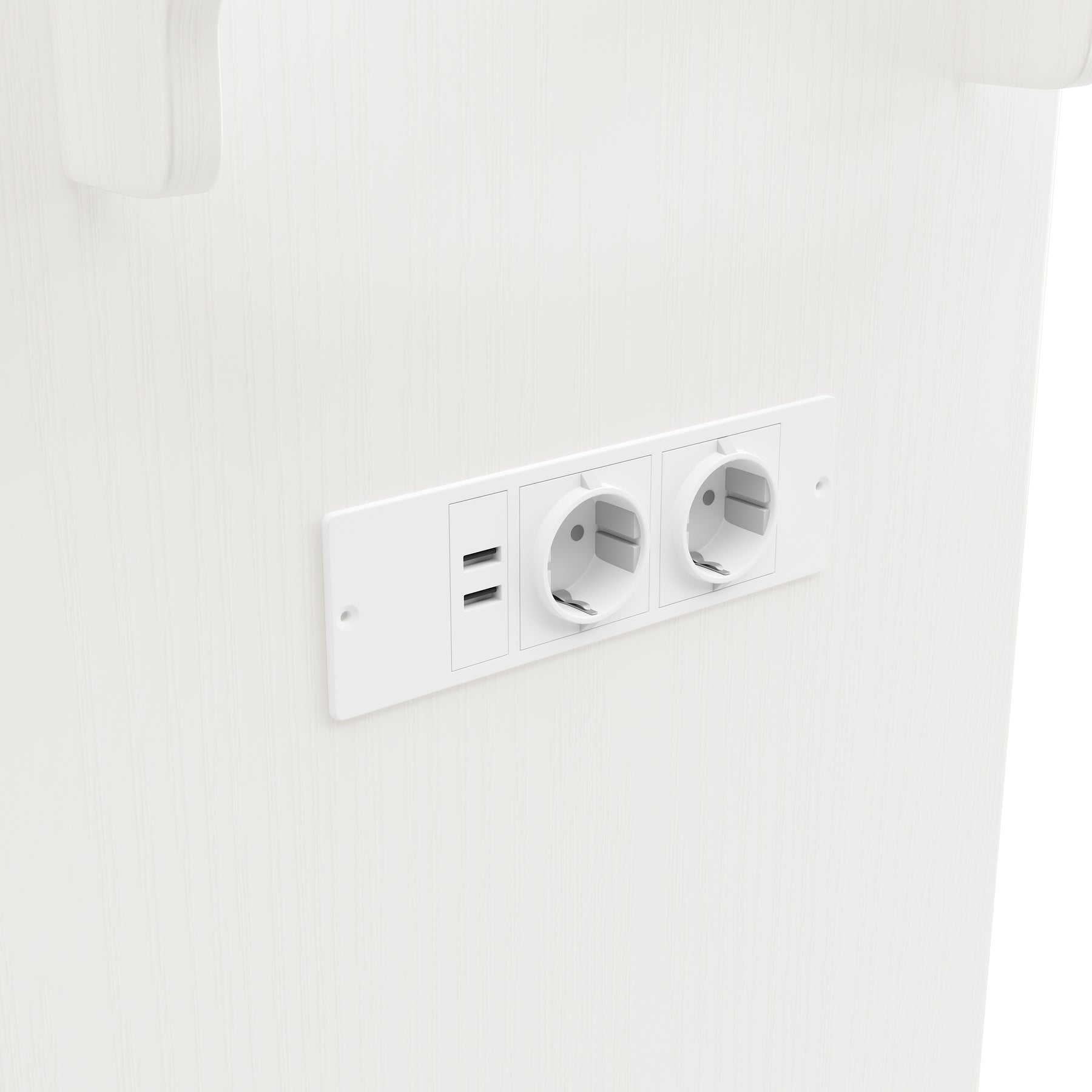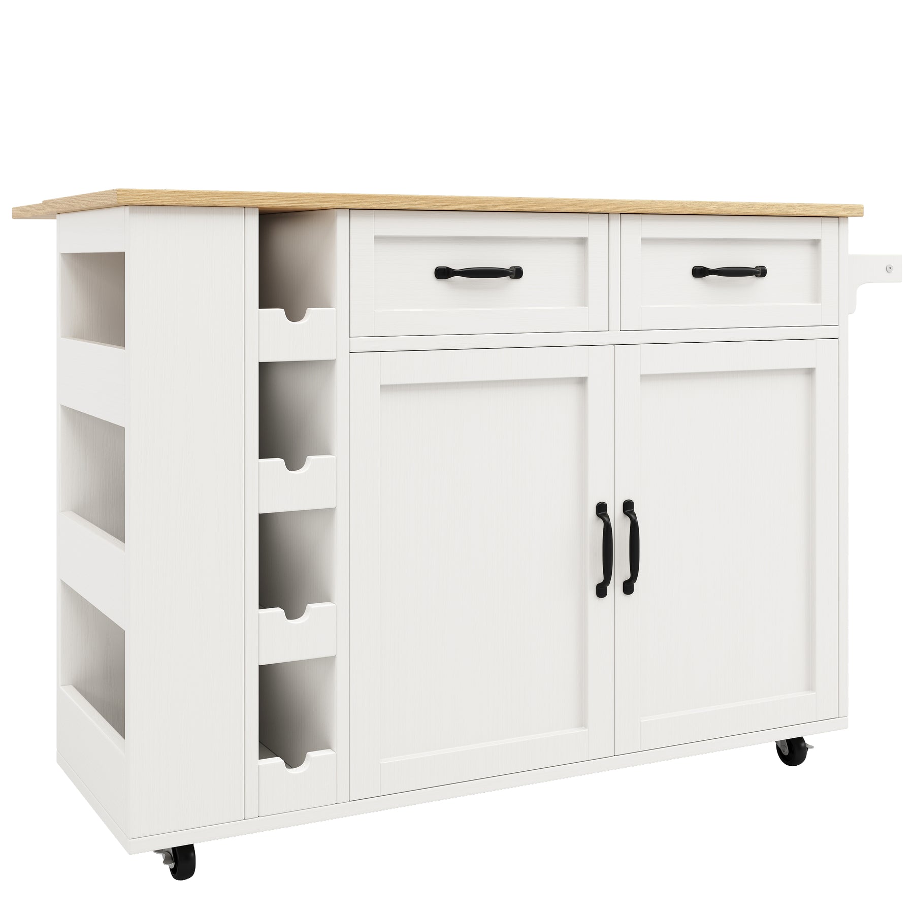 Îlot de Cuisine Mobile Blanc et Naturel avec Plateau Rabattable, Rangement et Prises Électriques NICELS