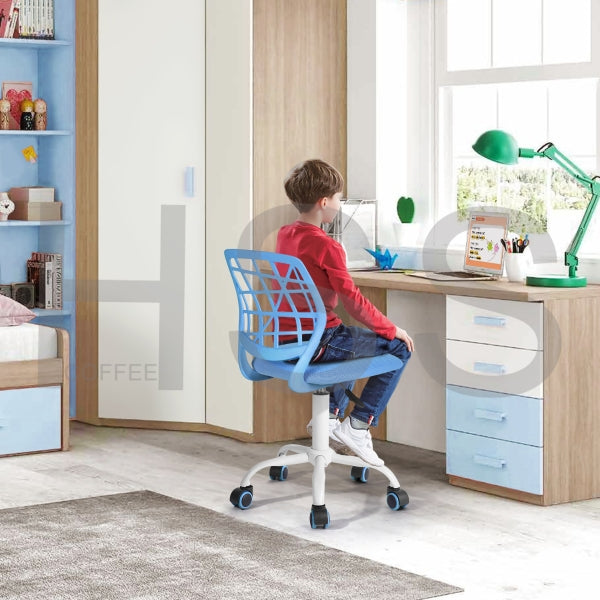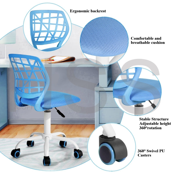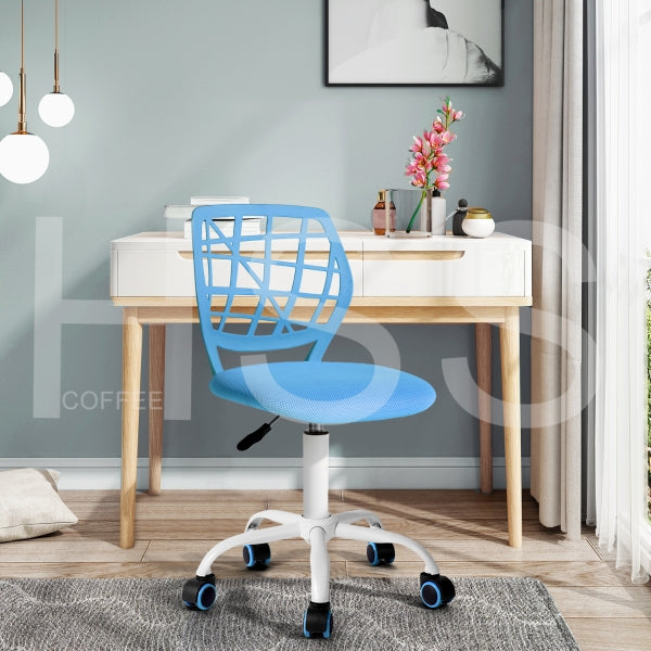 Blue chair, 240mm White Steel Base, blue Mesh on seat and PP on back. Only up and down function, colored PU castor.