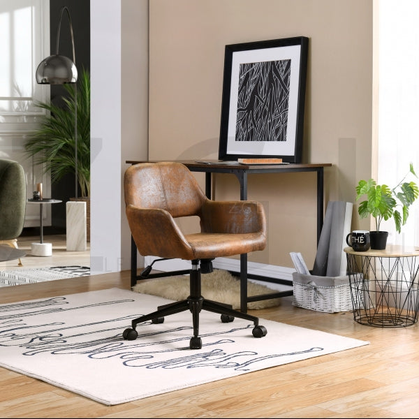 Office chair;brown microfiber fabric;butterfly seatplate;100mm gas lift;black metal base with nylon castors;200lbs brown box with line drawing.
