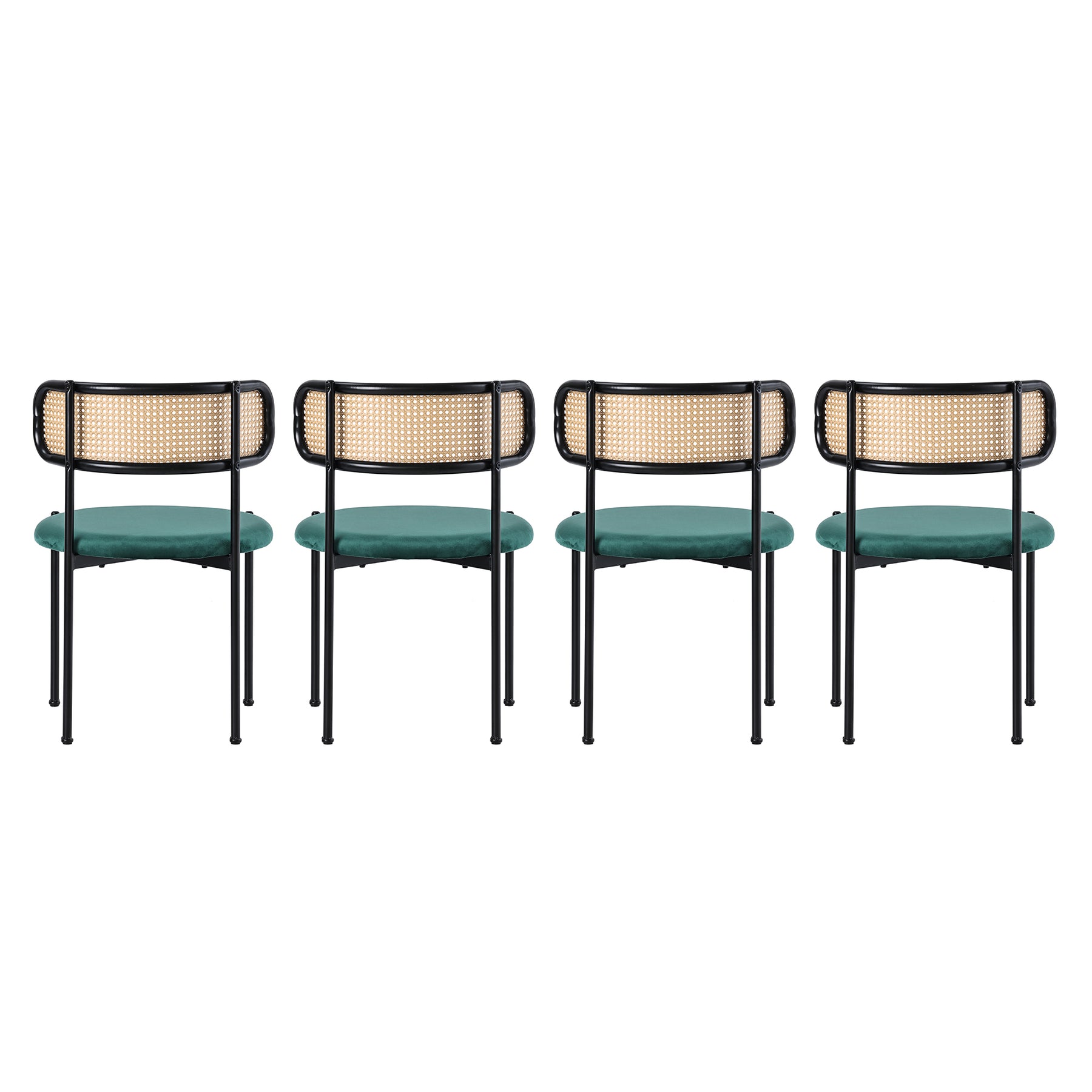 Lot de 4 Chaises de Salle à Manger Modernes - Velours Vert, Dossier Rotin et Pieds Métal Noir YUHRAR GREEN