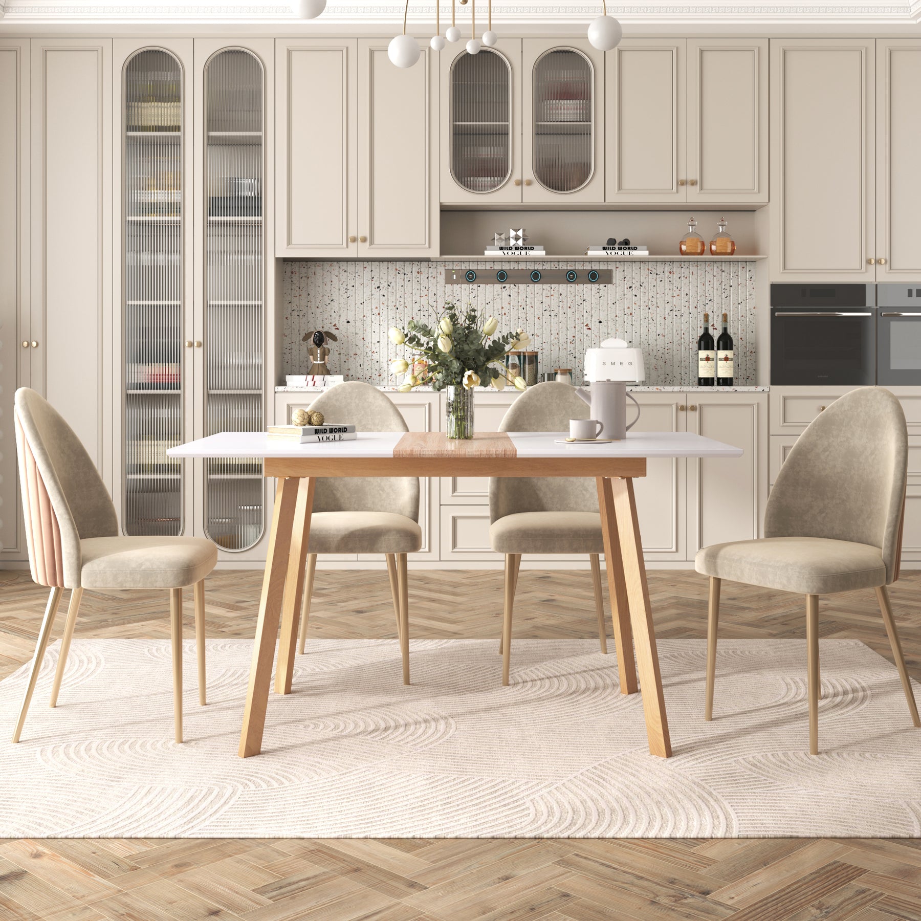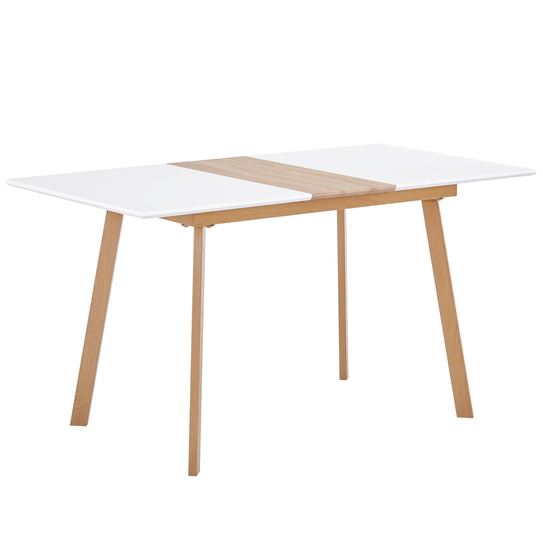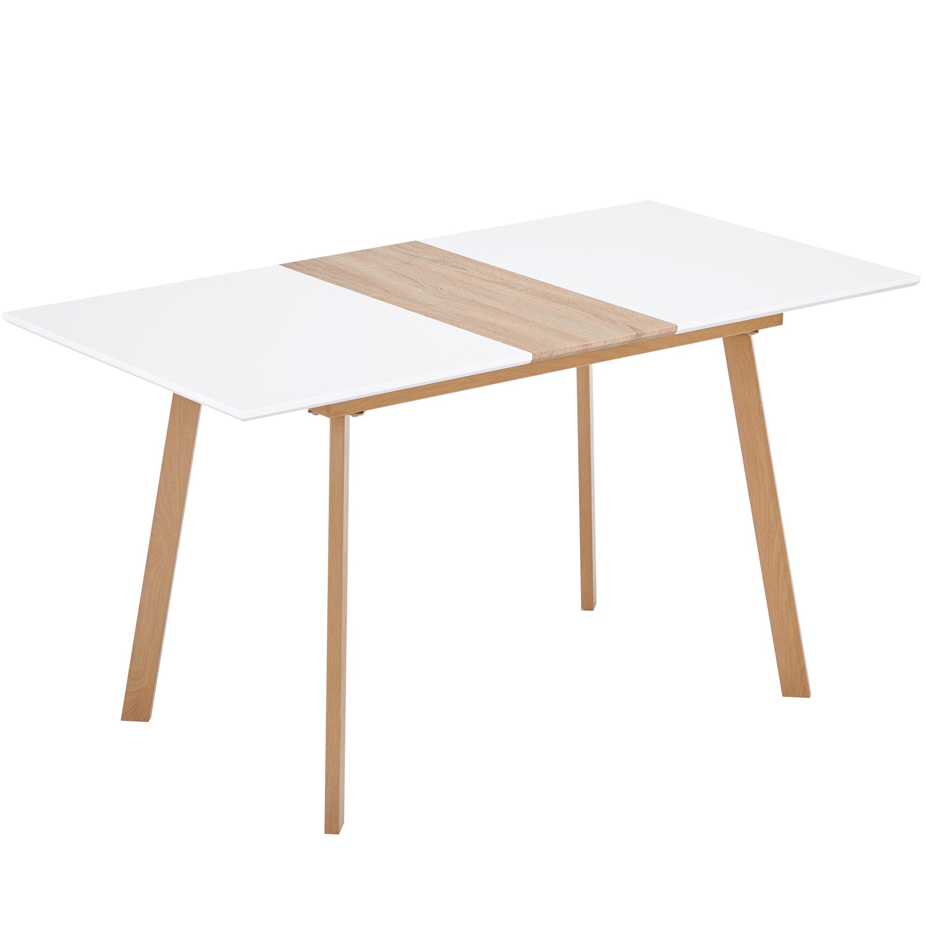 Table à Manger Extensible Moderne Bicolore (Blanc Mat & Bois Naturel) - Acier et MDF - Pour Maison et Bureau THANPHIKS