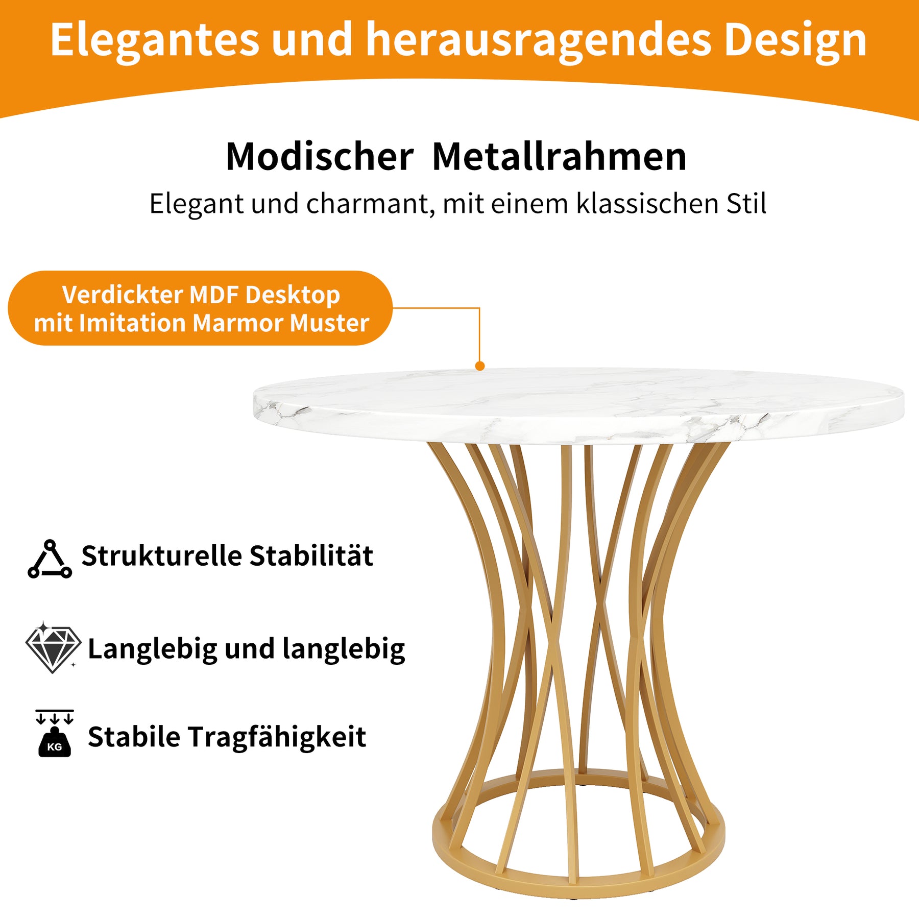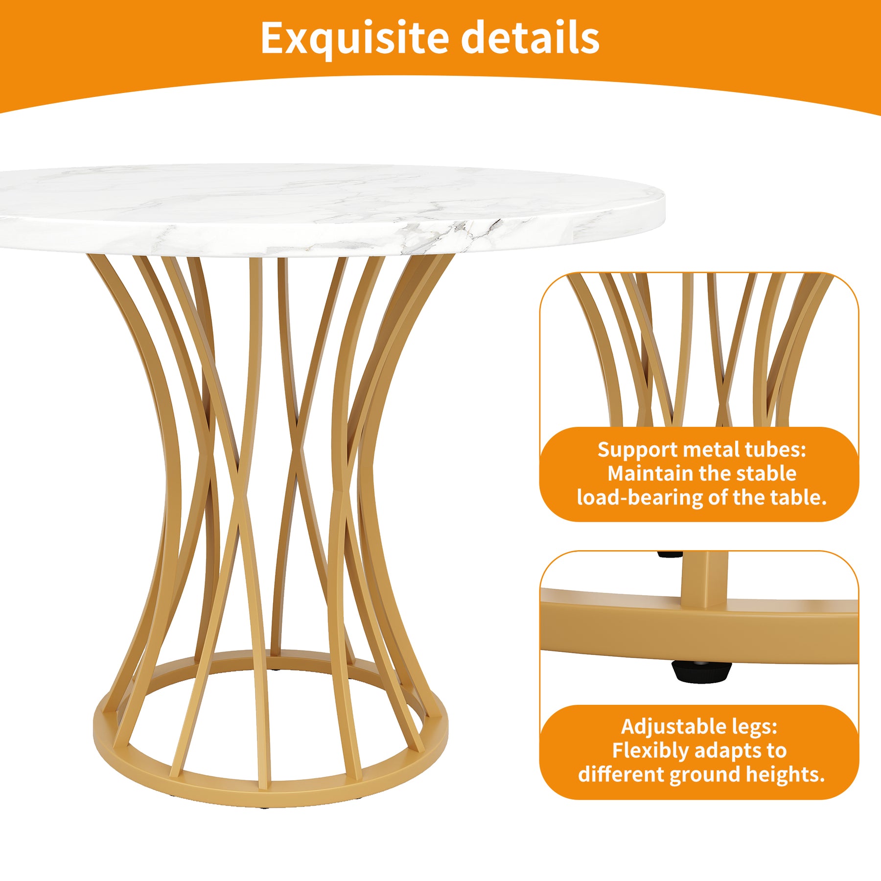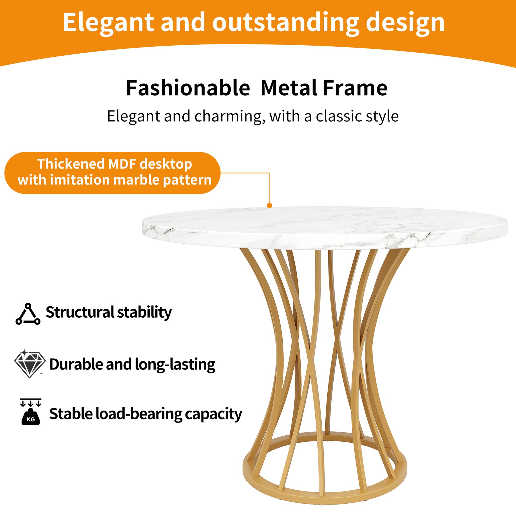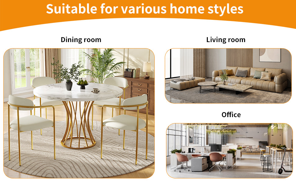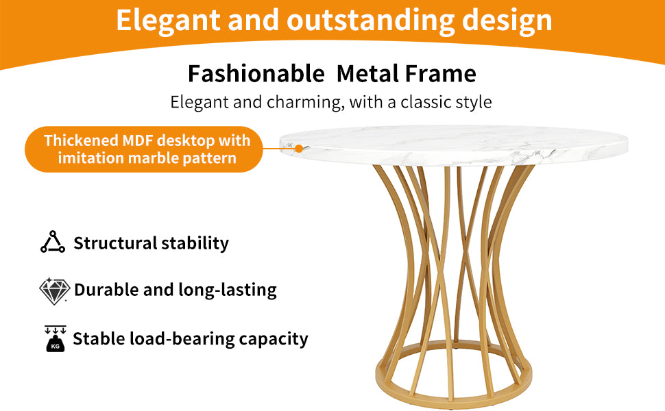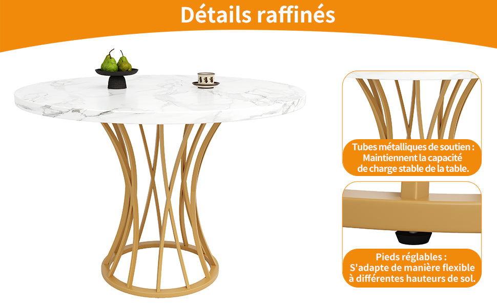 • Design Élégant et Exceptionnel : Dotée d'un piètement métallique doré à la mode et d'un style classique, cette table de salle à manger offre un aspect élégant et charmant, capable d'améliorer l'effet décoratif de n'importe quel espace de vie.