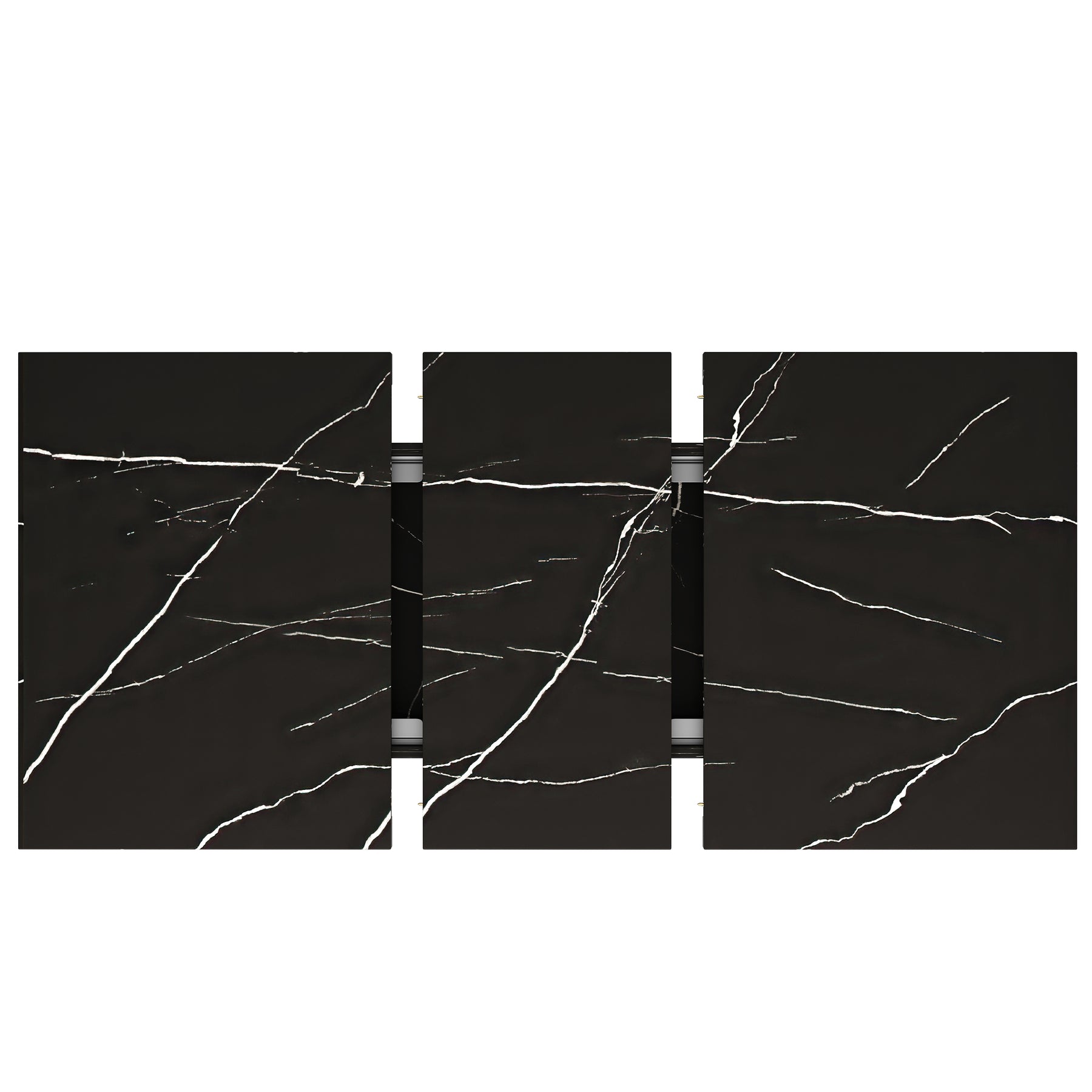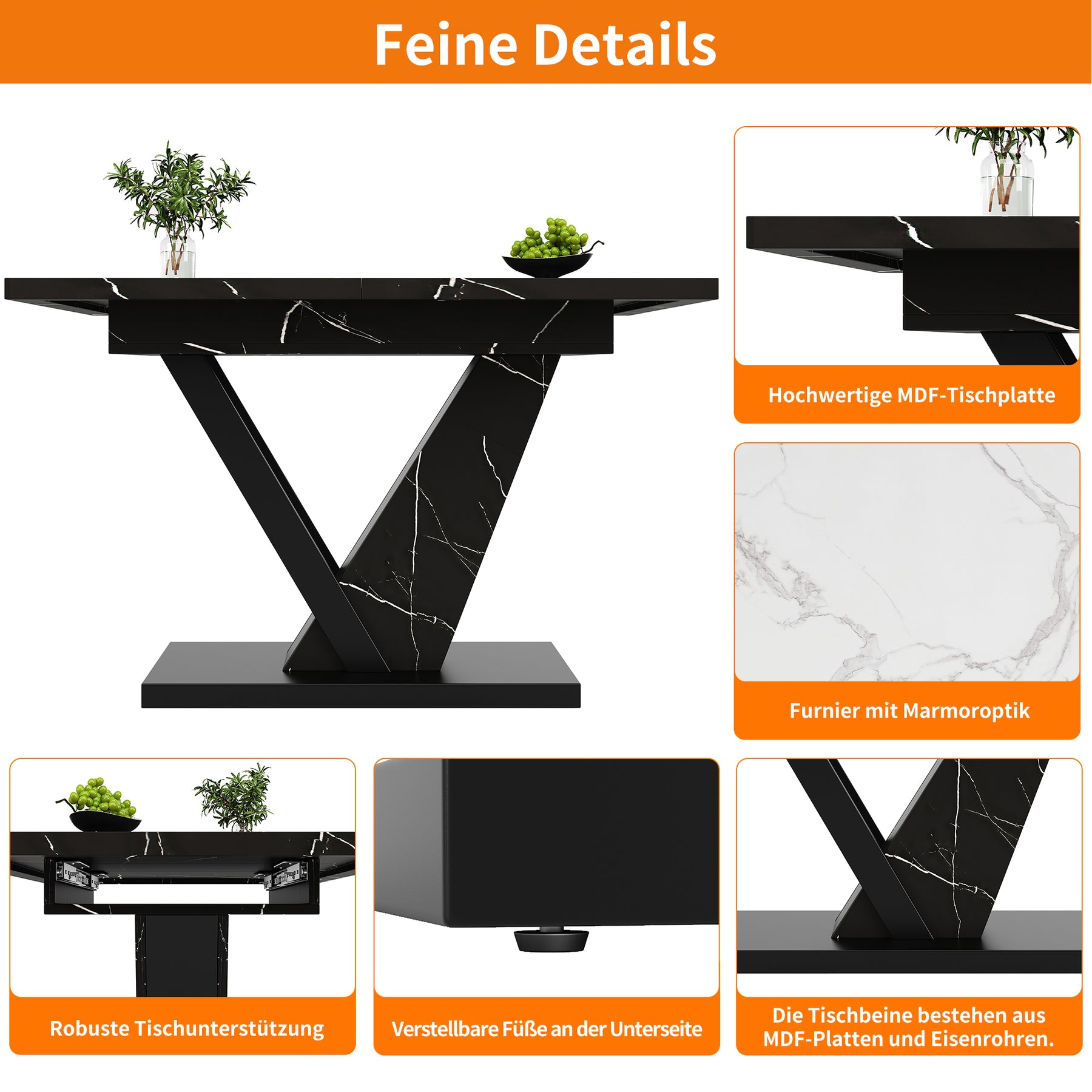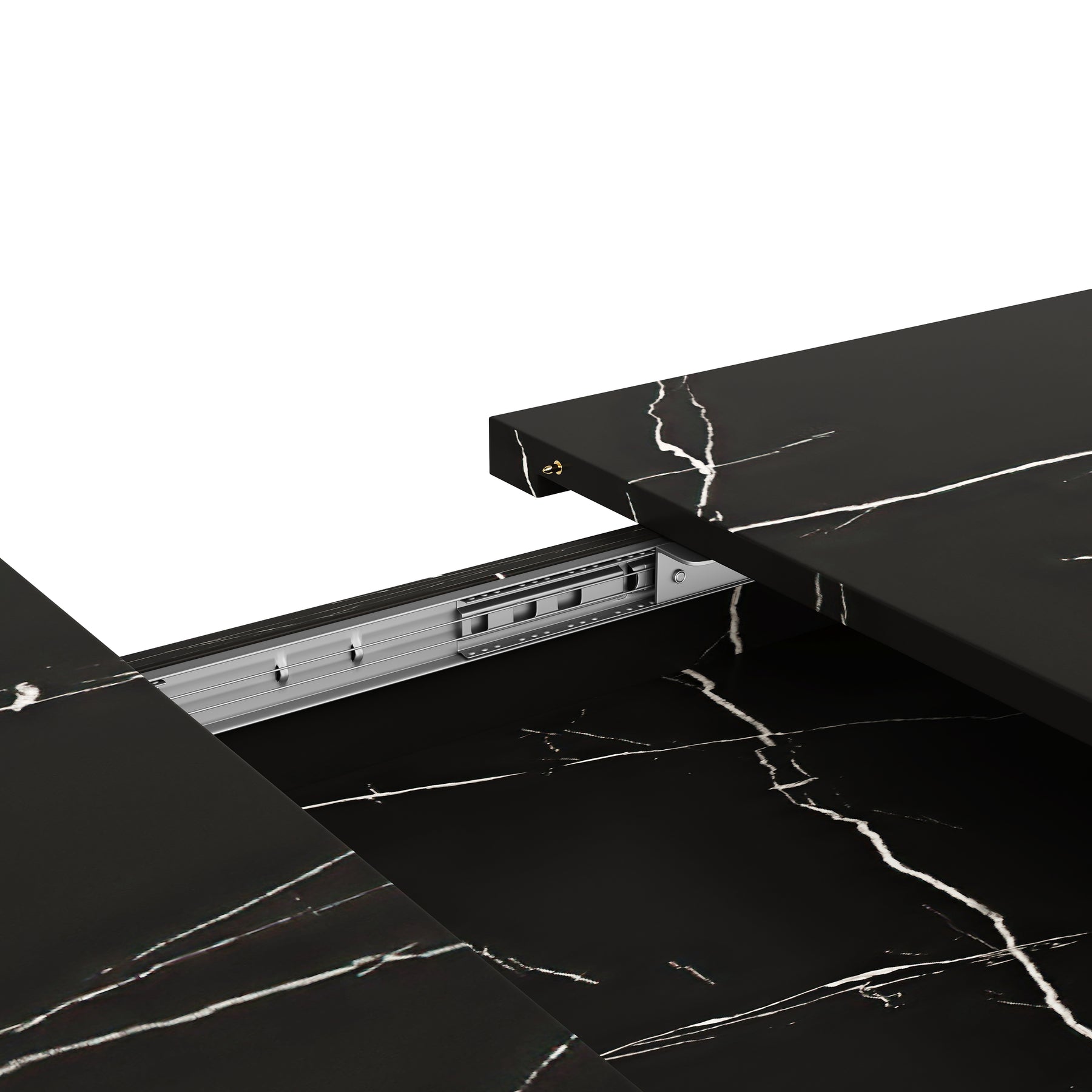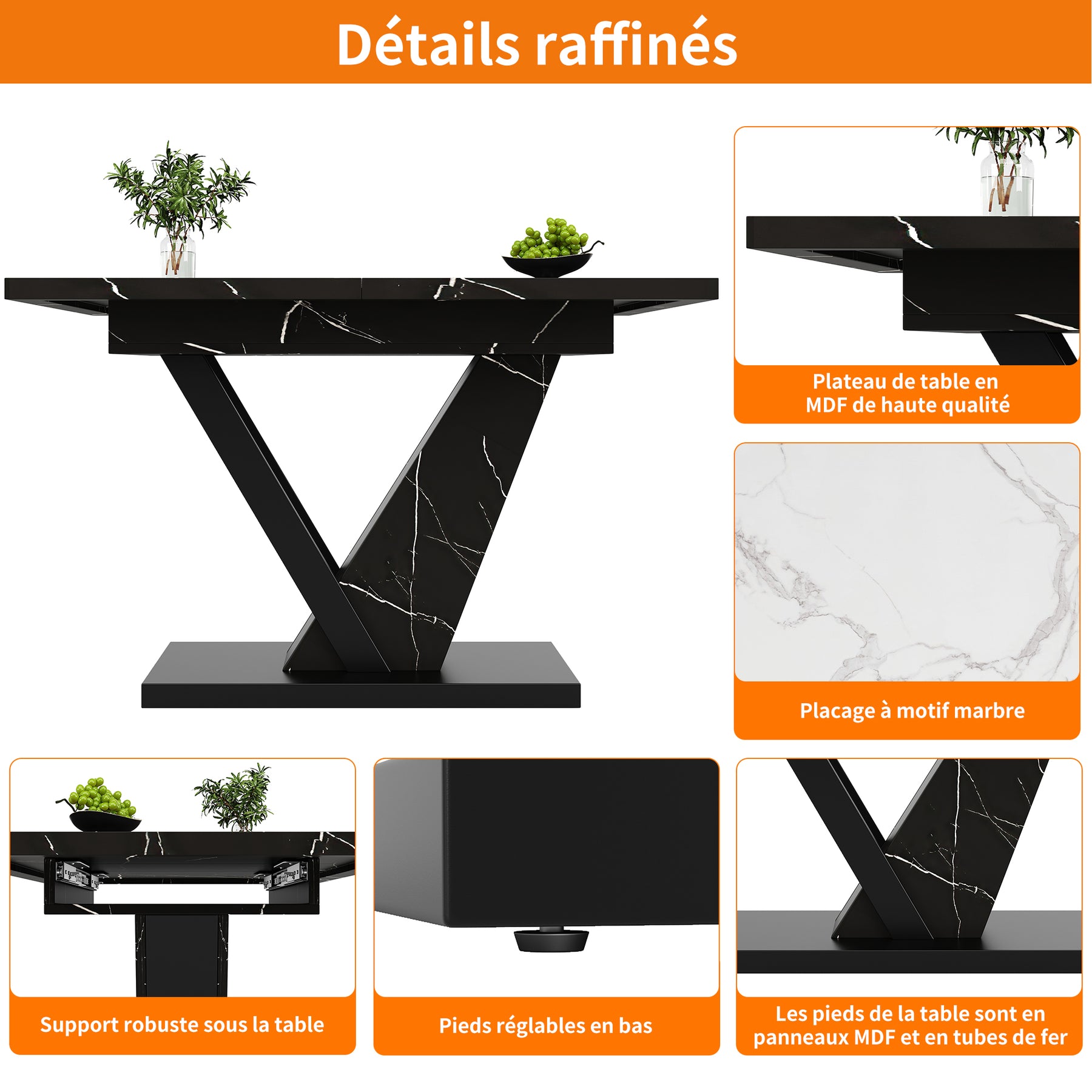 Table de Salle à Manger Extensible Noire Effet Marbre avec Piètement Métallique Renforcé (120-160cm) STRAKUL