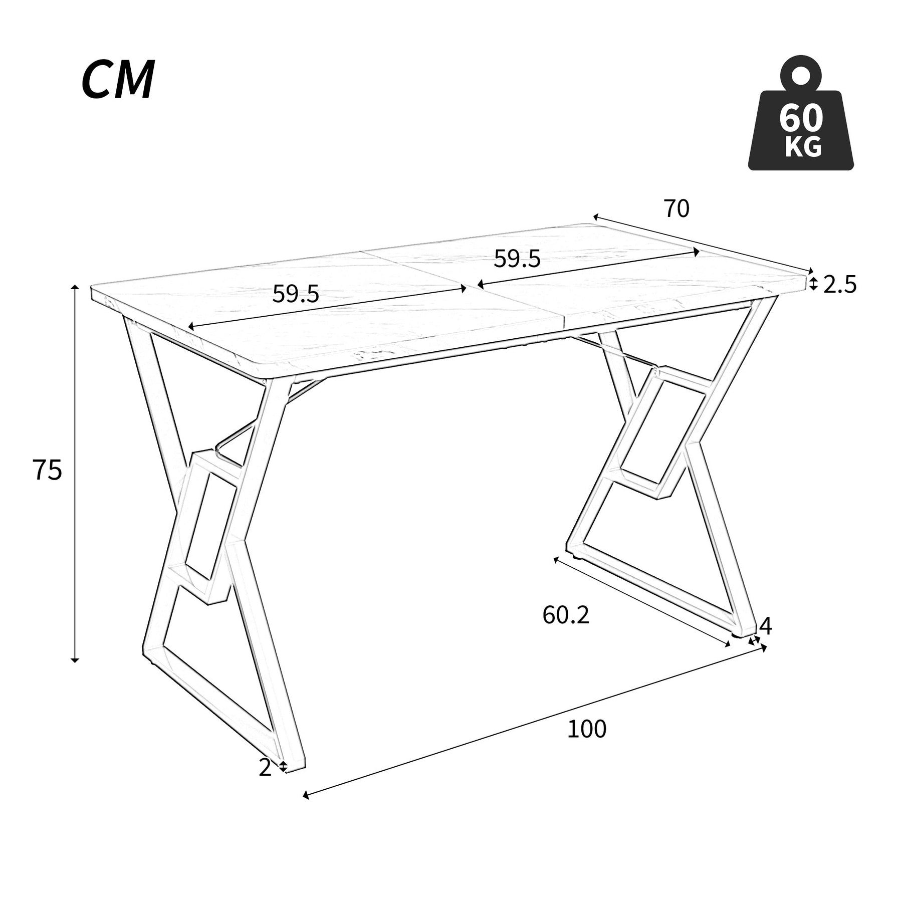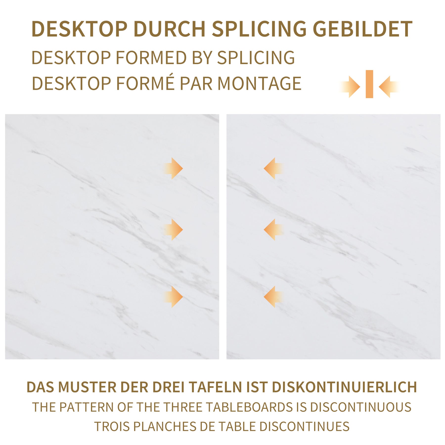 Dimensions Optimisées : Mesurant 119 cm (L) x 70 cm (l) x 75 cm (H), cette table de salle à manger offre des dimensions pratiques et raisonnables pour s'adapter à divers espaces. (Remarque : Le motif de marbre n'est pas continu sur les plateaux assemblés.)