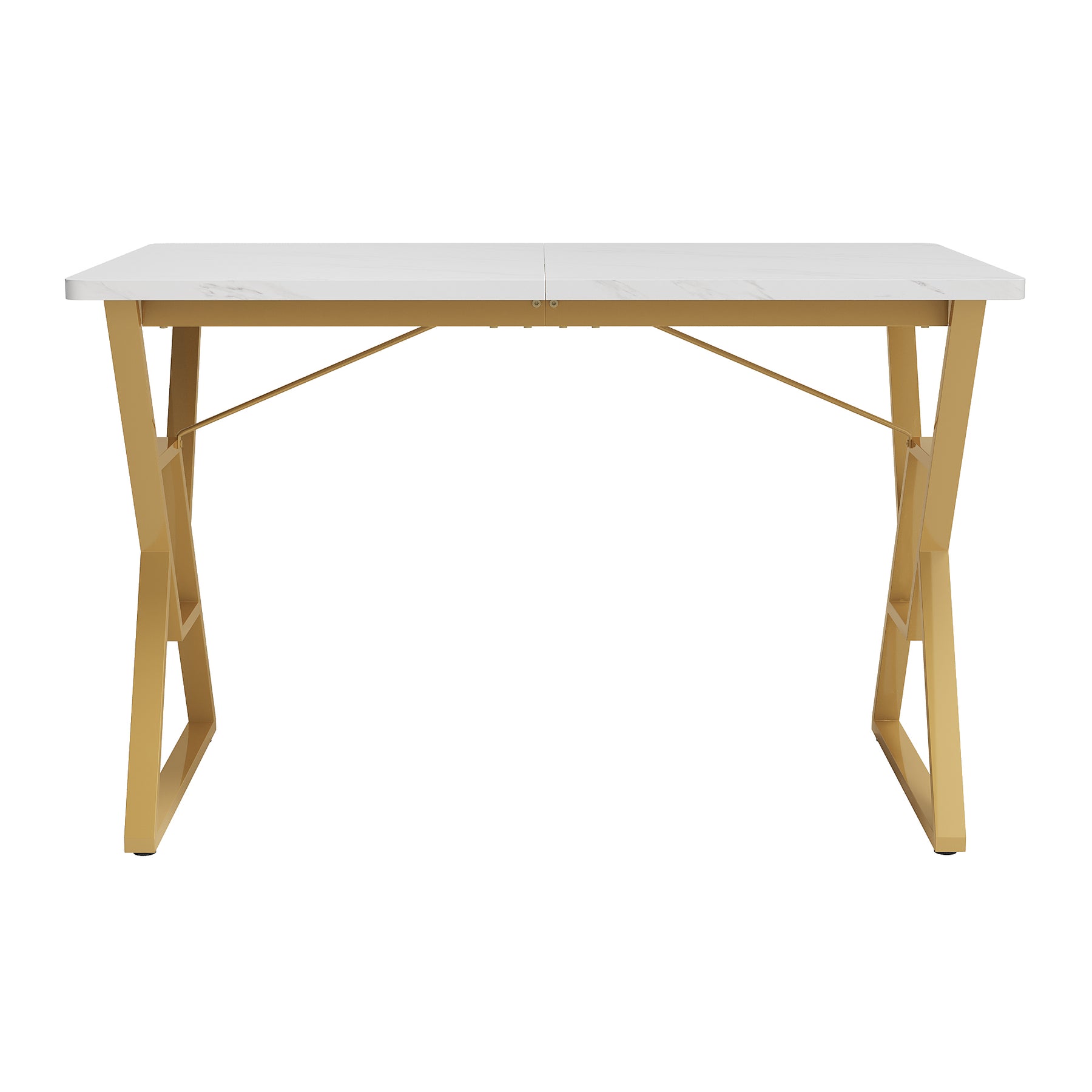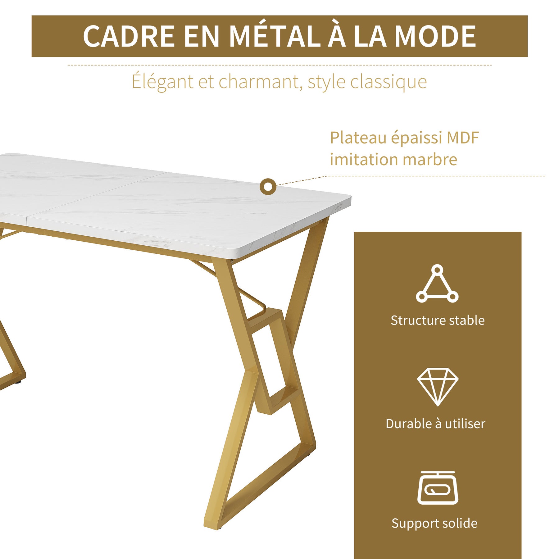 Table de salle à manger Moderne Effet Marbre Blanc et Pieds Dorés ACINS GOLD