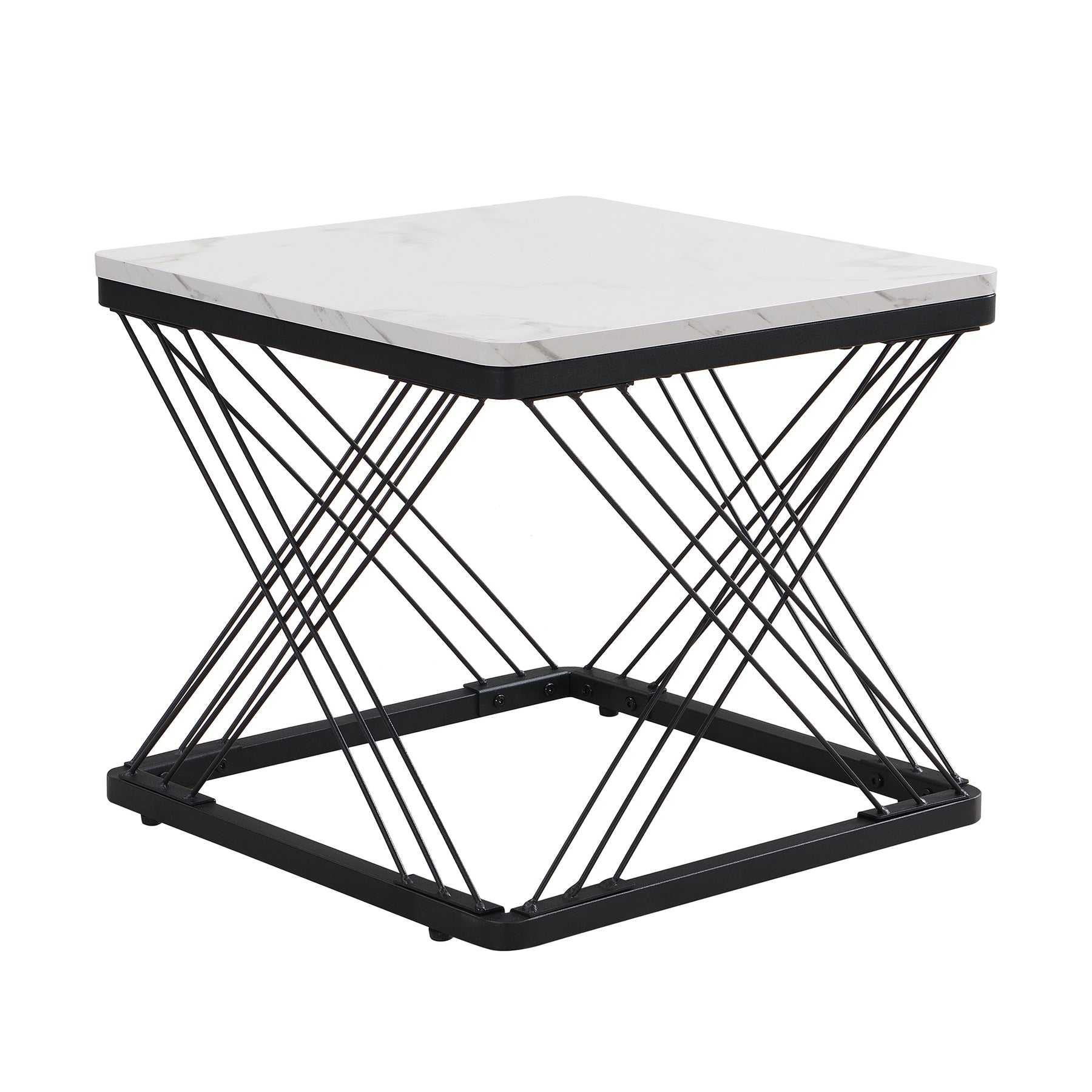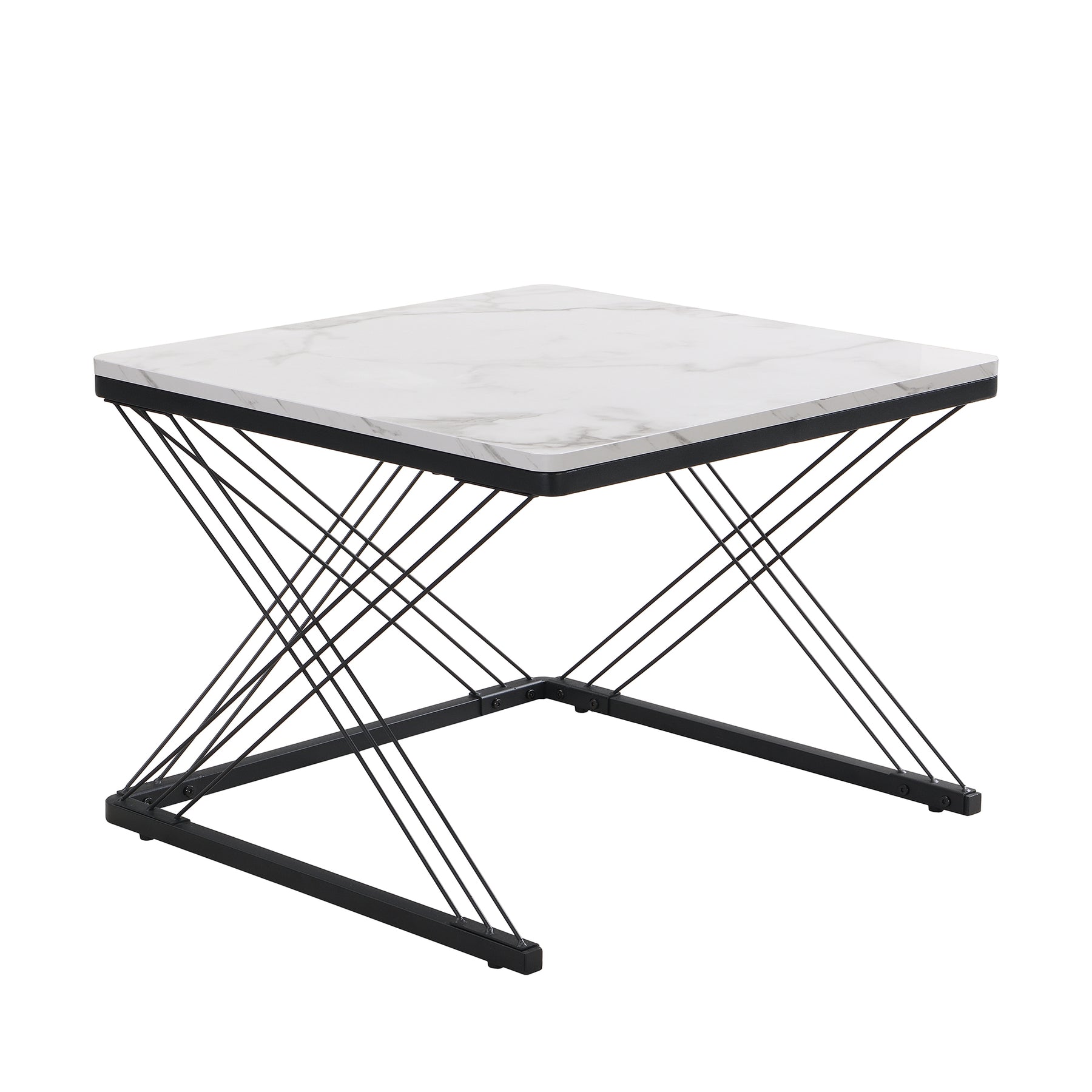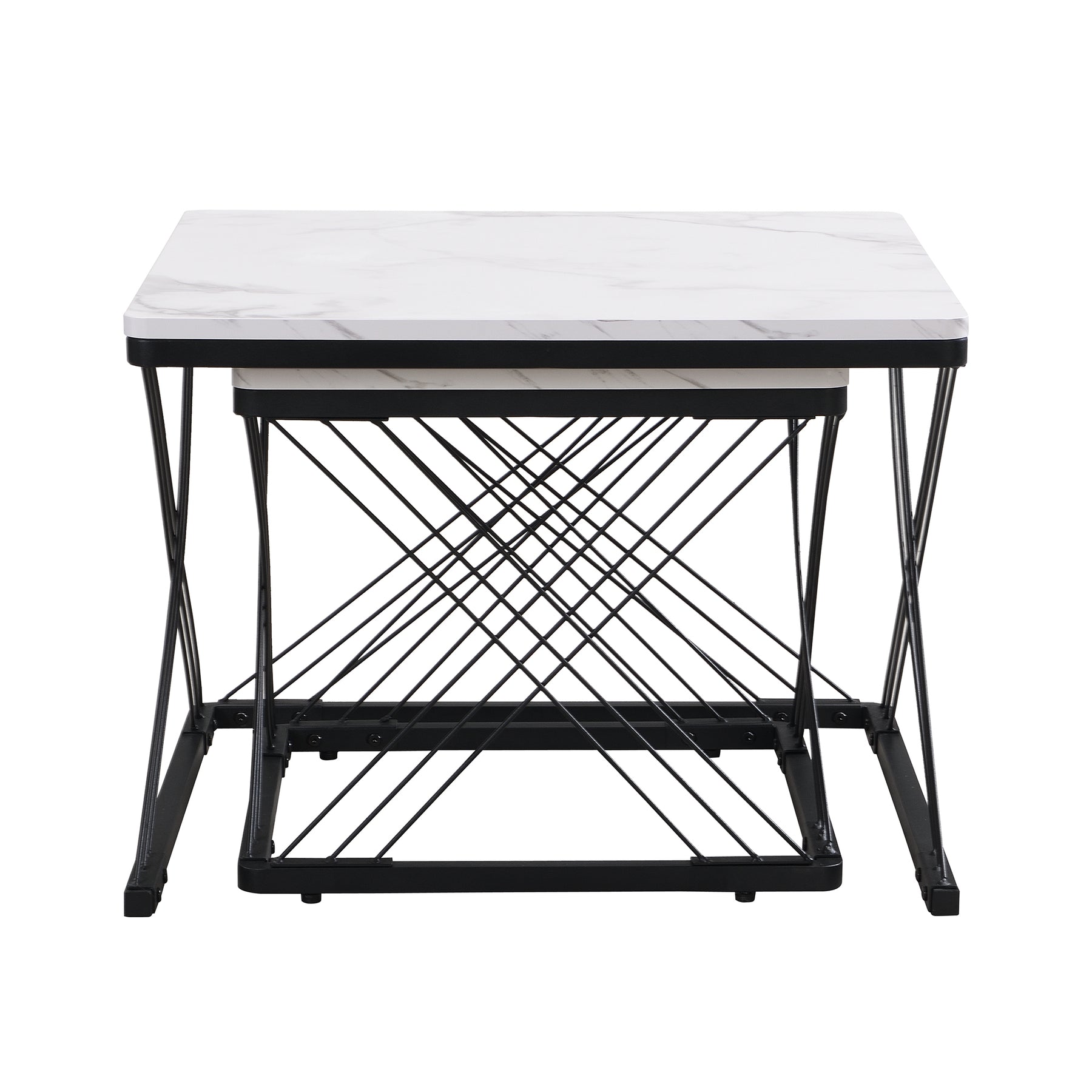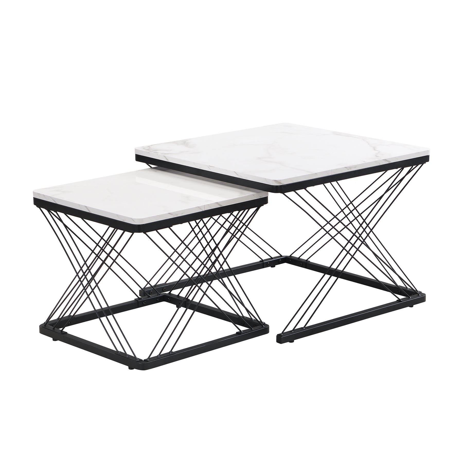 Set de 2 Tables Basses Carrées Effet Marbre Blanc et Noir - Design Moderne avec Pieds Réglables AVEDS