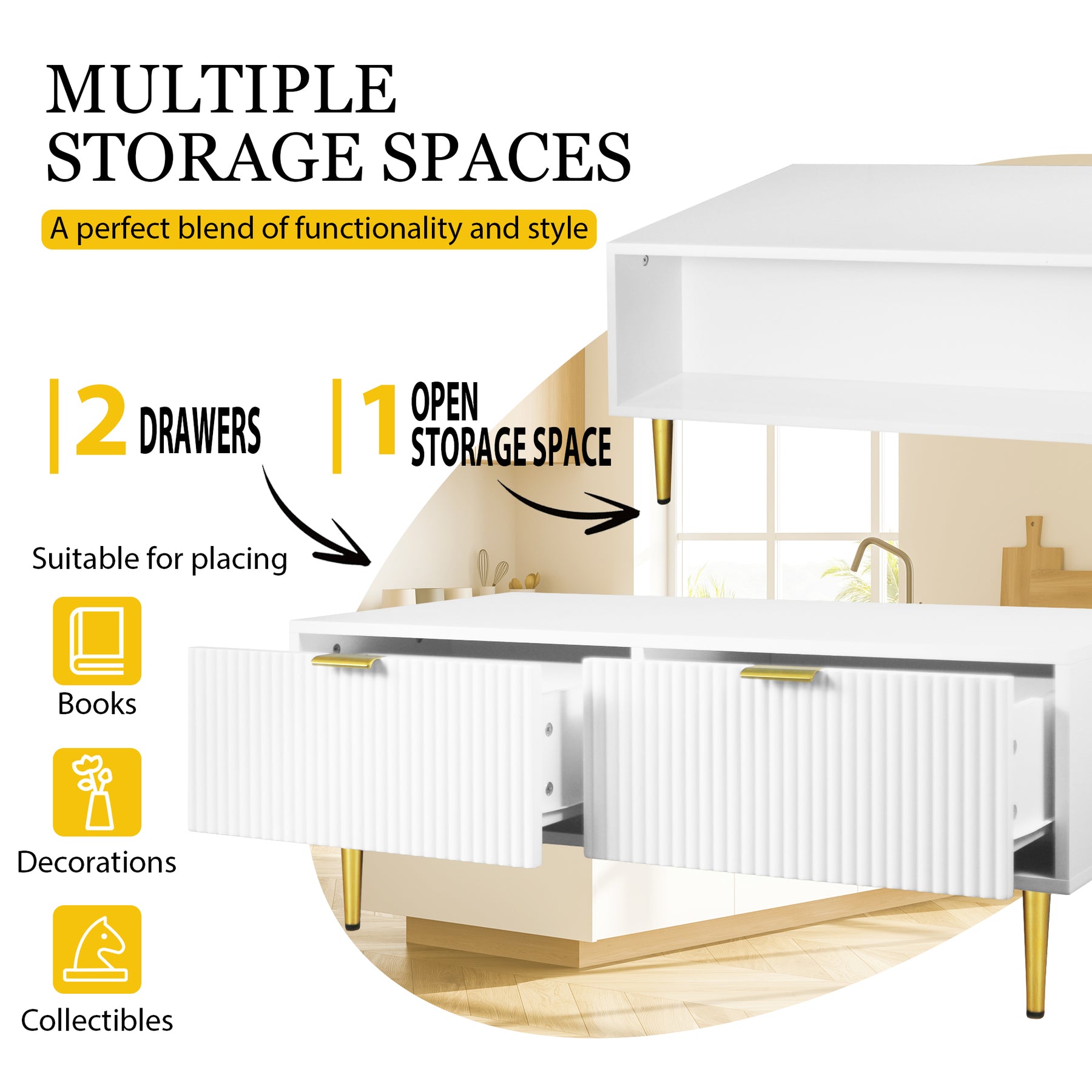 Design Élégant et Moderne : Cette table basse arbore un design contemporain en blanc avec des accents dorés, apportant une touche de luxe et une esthétique raffinée à votre salon.