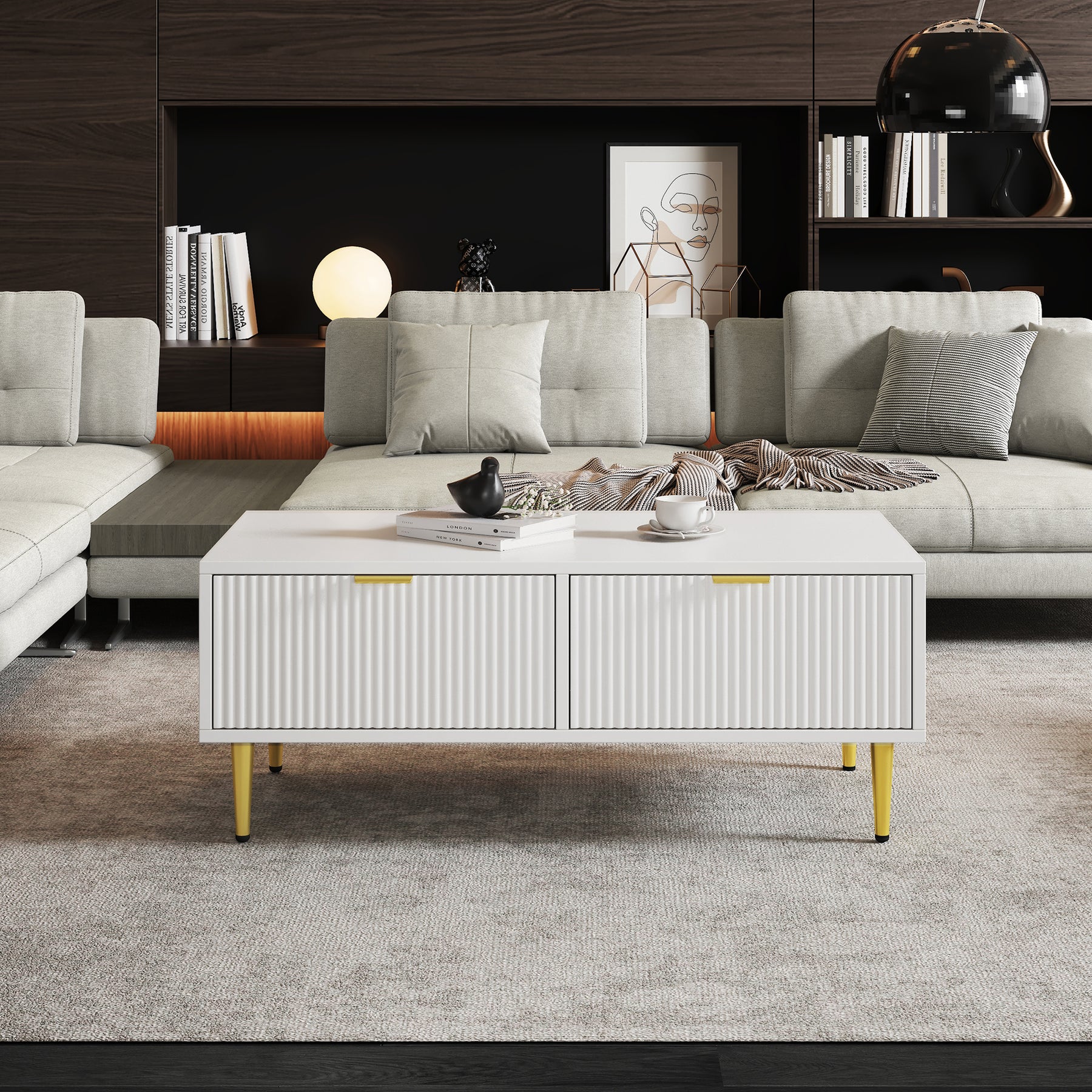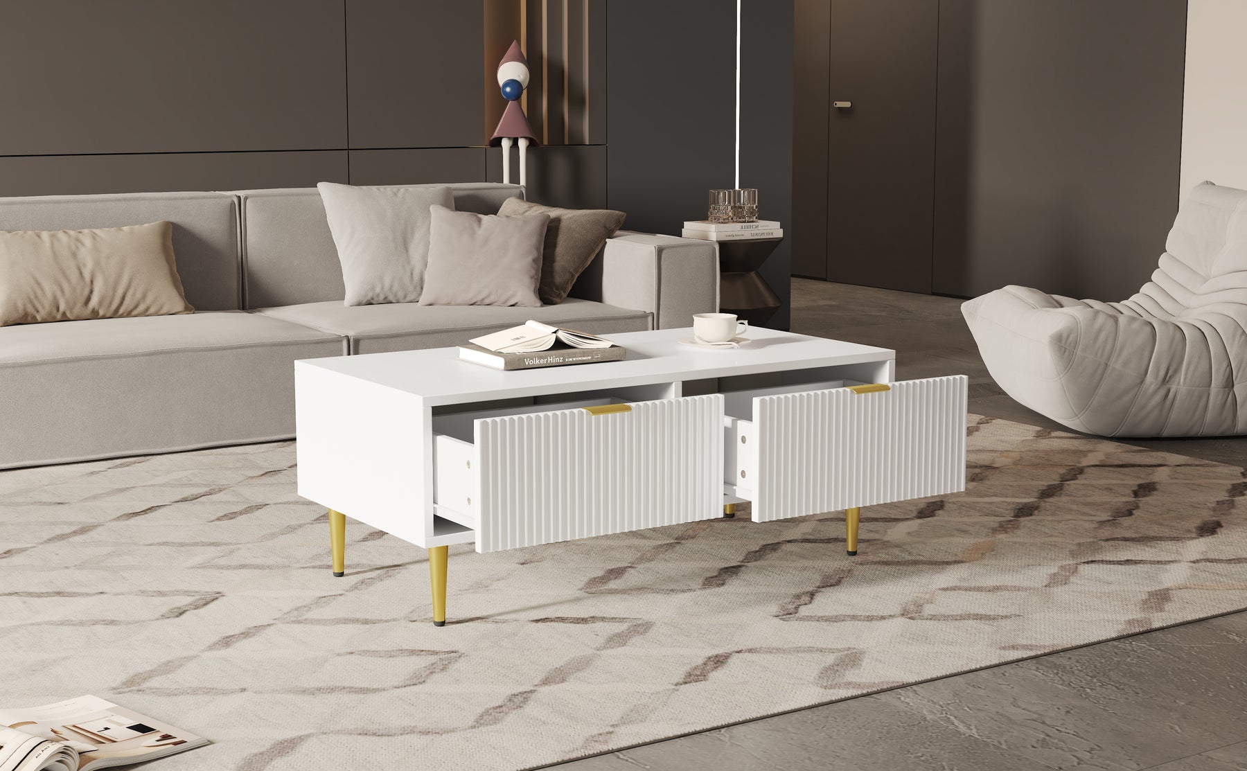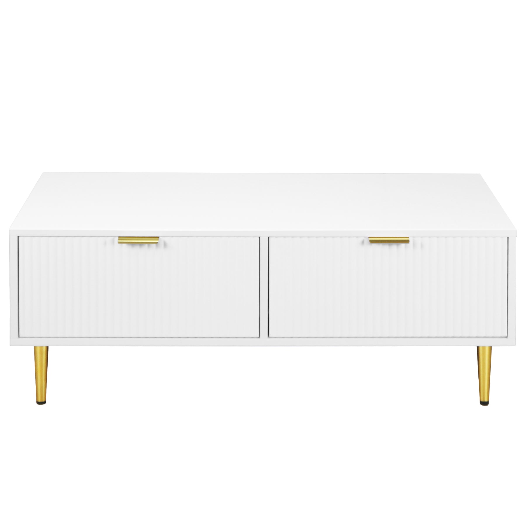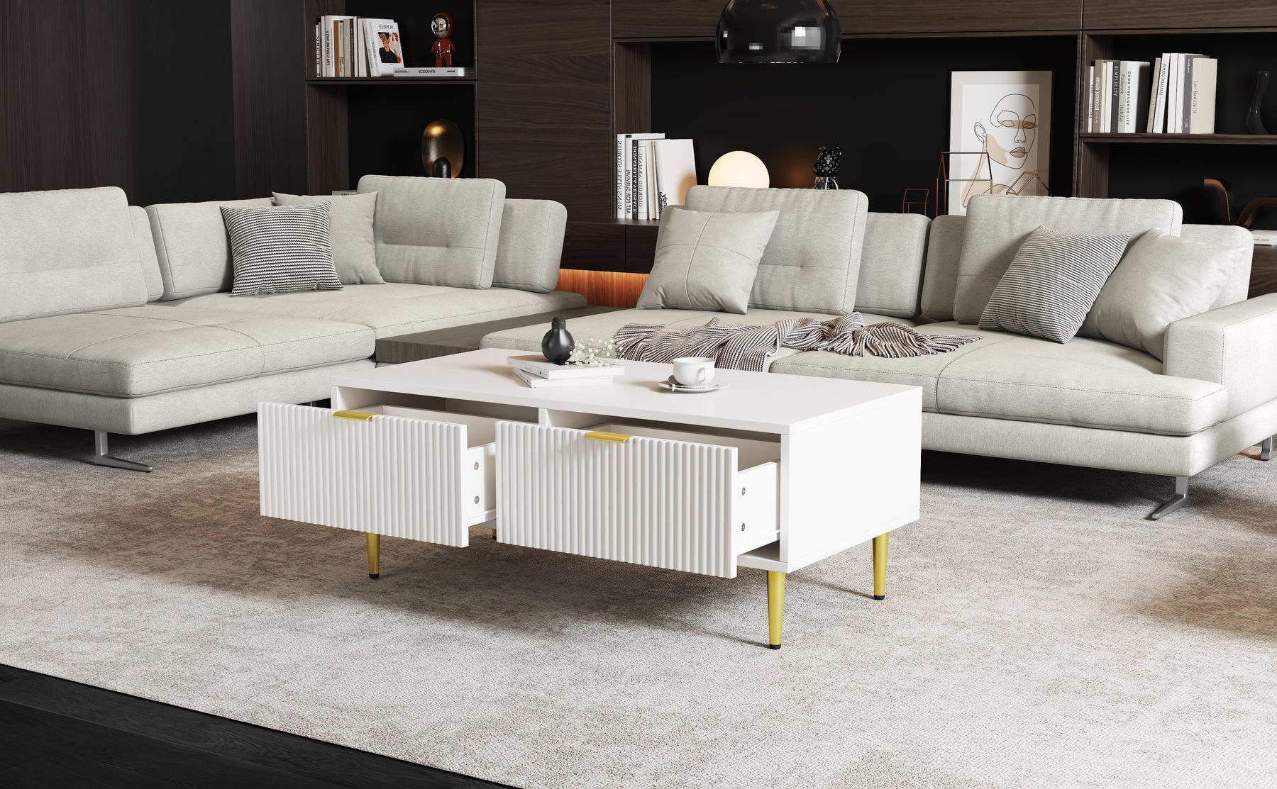 Table Basse Moderne Blanche avec Rangement - Pieds et Poignées Dorés STRUX COFFEE TABLE WHITE