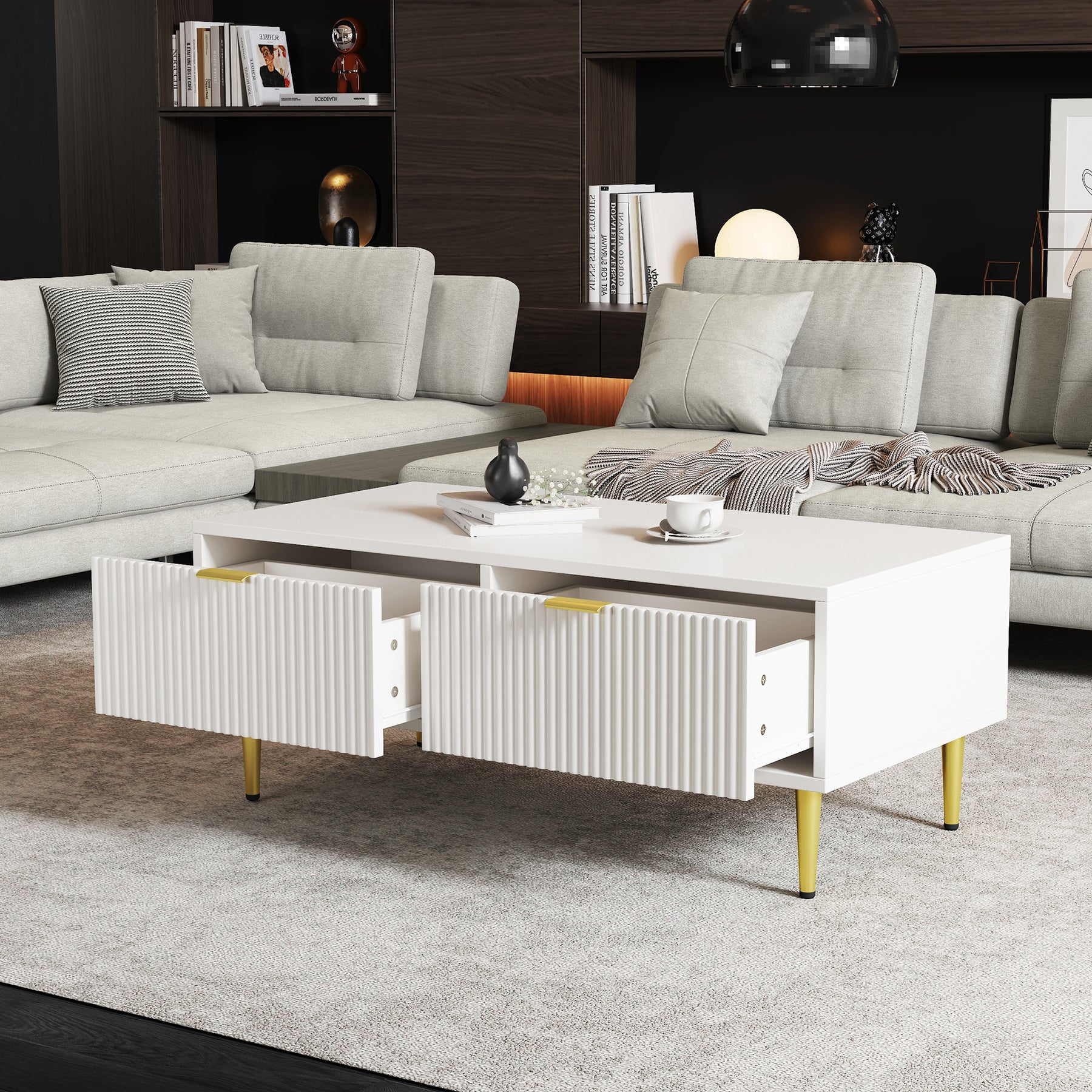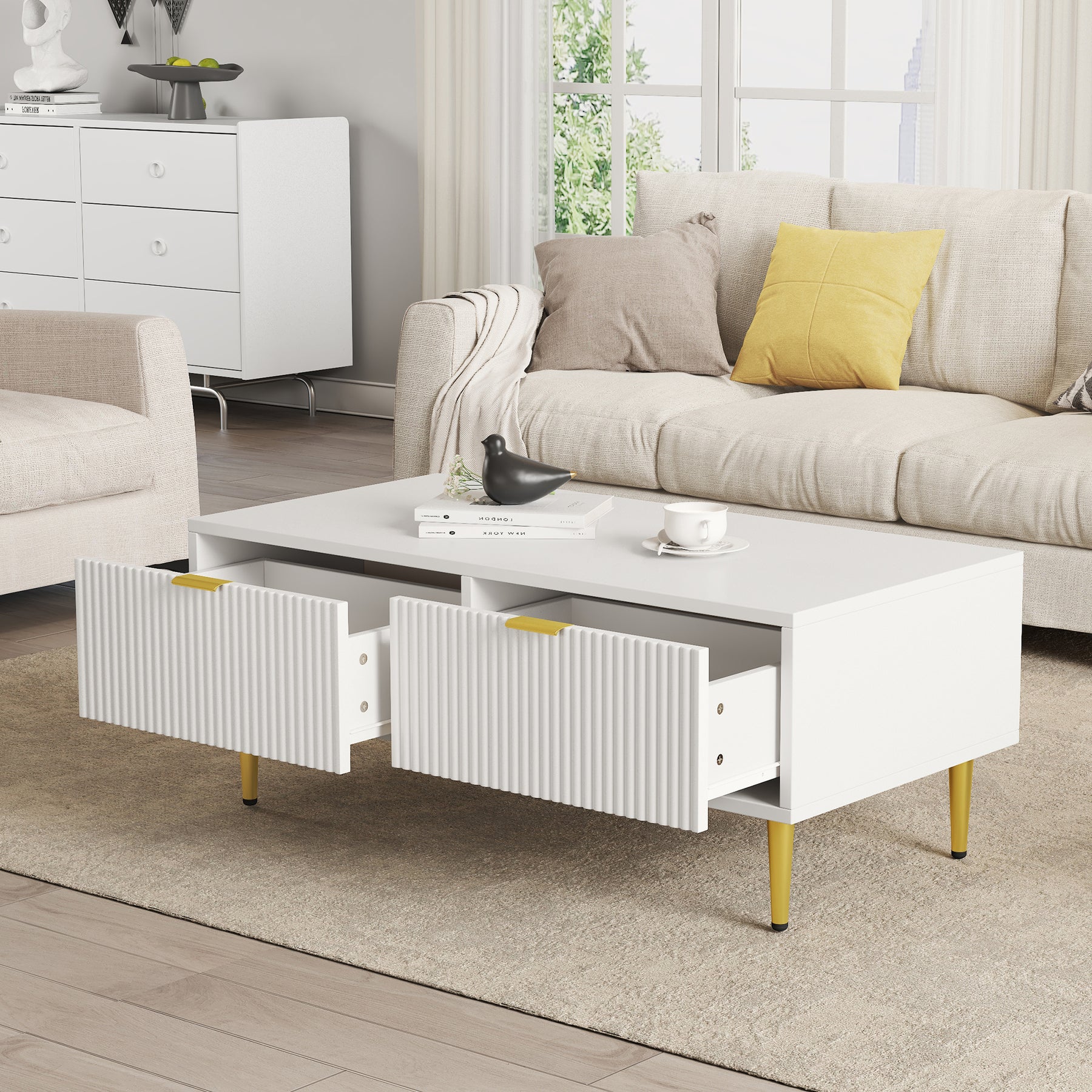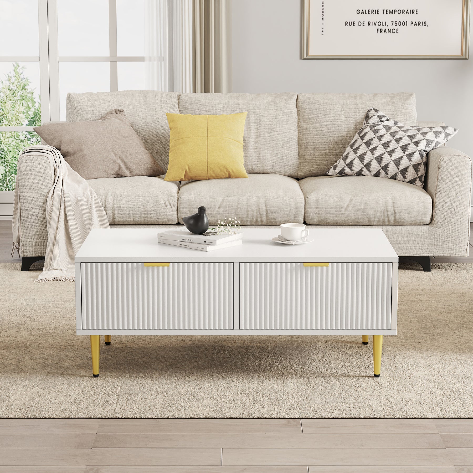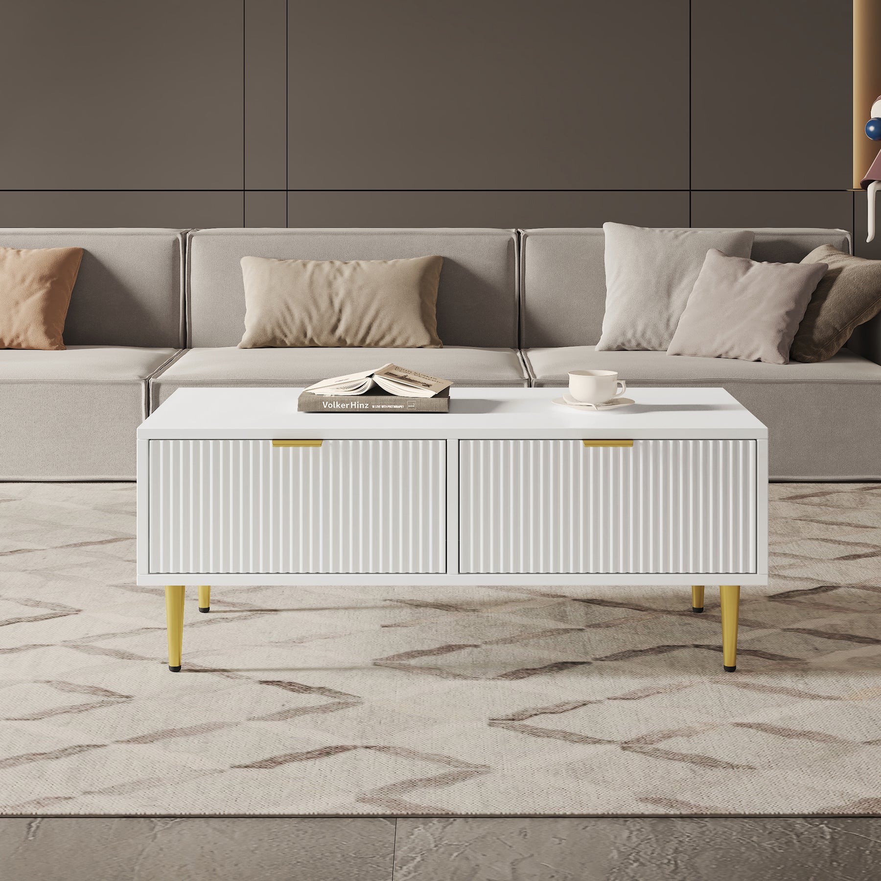 Table Basse Moderne Blanche avec Rangement - Pieds et Poignées Dorés STRUX COFFEE TABLE WHITE