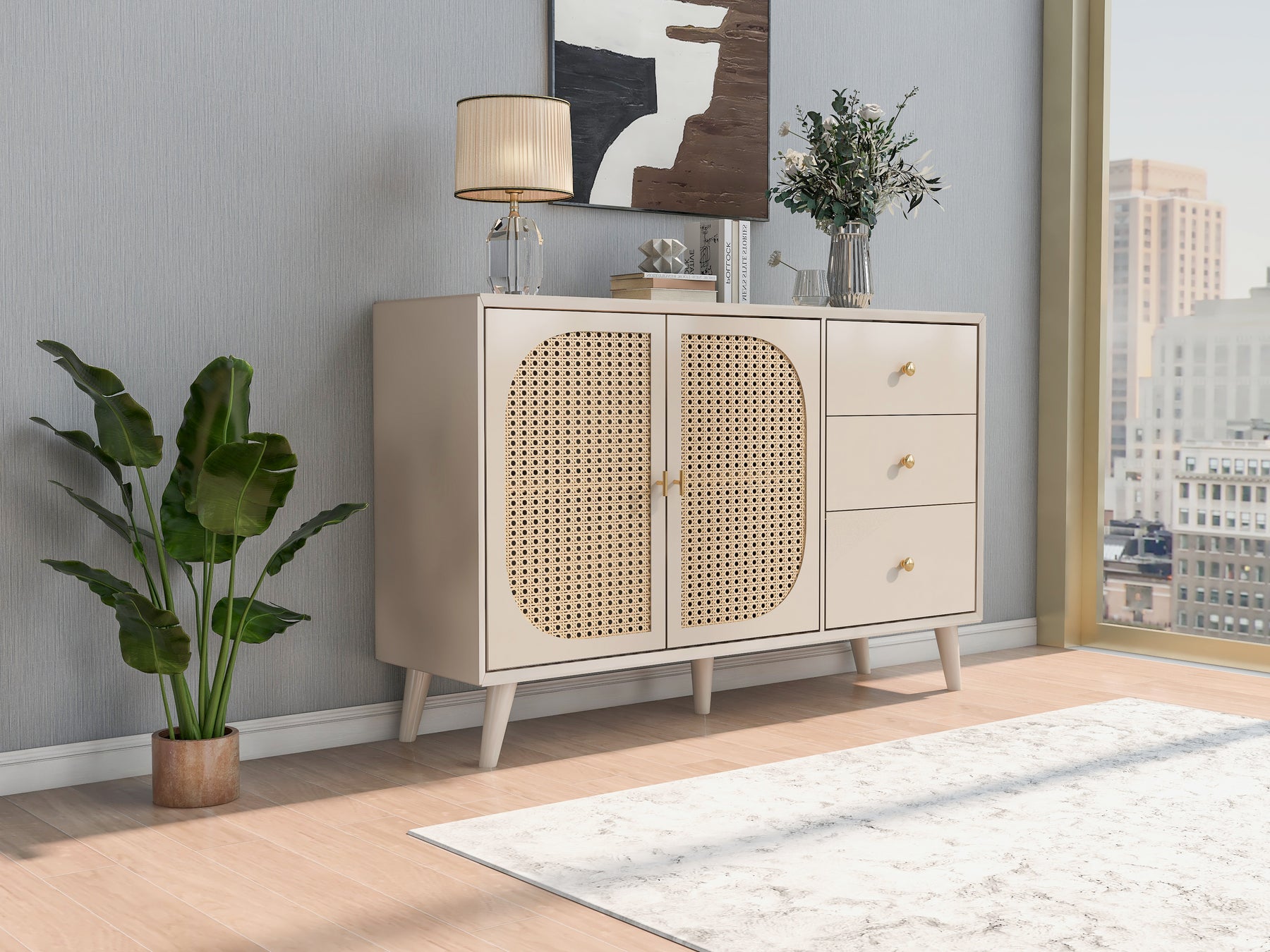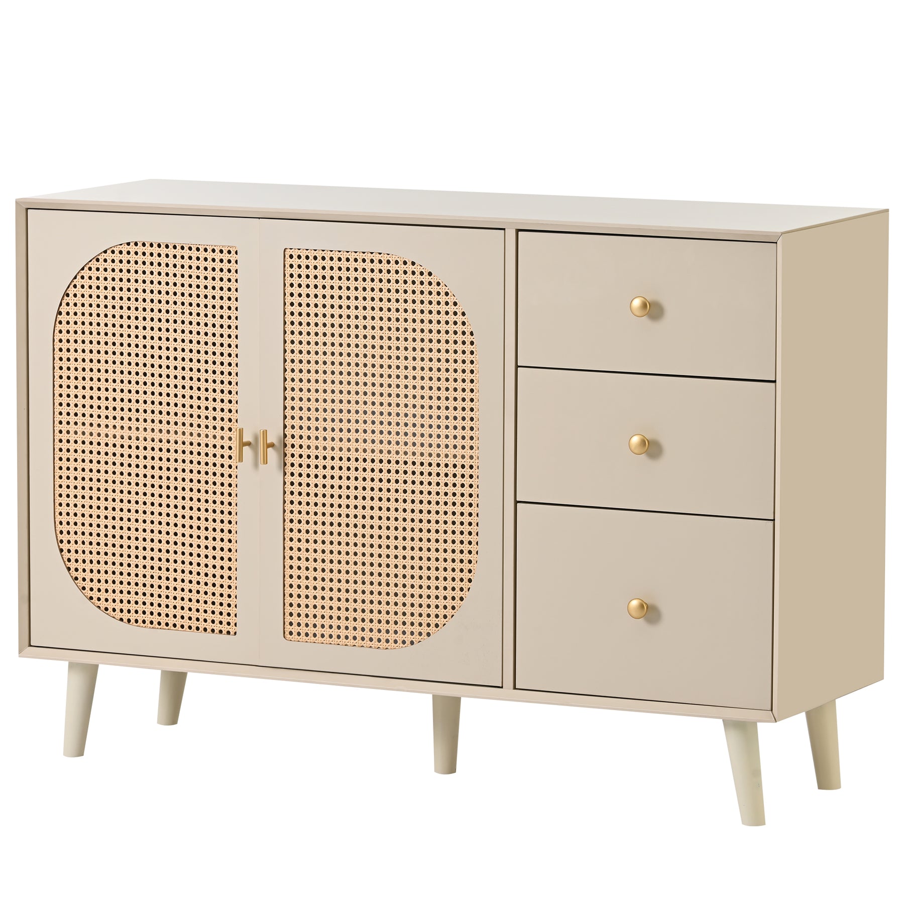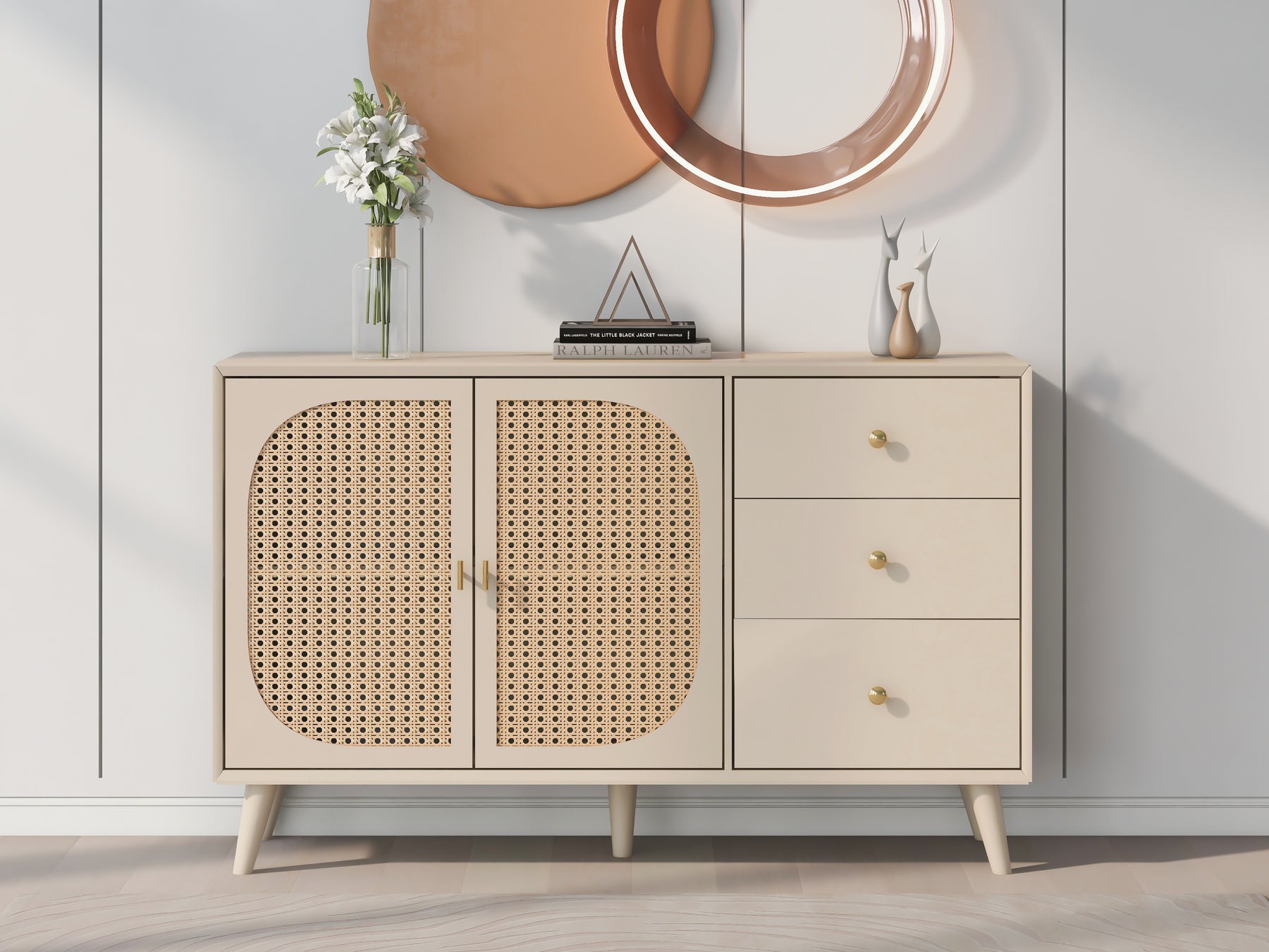 Buffet Crème Moderne avec Portes "Push-to-Open" et Tiroirs – Design en Rotin PE SHAIZON