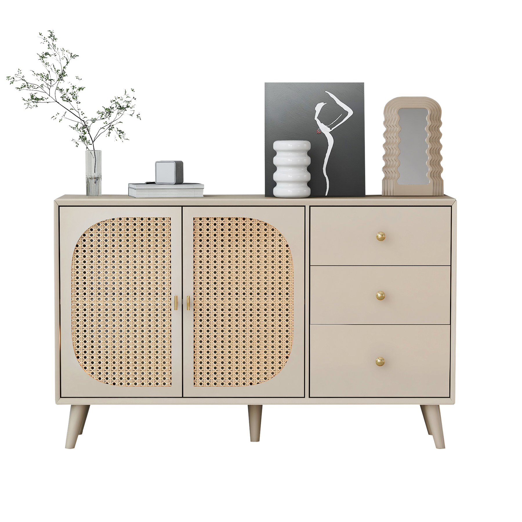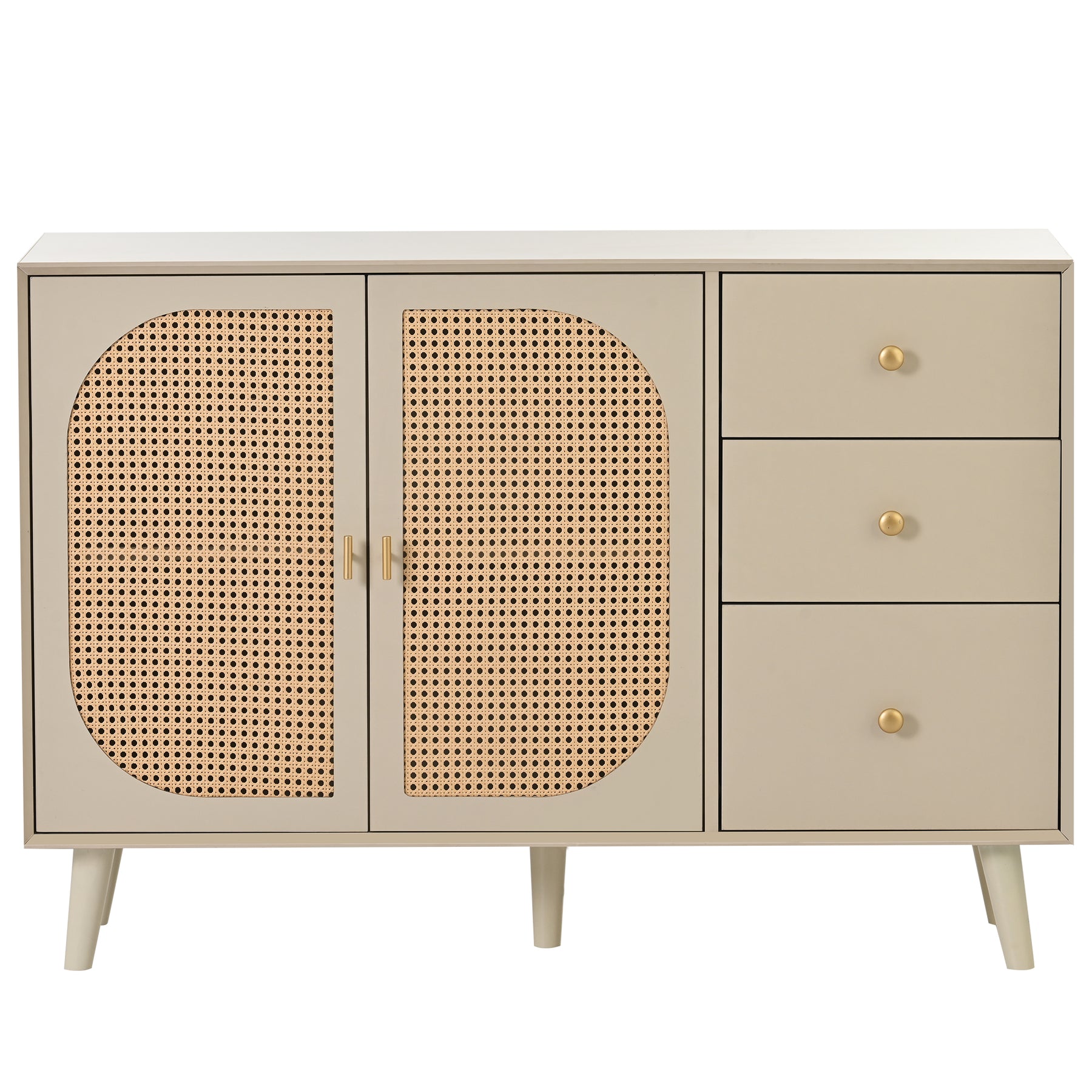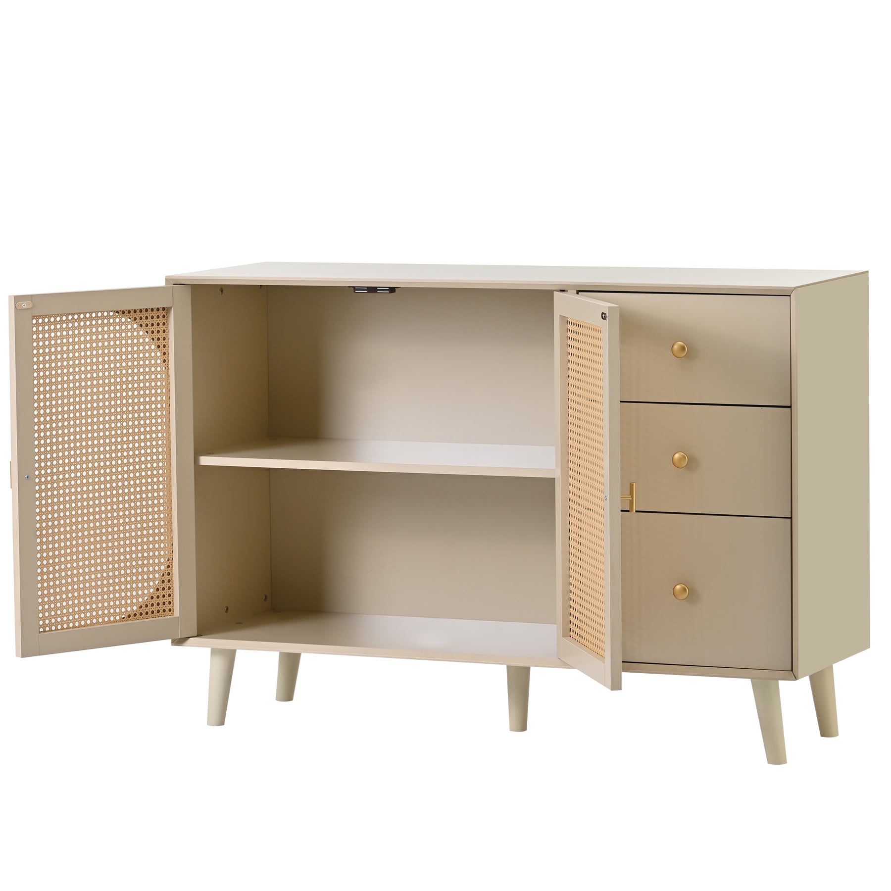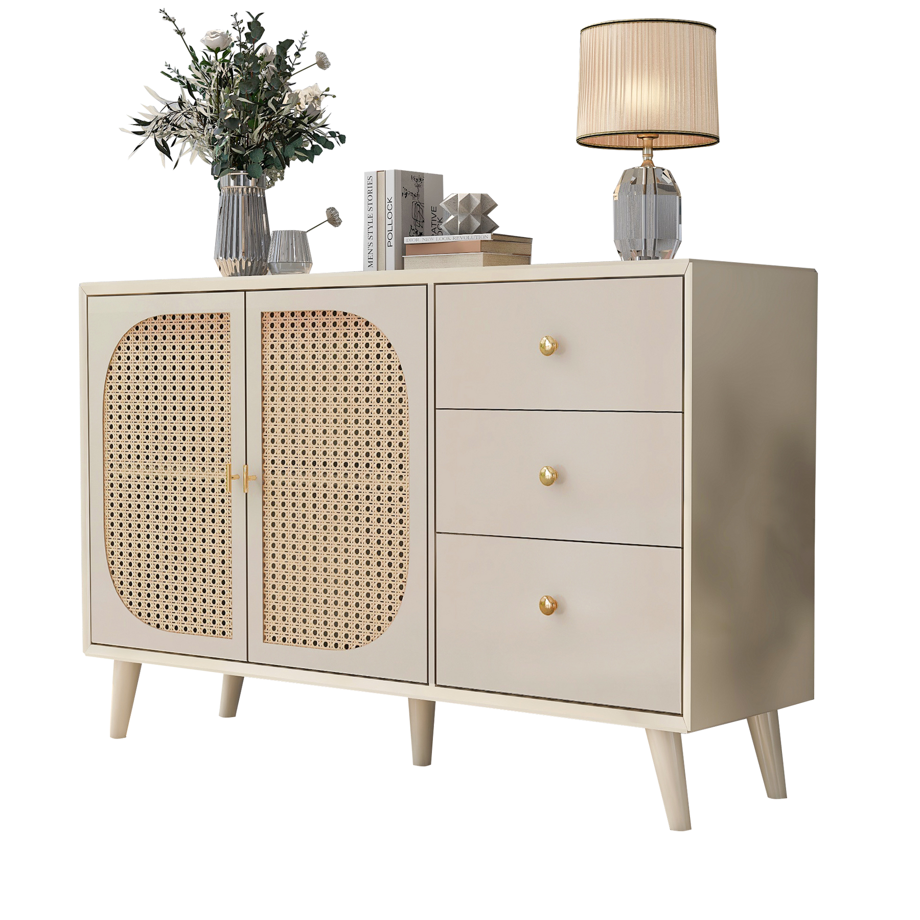 Buffet Crème Moderne avec Portes "Push-to-Open" et Tiroirs – Design en Rotin PE SHAIZON