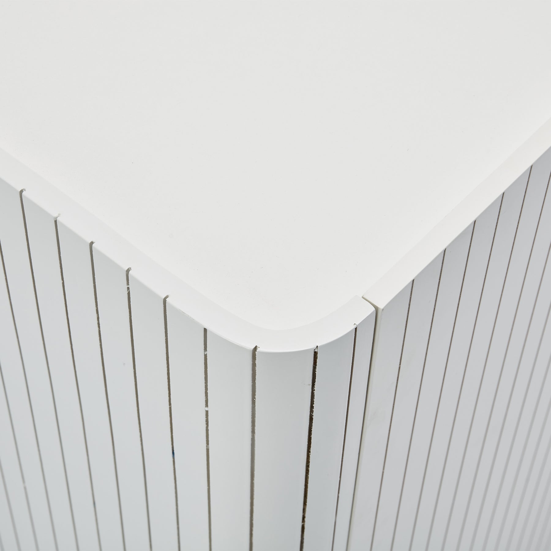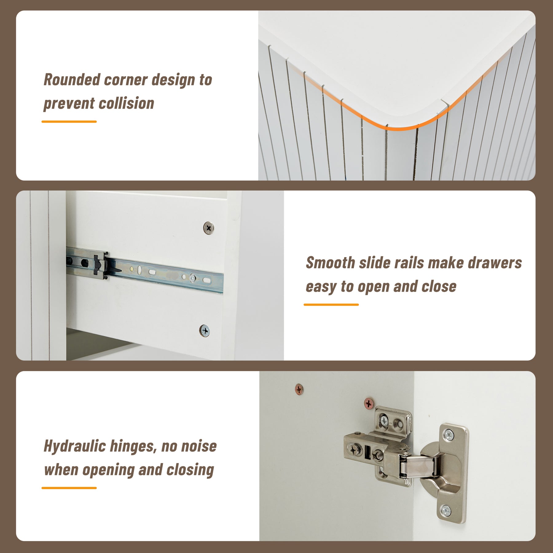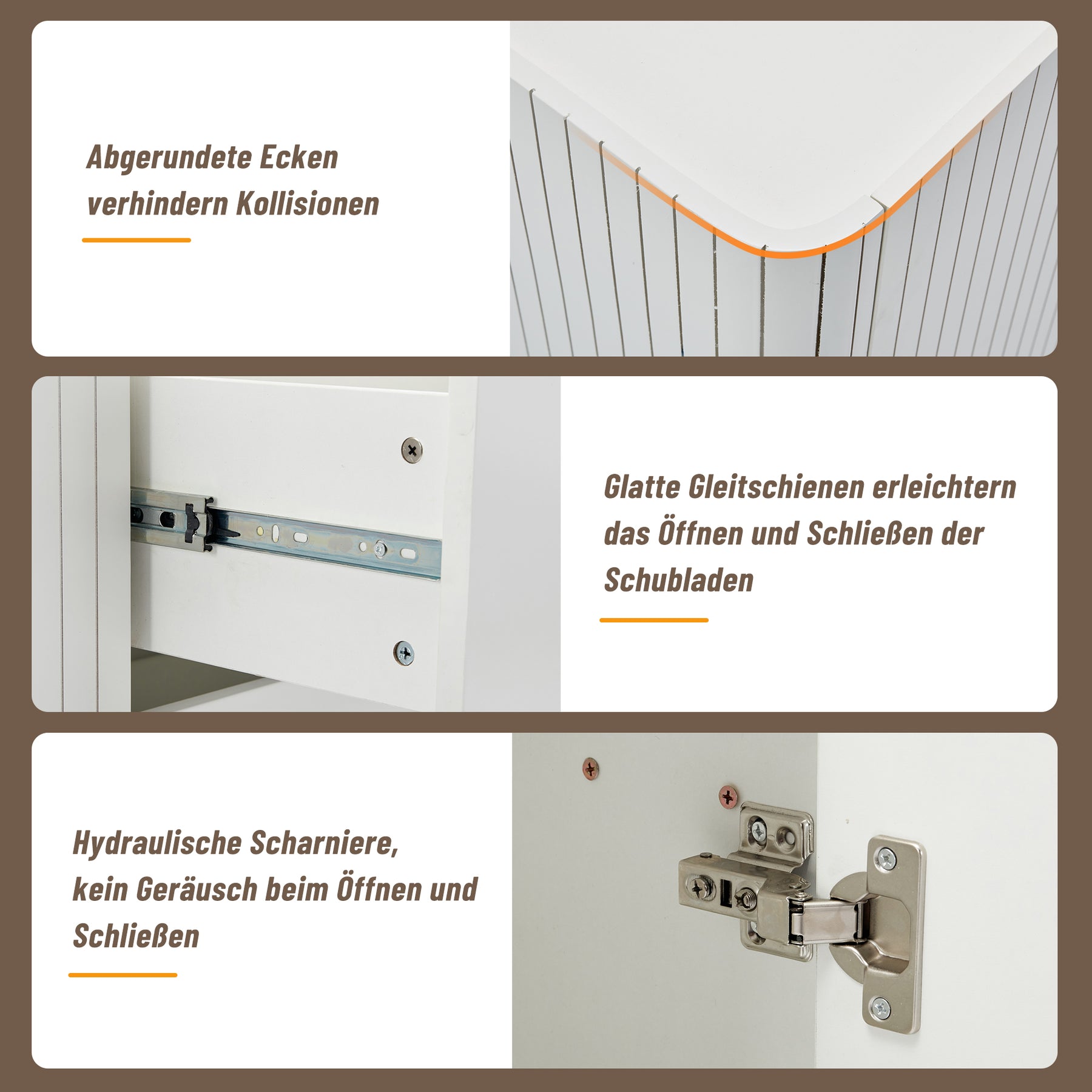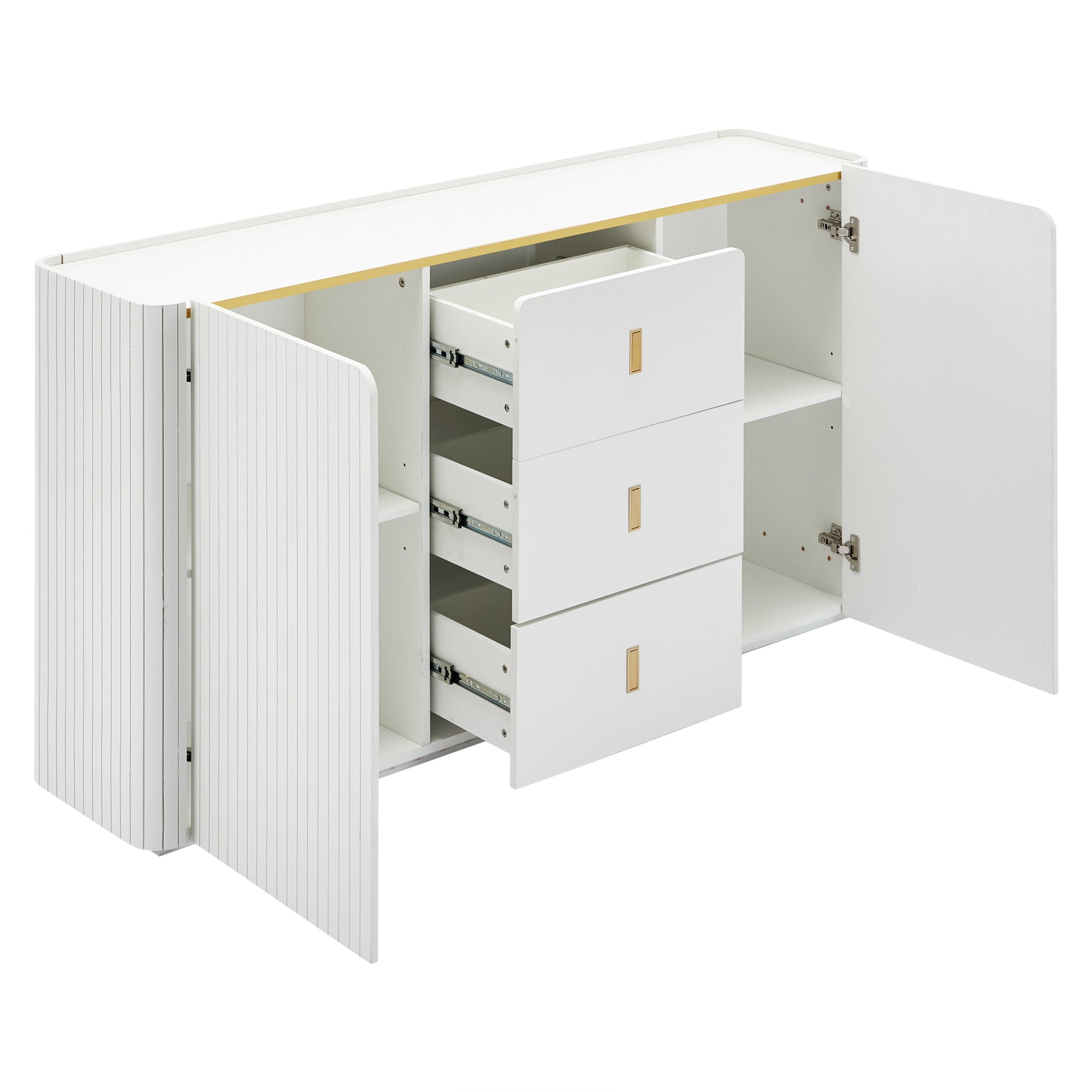 Buffet LED Multifonctionnel Blanc avec 20 Couleurs, Portes Striées et 3 Tiroirs KRAUDREL