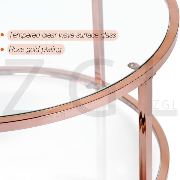 Coffee table: 80 * 80 * 42cm tempered clear wave surface glass 760 * 5mm. Pipe diameter: 20 * 20 * 1.20MM iron pipe gold rose gold plating. One pack. 200lbs carton. E-commerce drop box requirements and e-commerce shipping requirements |