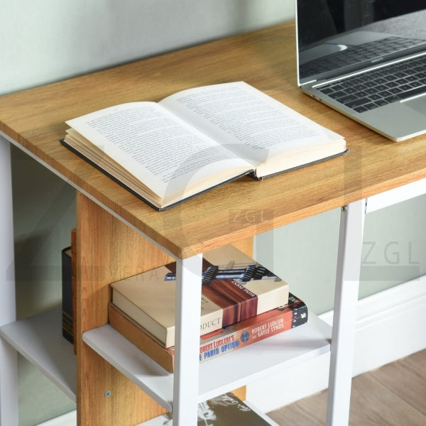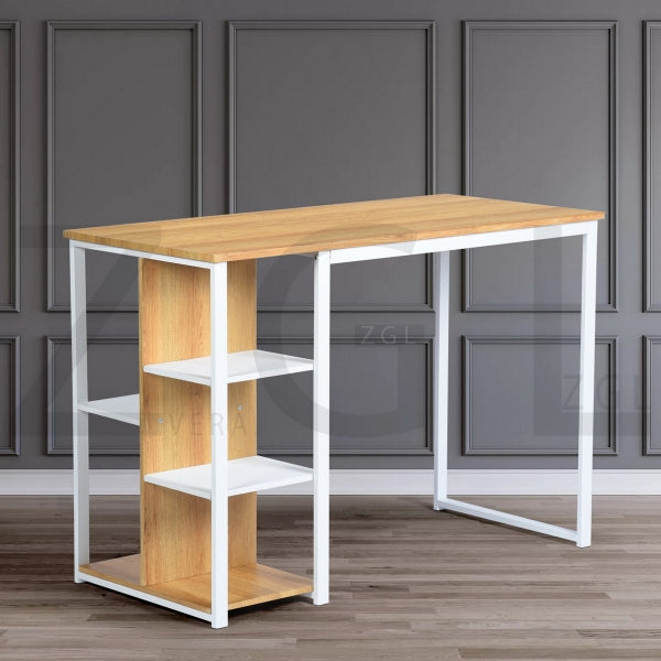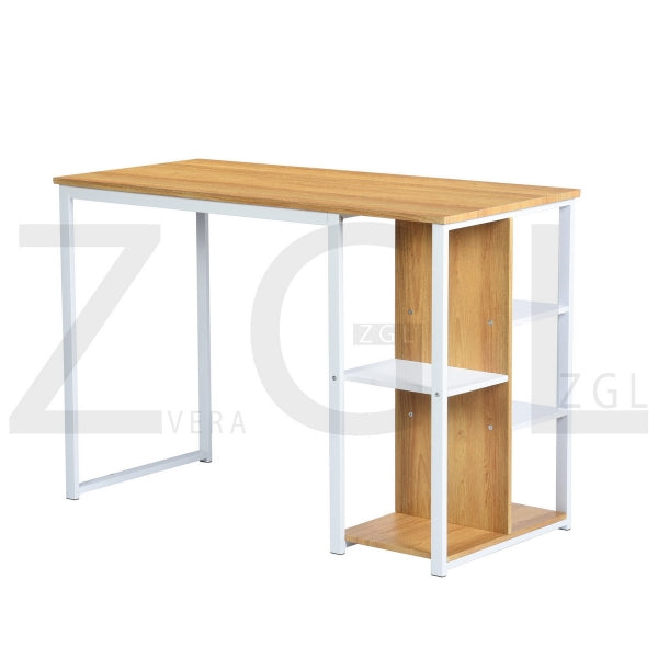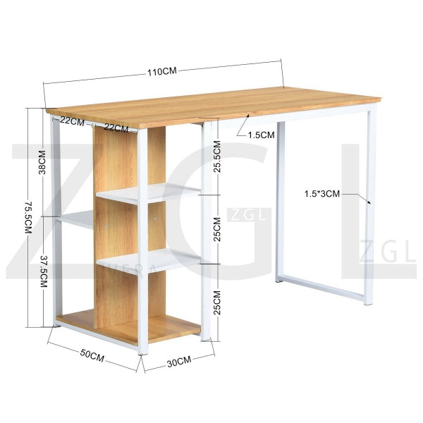 Computer desk; product size: 1100x500x750mm. Pipe diameter (including spraying) 15 * 30 * 1.0mm. Lock plate (including spraying): 25 * 20 * 2mm matte white spraying. Board size E1 MDF table top board thickness 15mm. The remaining boards are 12mm thick. The color of the PVC wood grain is like the picture. 200 lb brown carton. 3A drop box and e-commerce shipping requirements.