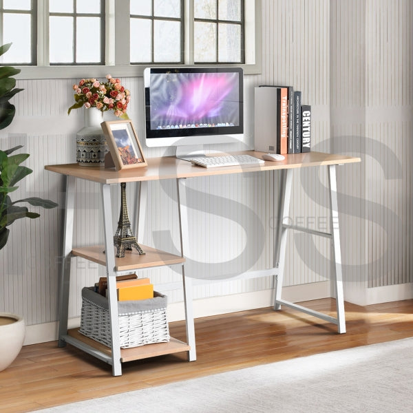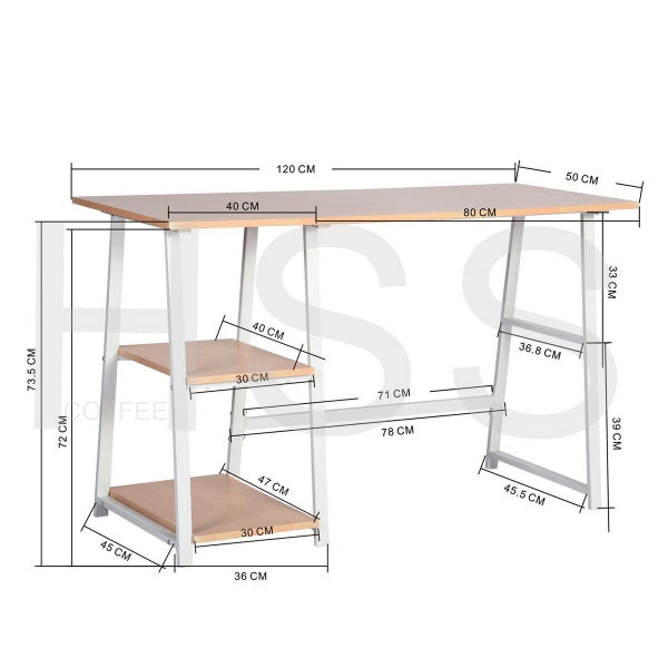 Corner computer desk, product size: 120*50*73cm, PB OAK PVC finished, 15*15*0.6mm WHITE metal tube with powder coated finished.1pc/1ctn.200PSI Brown Carton Box With Black Printing; Mailbox;