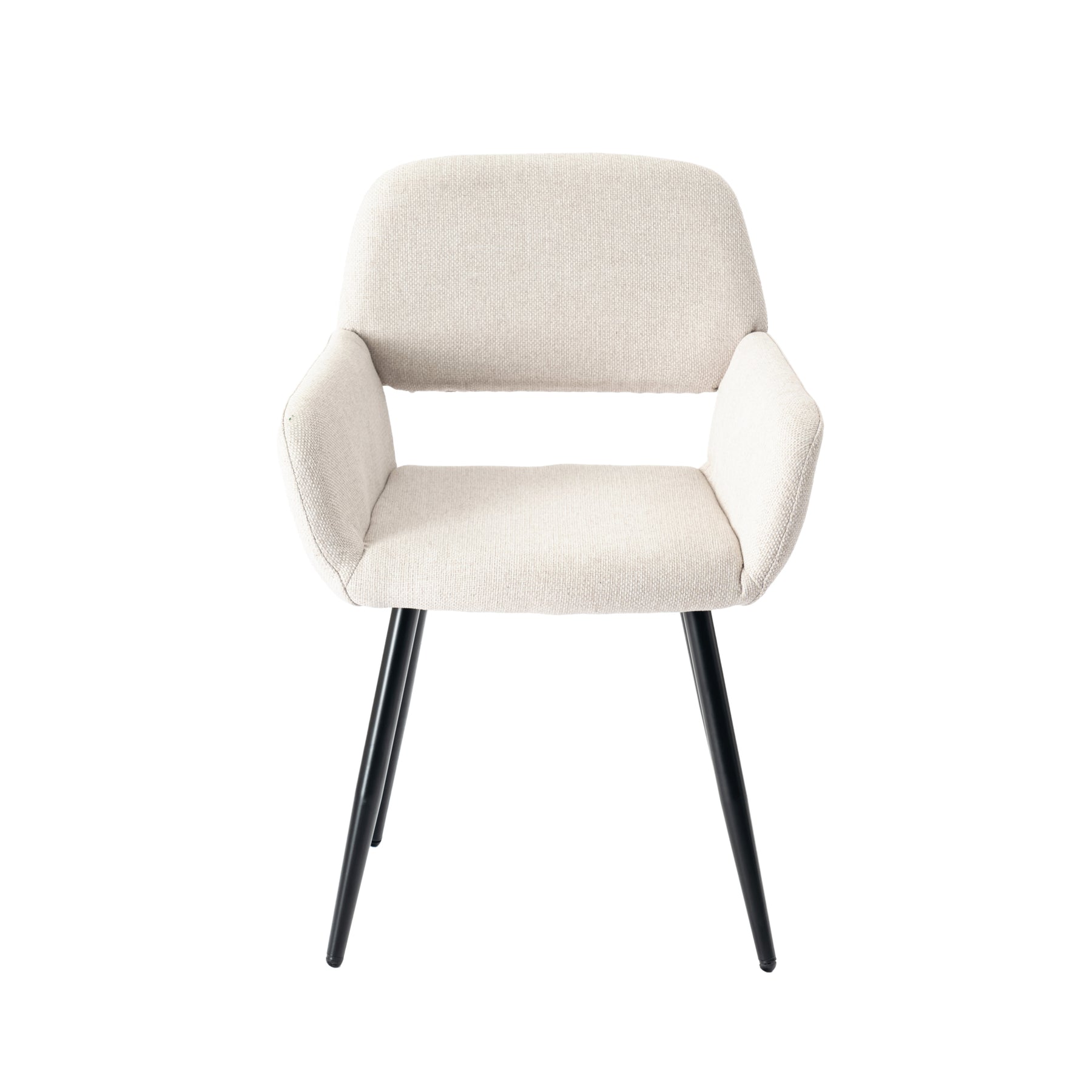 Give your home an atmosphere of style, glamour, and class with our set of MAYFAIR BEIGE chairs. A set of 2 dining chairs that combine a soft fabric upholstered seat with sturdy, durable black metal legs that can support up to 100 kg. These chairs feature armrests, a wide seat and backrest, and are completely ergonomic and comfortable. Perfect for dining rooms, kitchens, or even living rooms.