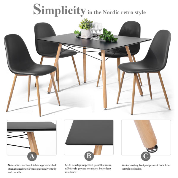 Dining Table 15MM MDF With Black Painting, Wooden leg, SIZE: 120*80*H71cm; MEAS: 128*83*10.5cm;