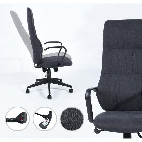 Fabric F118, Black Coating Armrest, Butterfly Mechanism, 100MM Black Coating Class 3 Gaslift, 320MM Nylon Base, Nylon Castor, 1PC/CTN