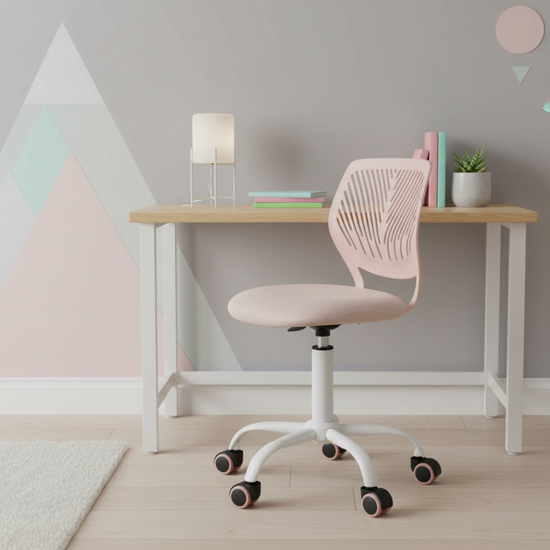 Pastel Pink Children's Desk Chair with Casters CARNATION MALMONEW PINK