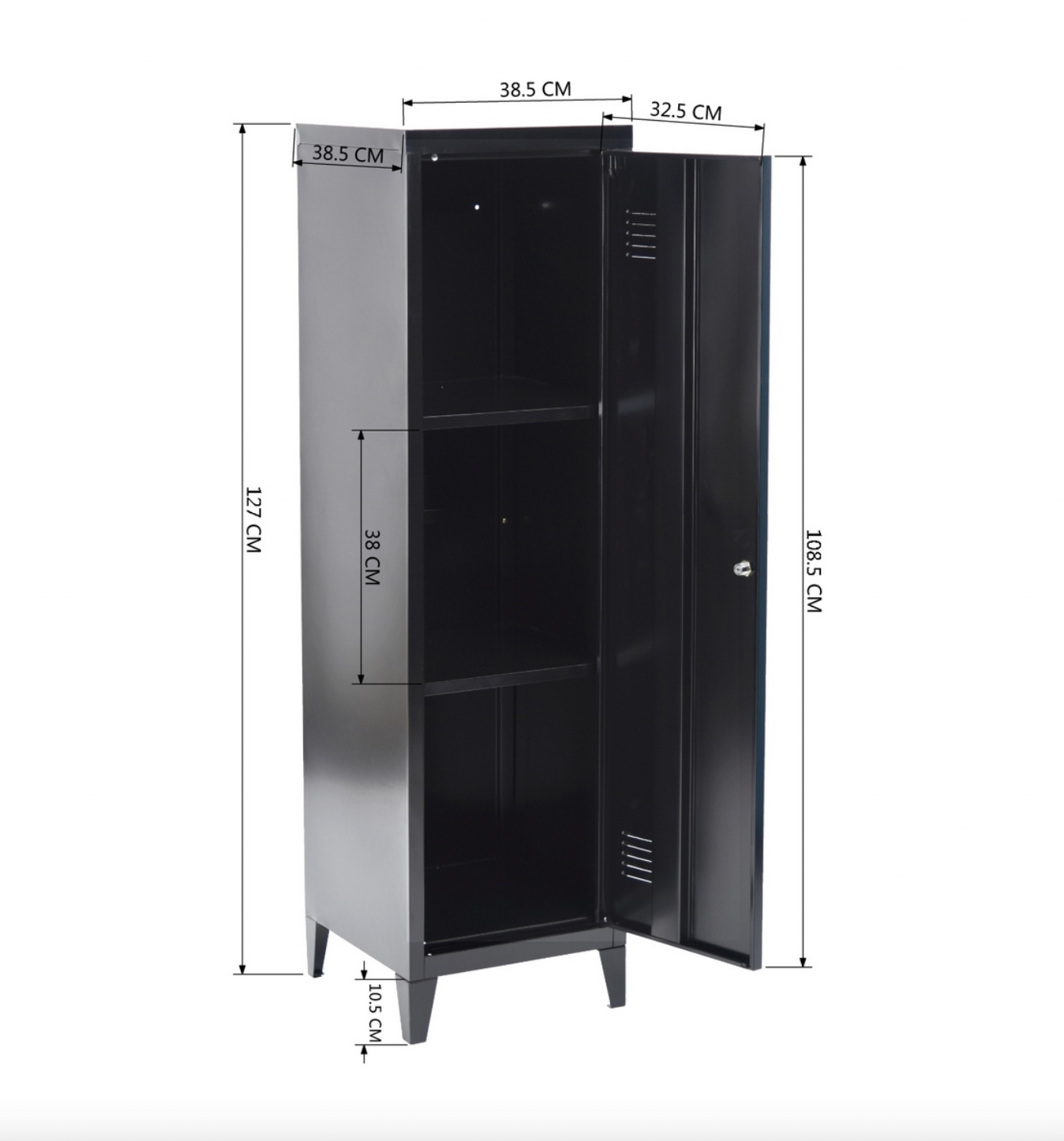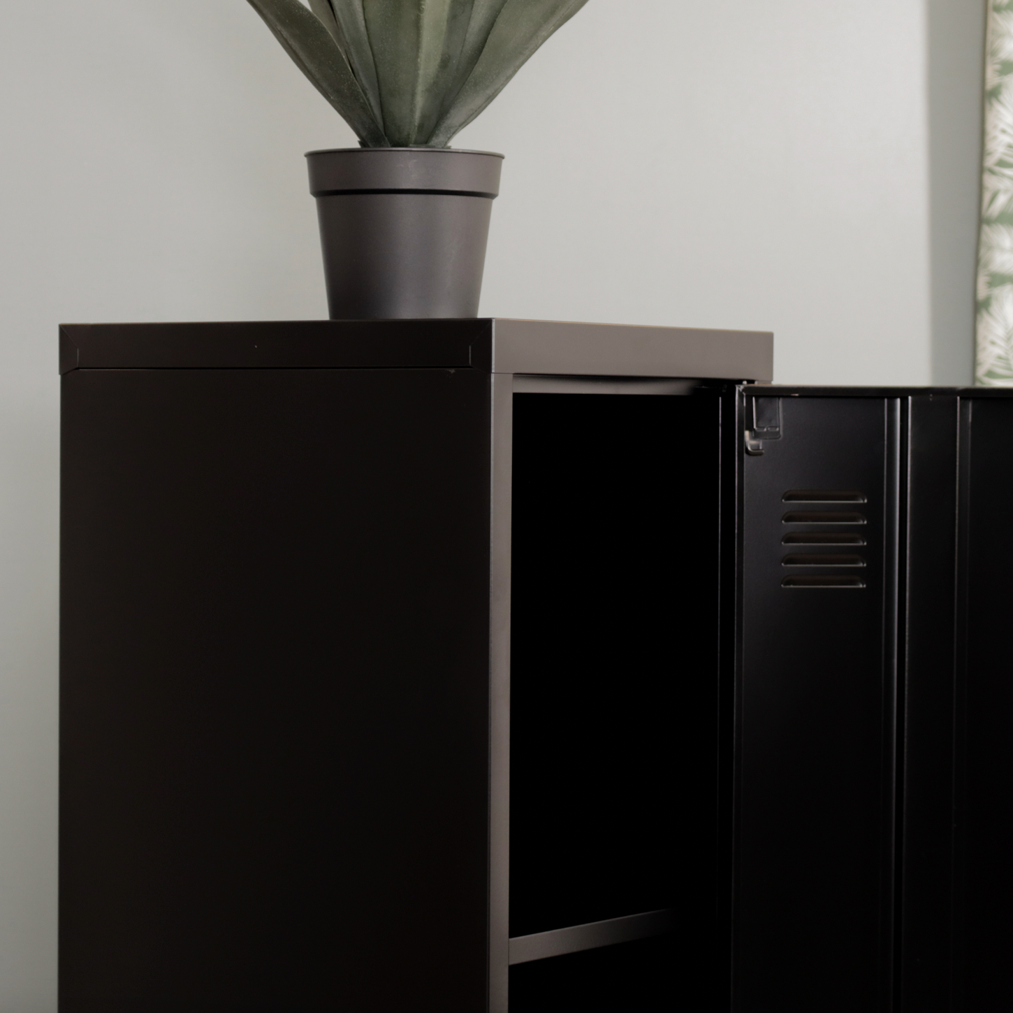 Featuring three large lockers, the cabinet offers plenty of storage capacity, the metal legs make it stable and sturdy even when full.